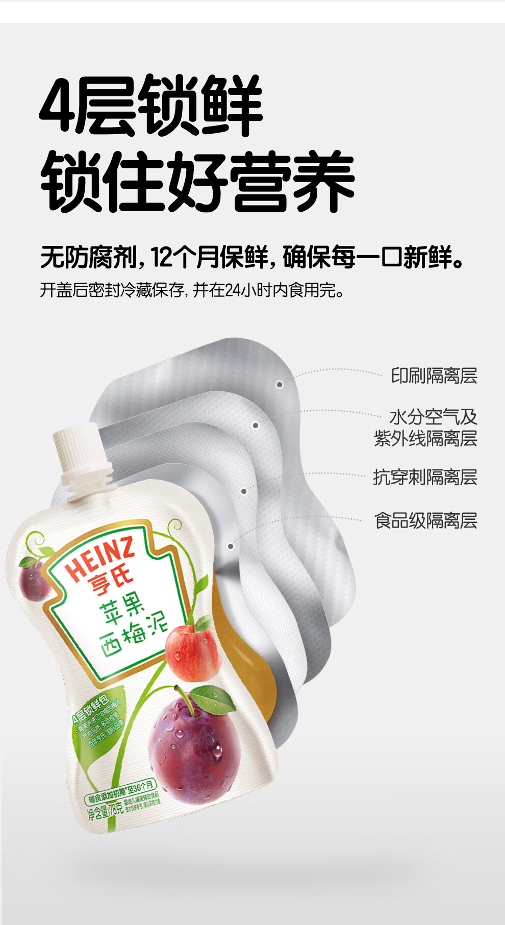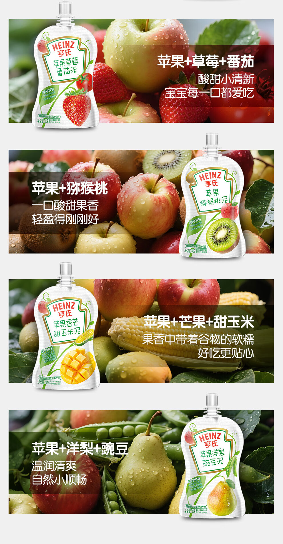 亨氏(Heinz)西洋果园果汁泥78g*3袋婴幼儿宝宝水果泥辅食猕猴桃西梅泥