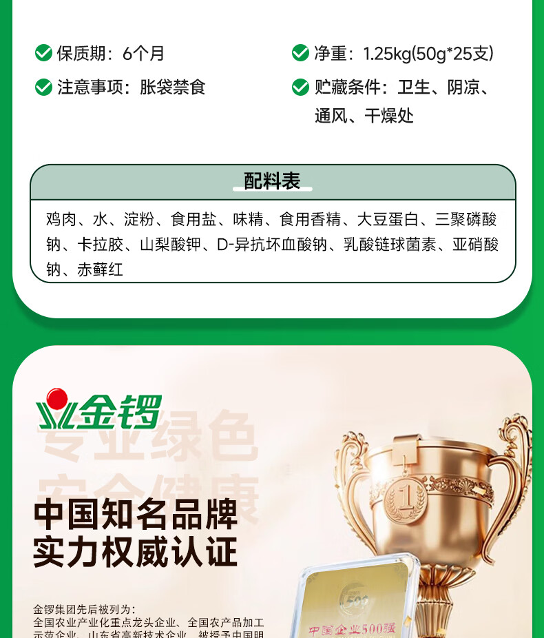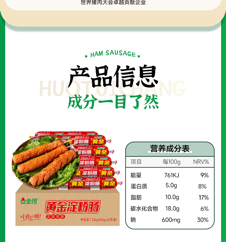 金锣火腿肠黄金淀粉肠1250g/箱 休闲零食香肠麻辣烫油炸锅食材烧烤肠