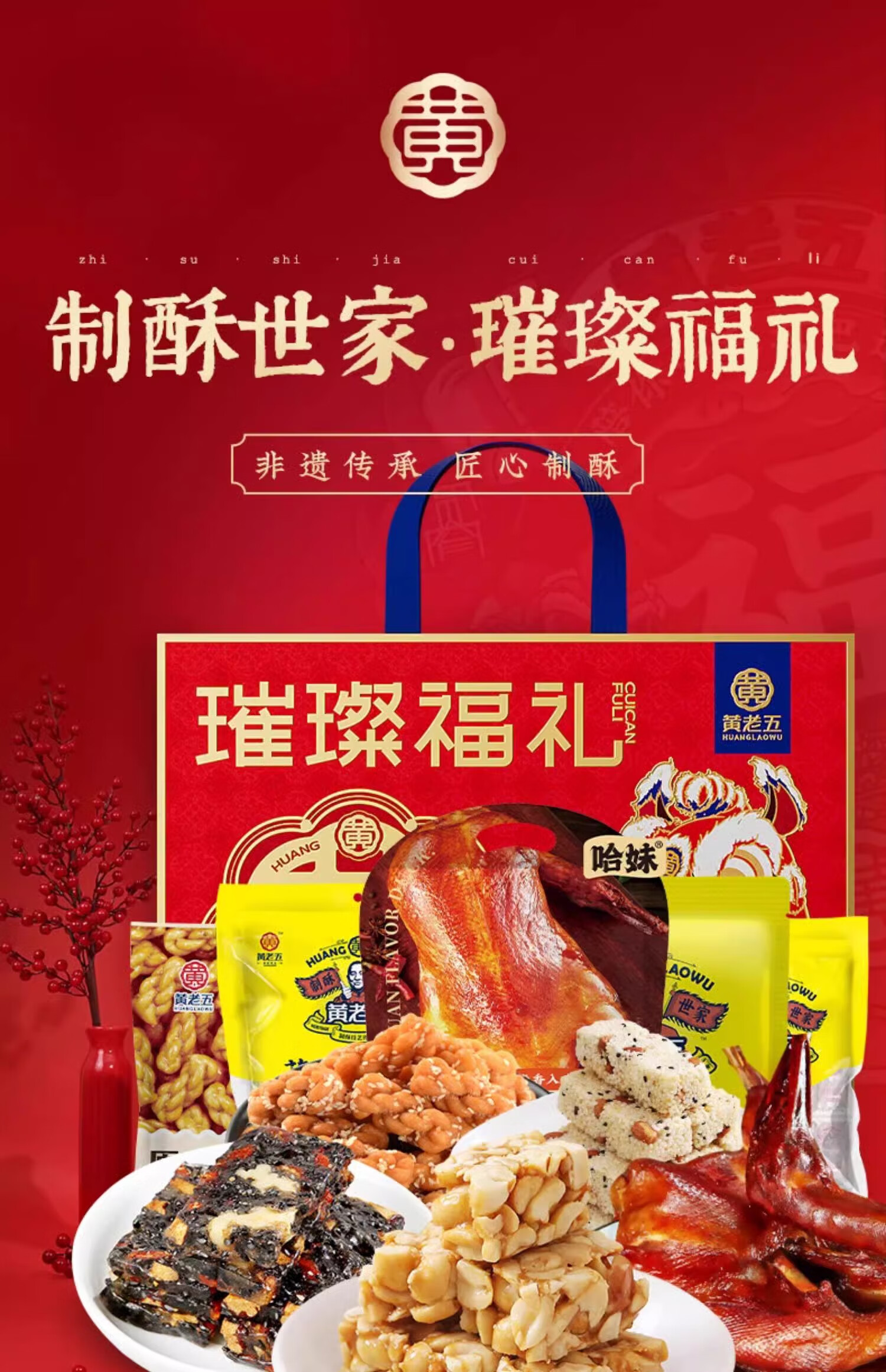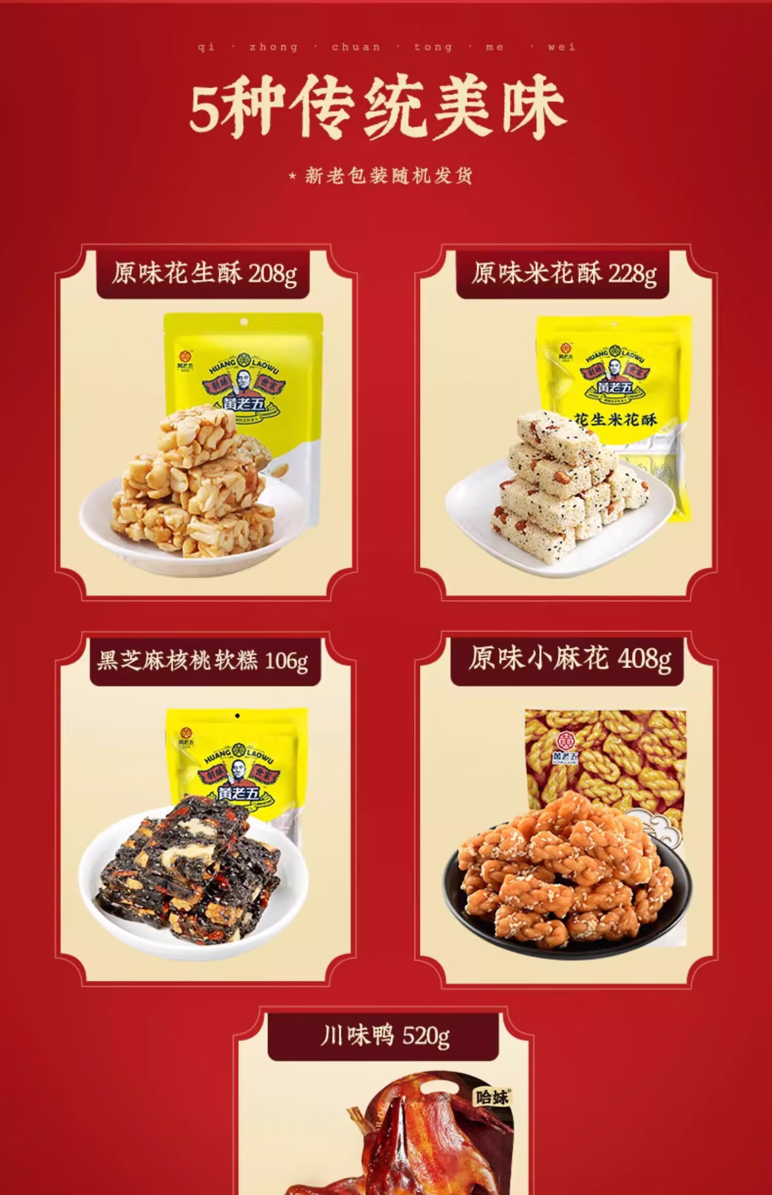 黄老五花生酥糖果年货大礼包春节过年新年礼盒中式糕点四川特产酥糖 酥糖礼盒1066g