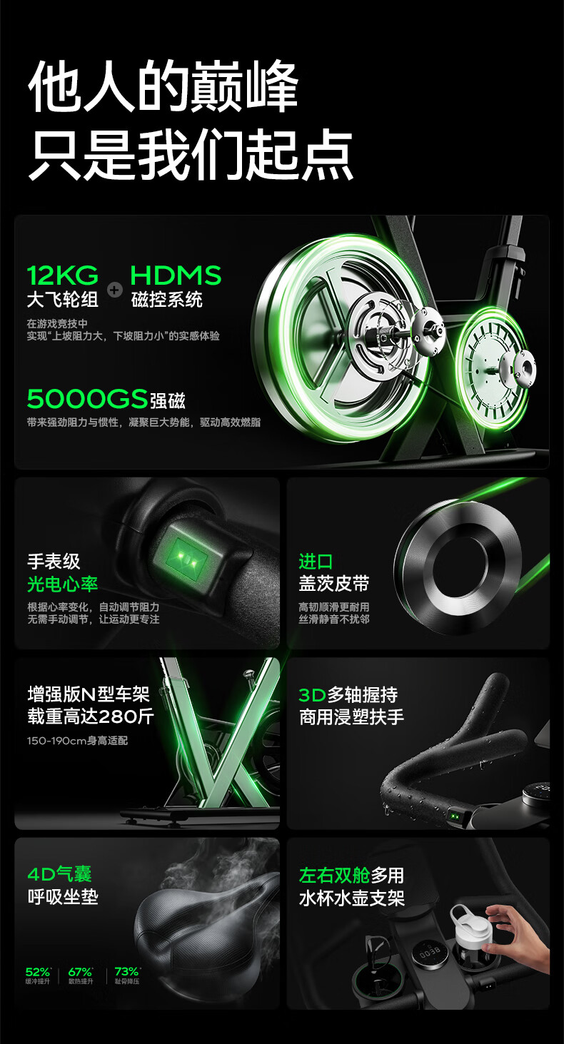 麦瑞克(MERACH)动感单车自发电家用健身房运动器材室内静音自行车 黑曜骑士Turbo 进阶旗舰版-超感强磁控-AIMia私教