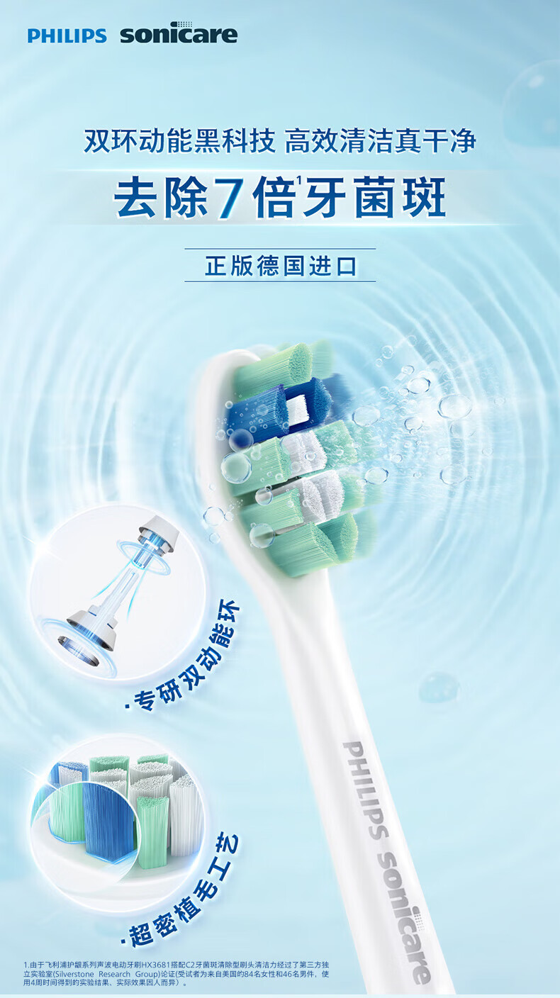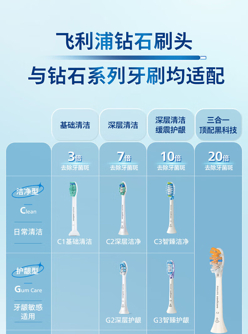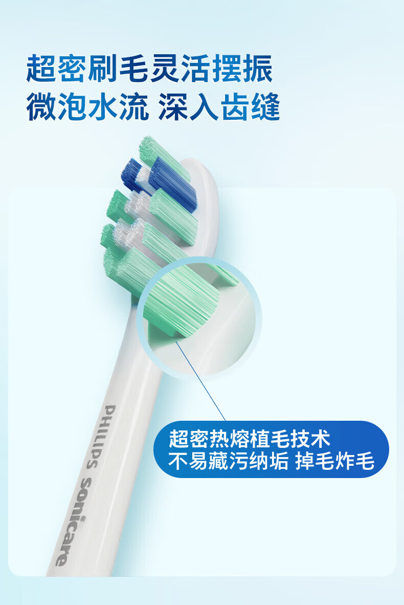 飞利浦(PHILIPS)电动牙刷头 7倍去除牙菌斑洁净型3支装HX9023 适配钻石3系HX6/ HX3/ HX51系列