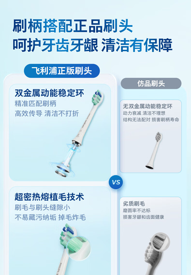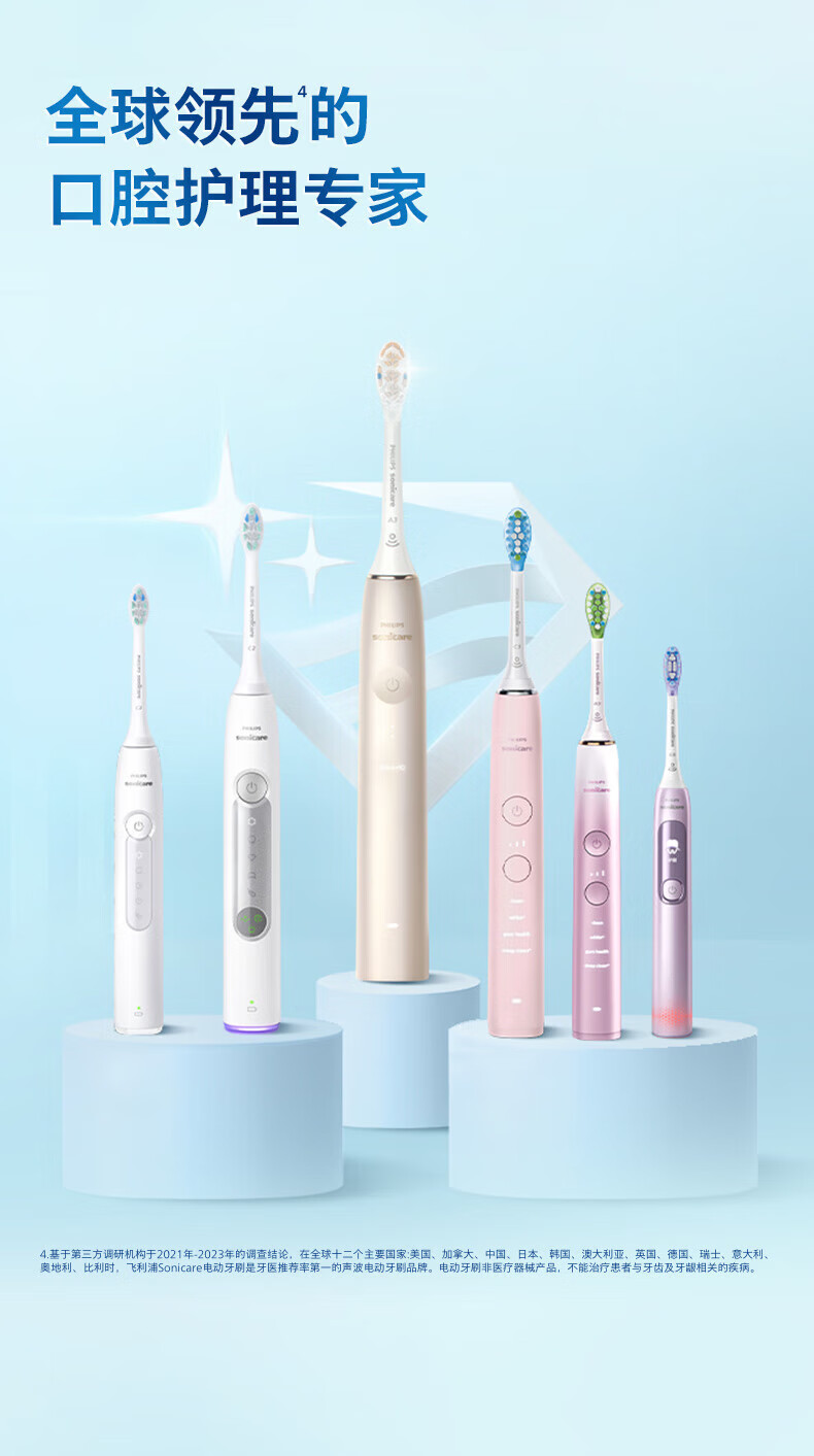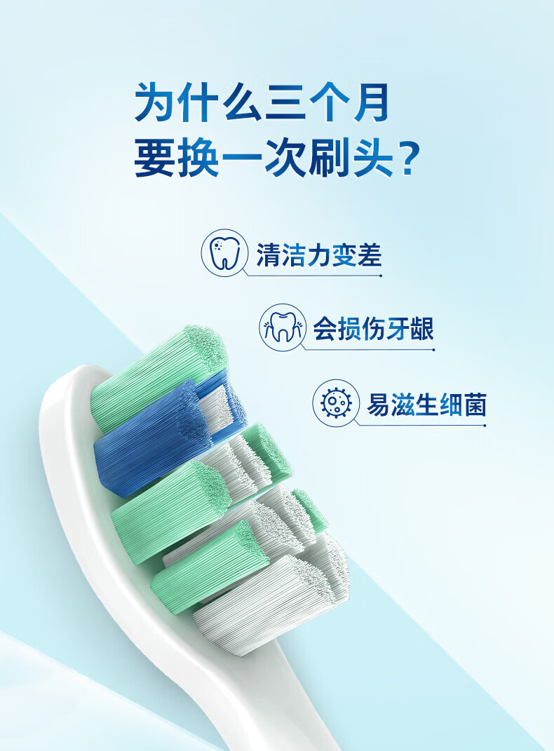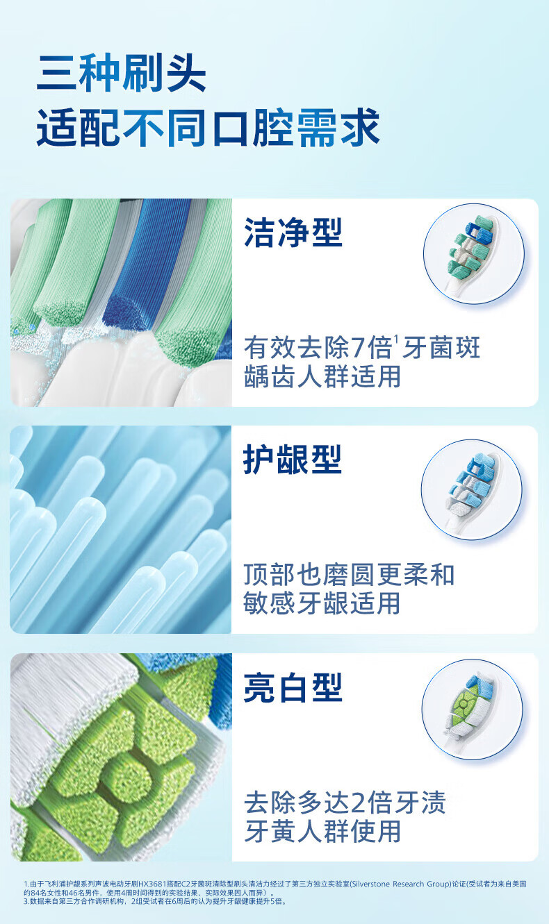 飞利浦(PHILIPS)电动牙刷头 7倍去除牙菌斑洁净型3支装HX9023 适配钻石3系HX6/ HX3/ HX51系列