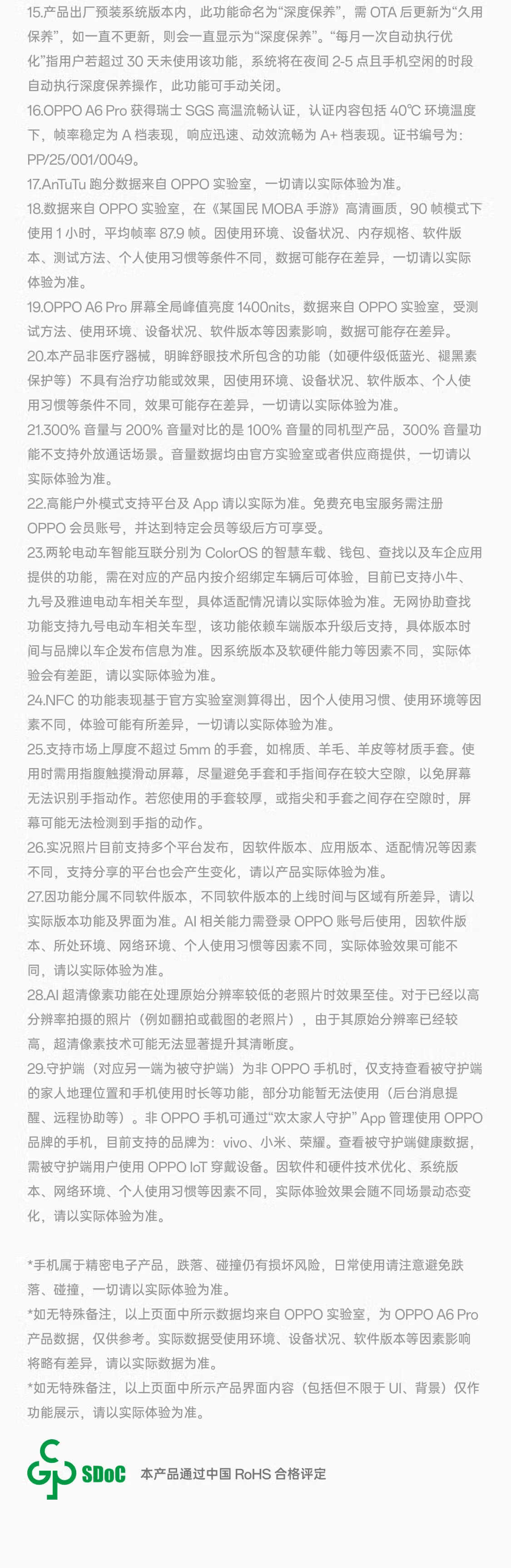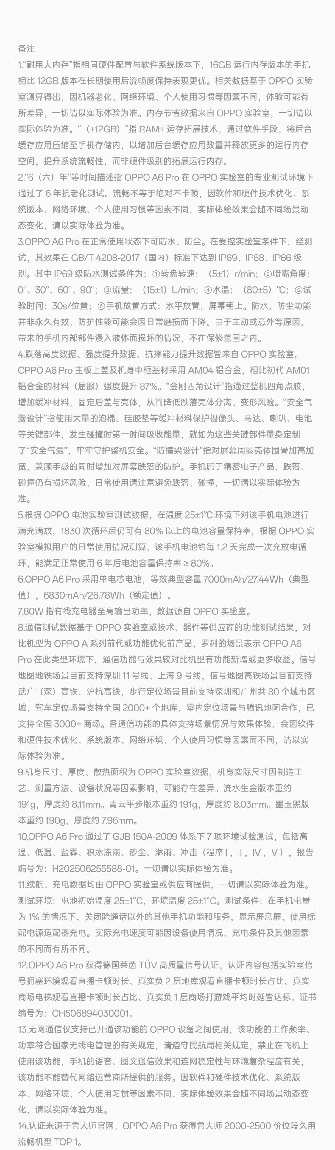OPPO A6 Pro 12GB+256GB 流水生金 7000mAh大电池长续航 IP69防水 流畅抗摔耐用 5G智能手机 国家补贴