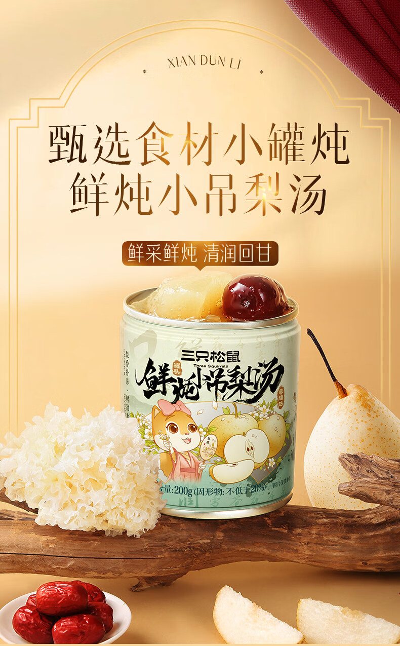 三只松鼠小吊梨汤200g*6罐箱装鲜炖砀山梨水果罐头零食滋补年货送礼团购