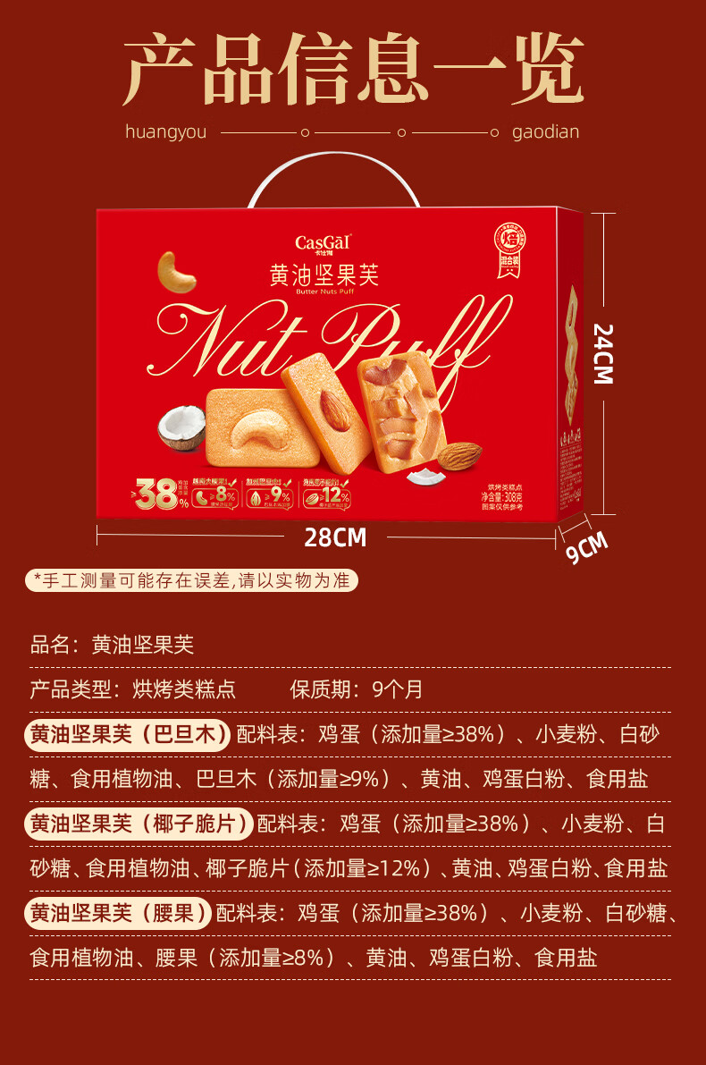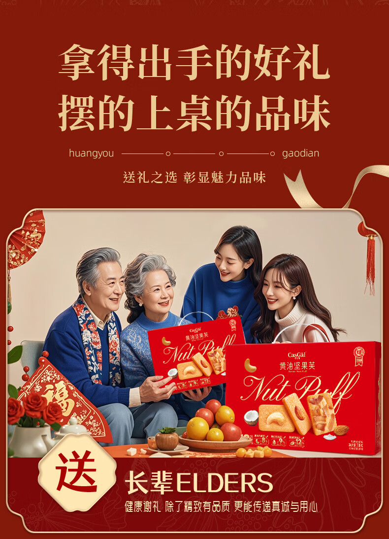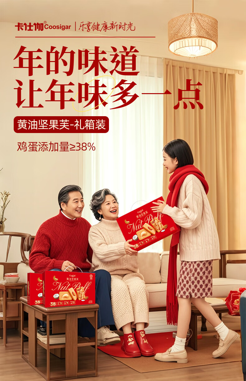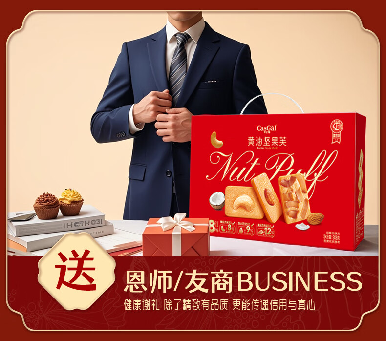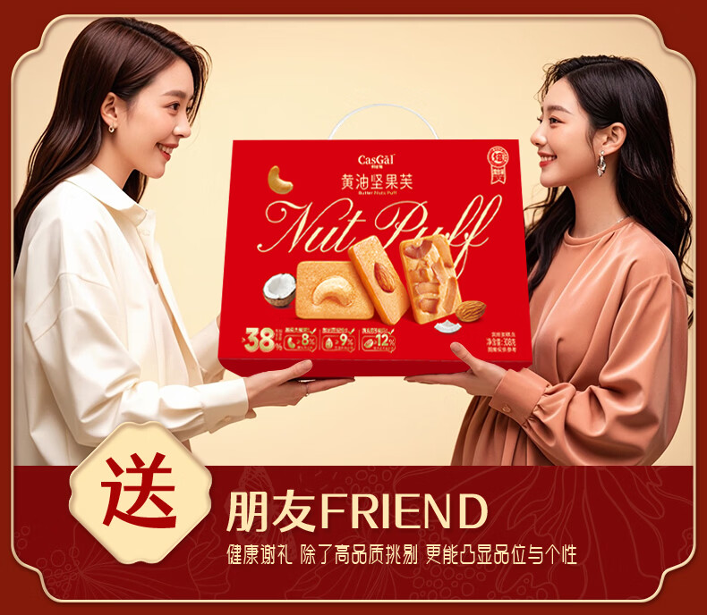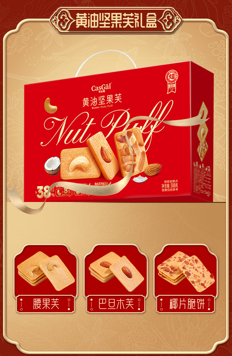 卡仕伽黄油坚果芙饼干年货礼盒节日送礼团购休闲零食下午茶营养早餐代餐 308g黄油坚果饼干礼盒*1箱