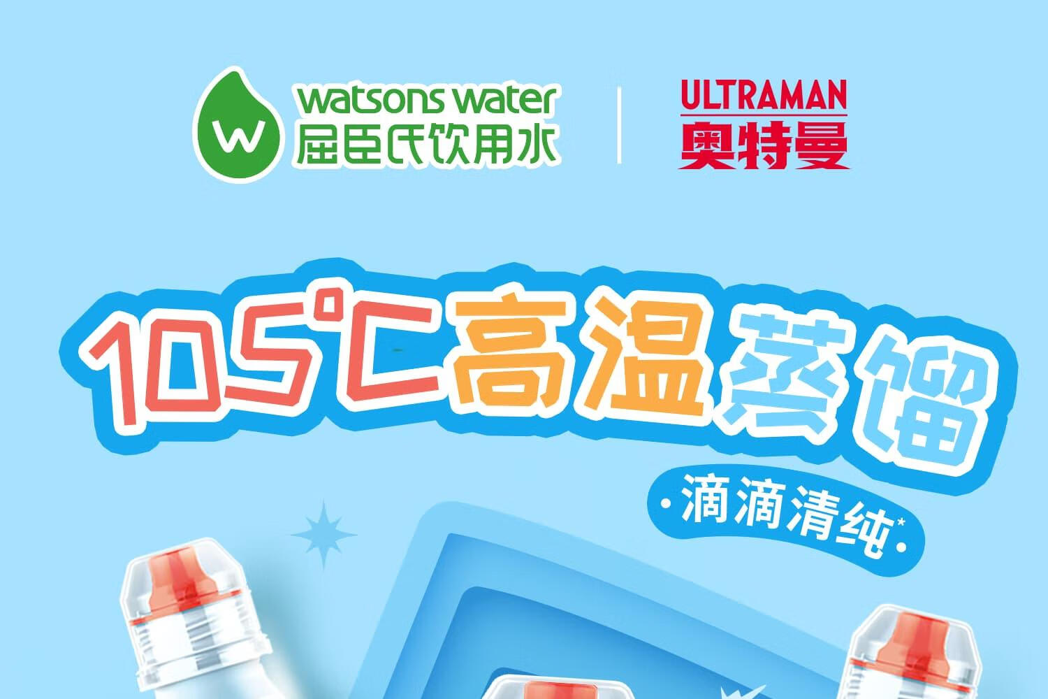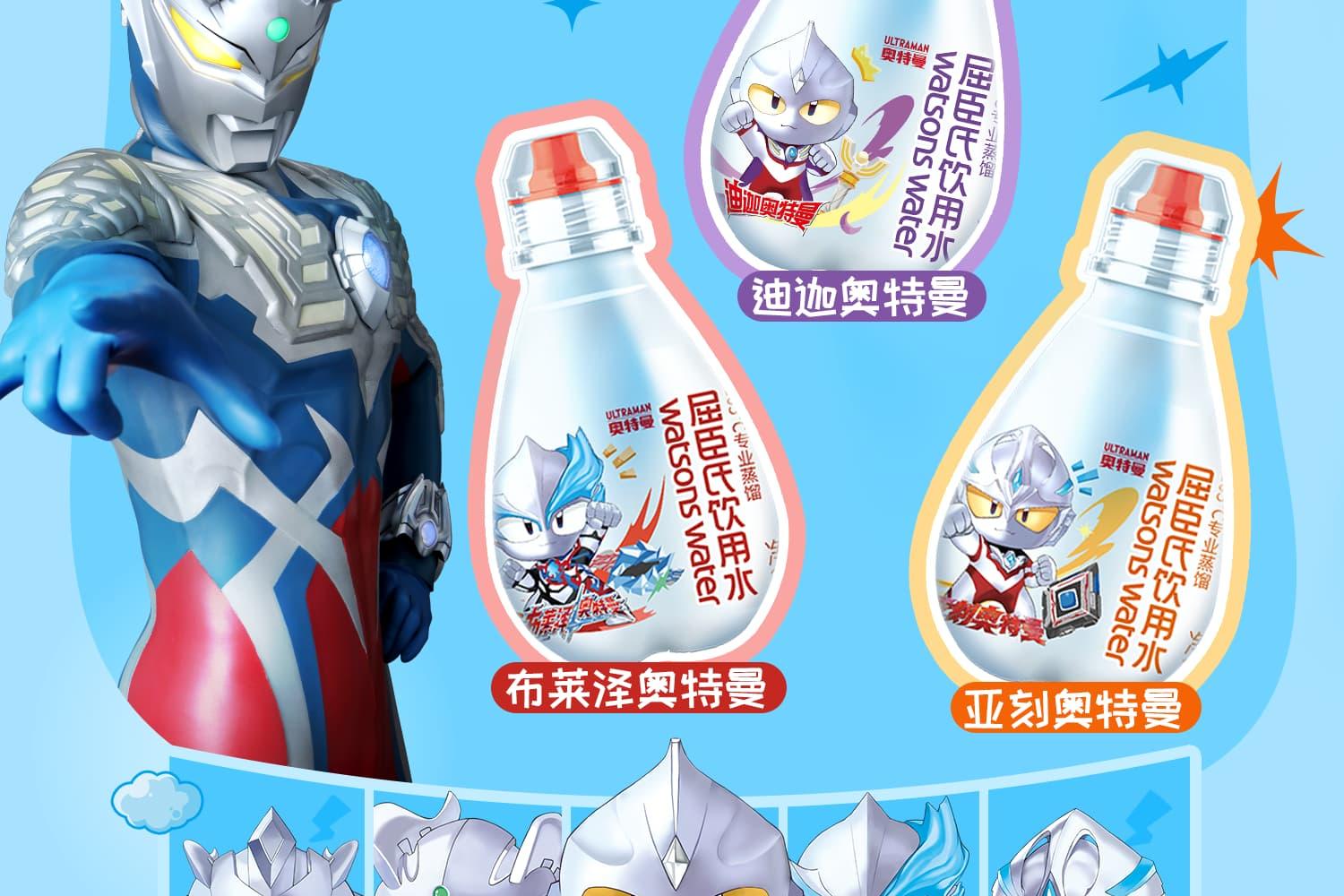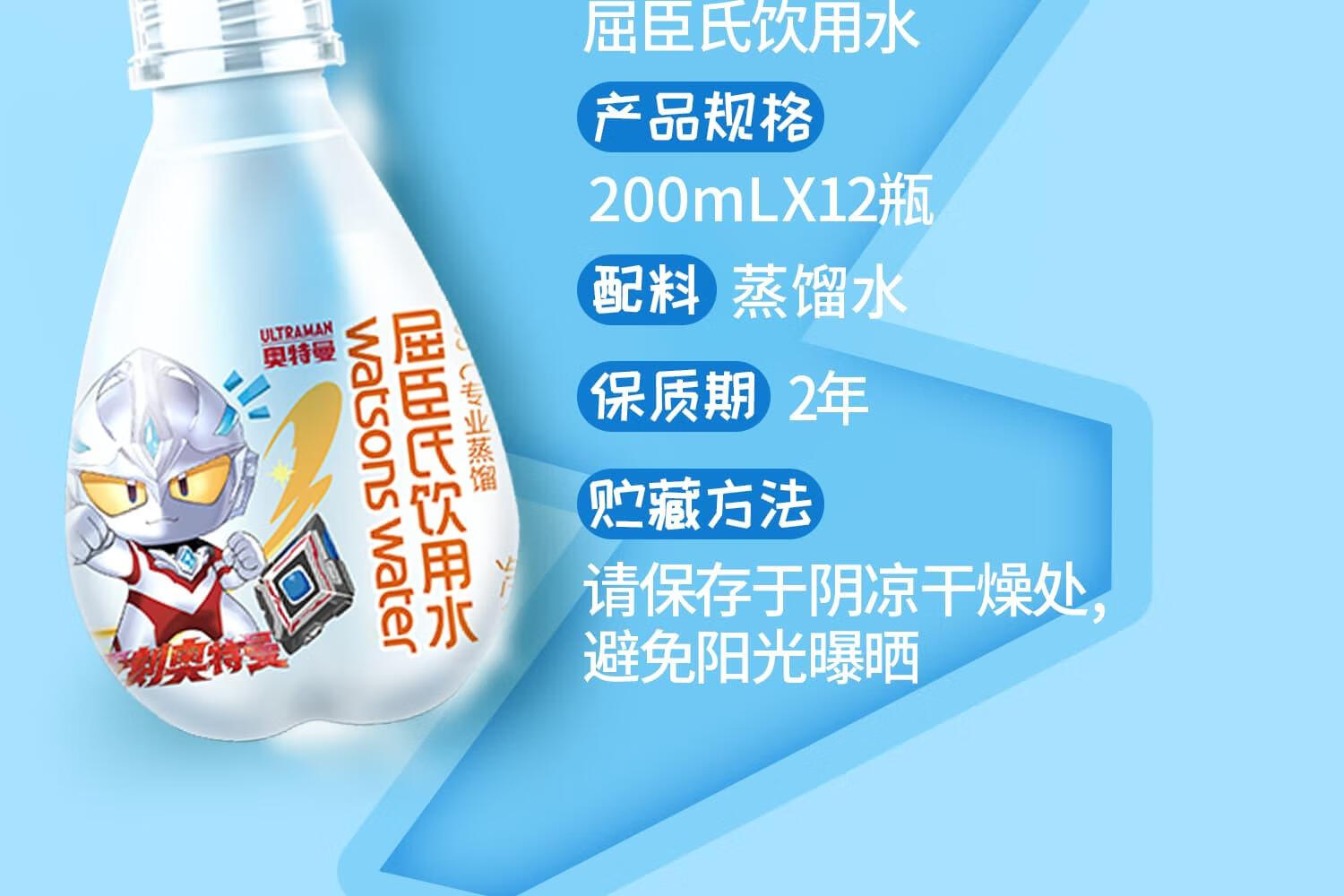 屈臣氏儿童水奥特曼款蒸馏水纯净水200mL*12瓶整箱小瓶装水随机徽章