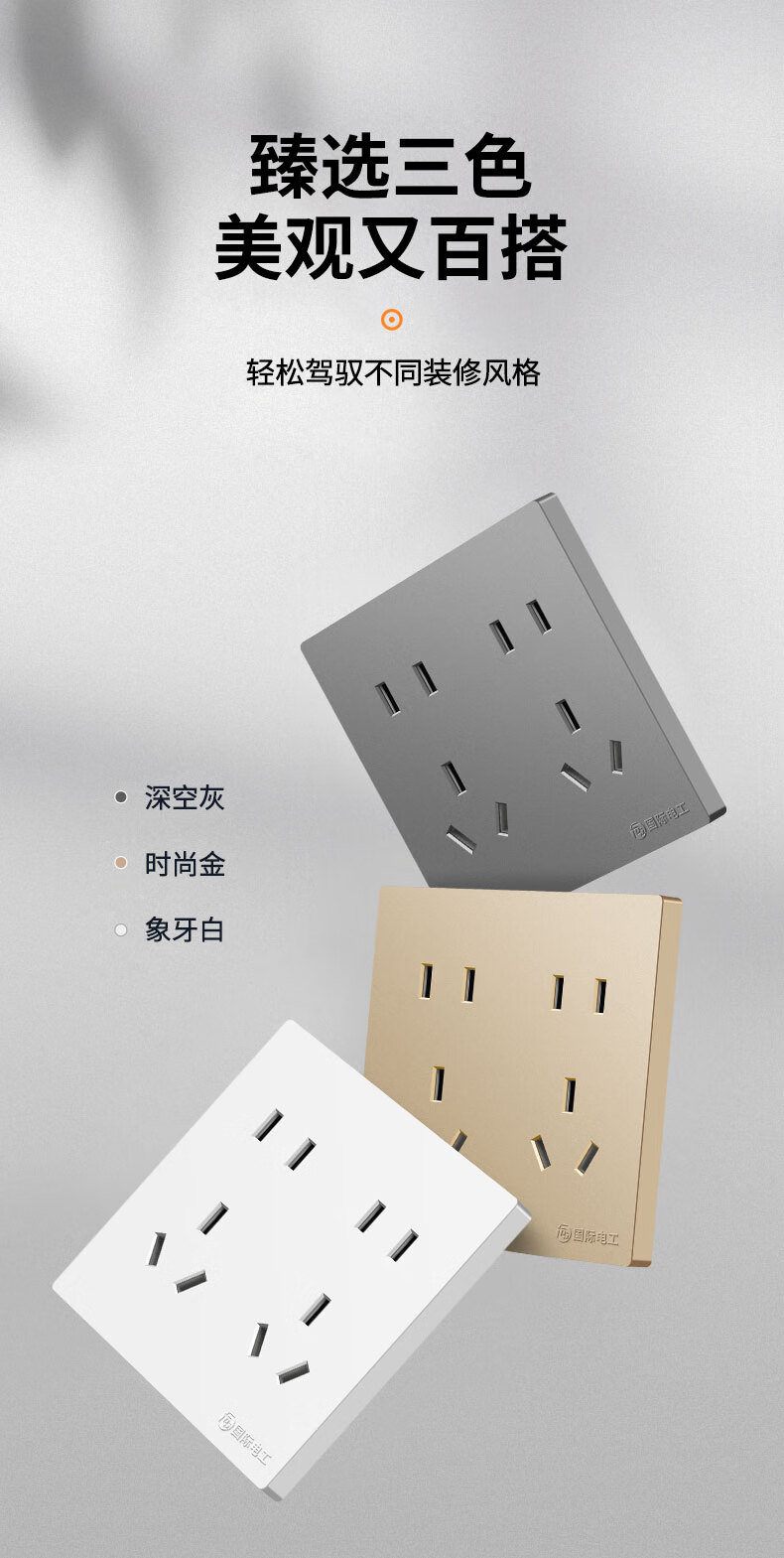NVC雷士电工 开关插座 10a斜五孔插座 86型暗装插座面板 N25奶油白