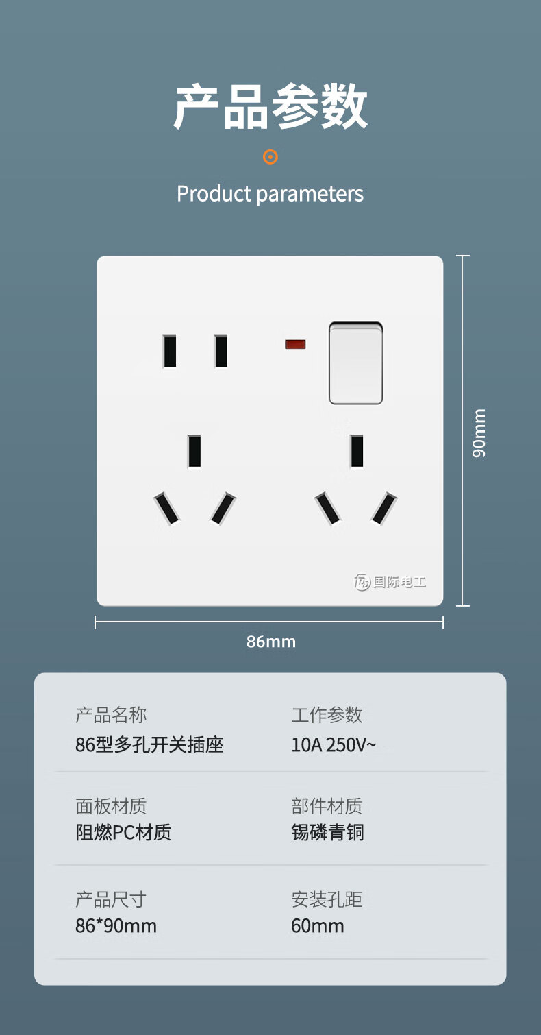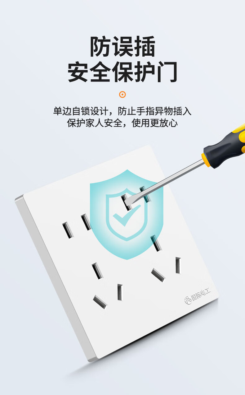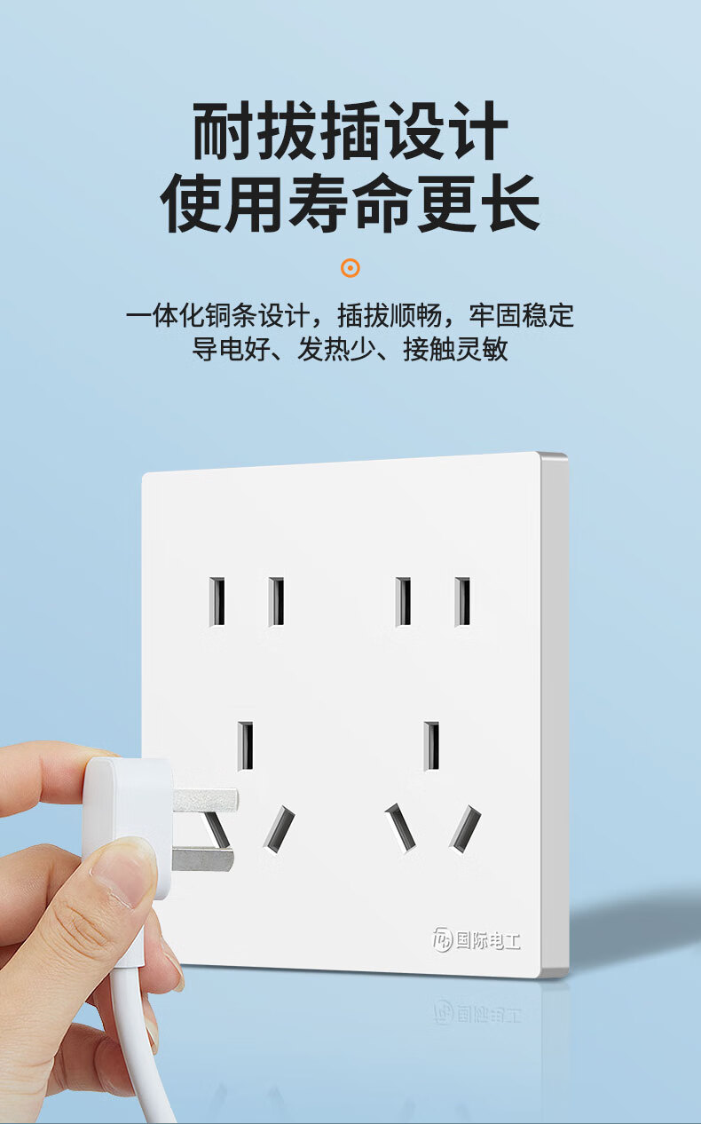 国际电工86型一开八孔插座带开关暗装墙壁多功能面板多孔白色电源二三插 一开单控带五孔
