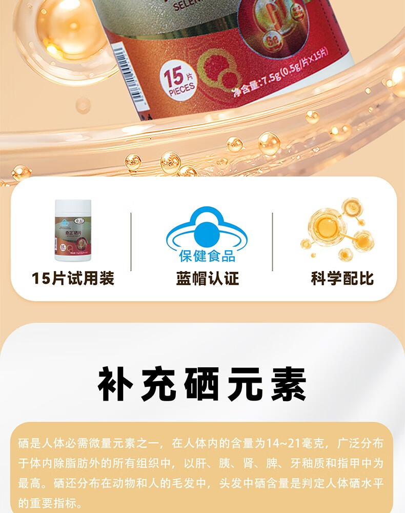 奇正硒片15片正品富硒酵母元素成人补硒元素 15片*1瓶