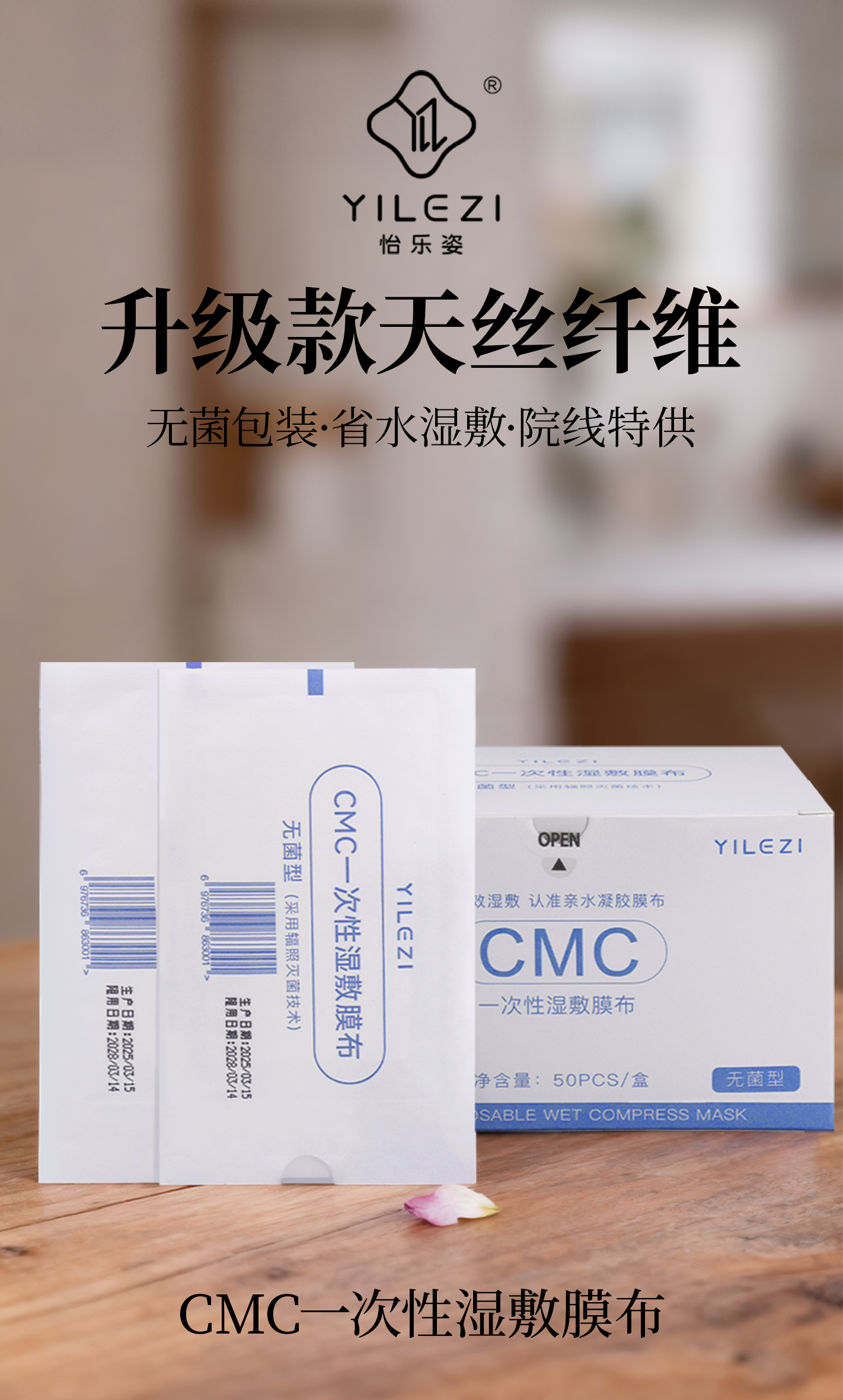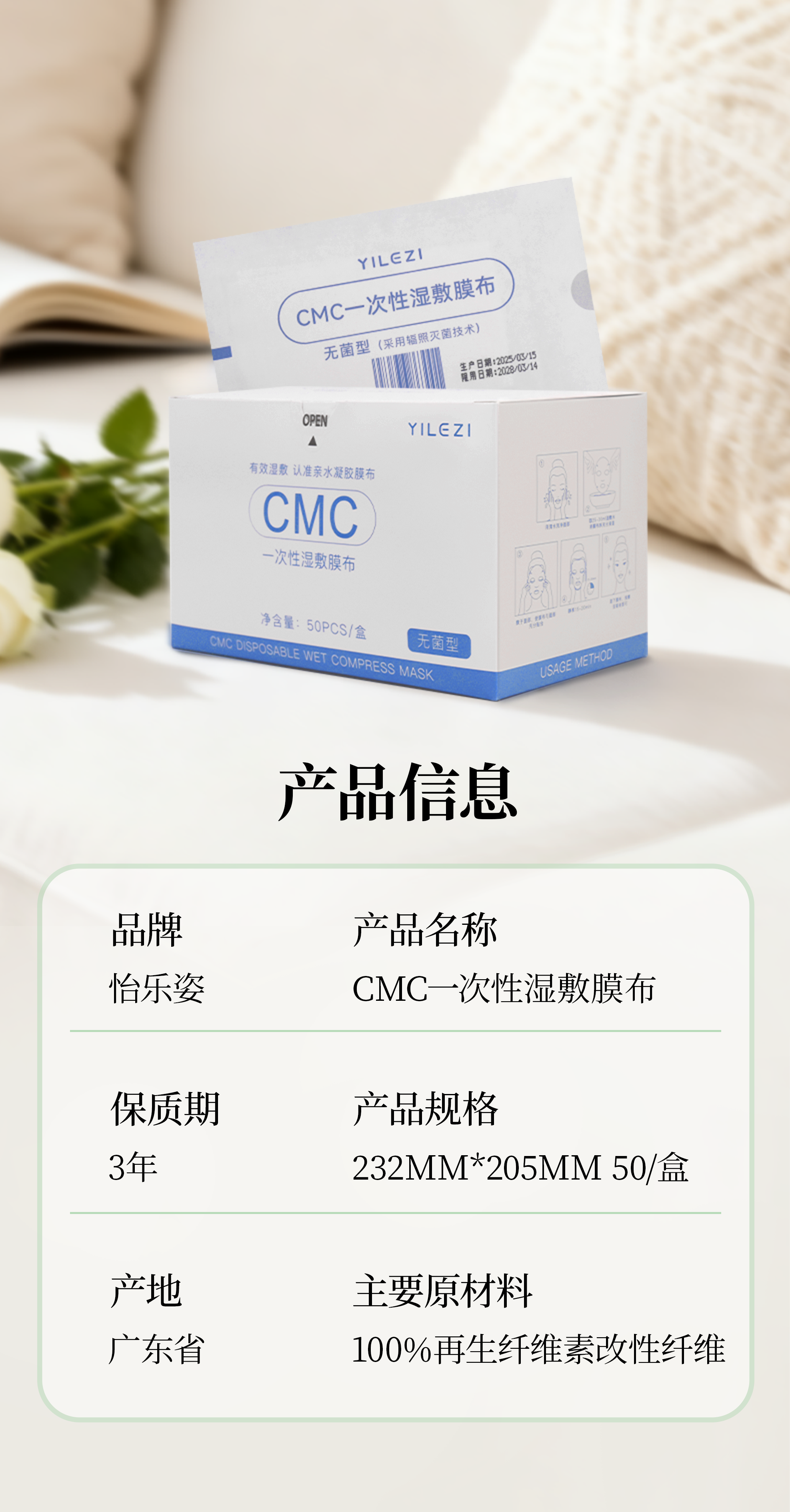 怡乐姿CMC亲水凝胶膜布一次性湿敷面膜超薄水疗湿敷亲肤无菌天丝面膜纸 3盒(150片)