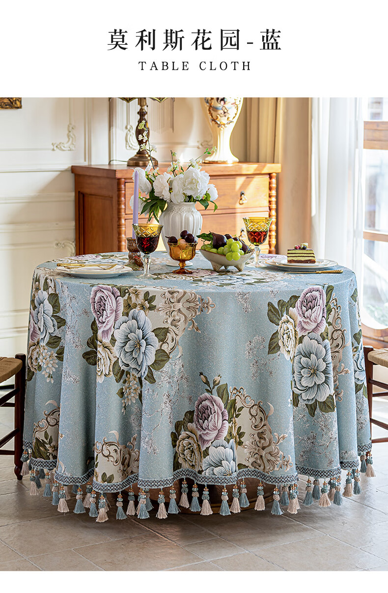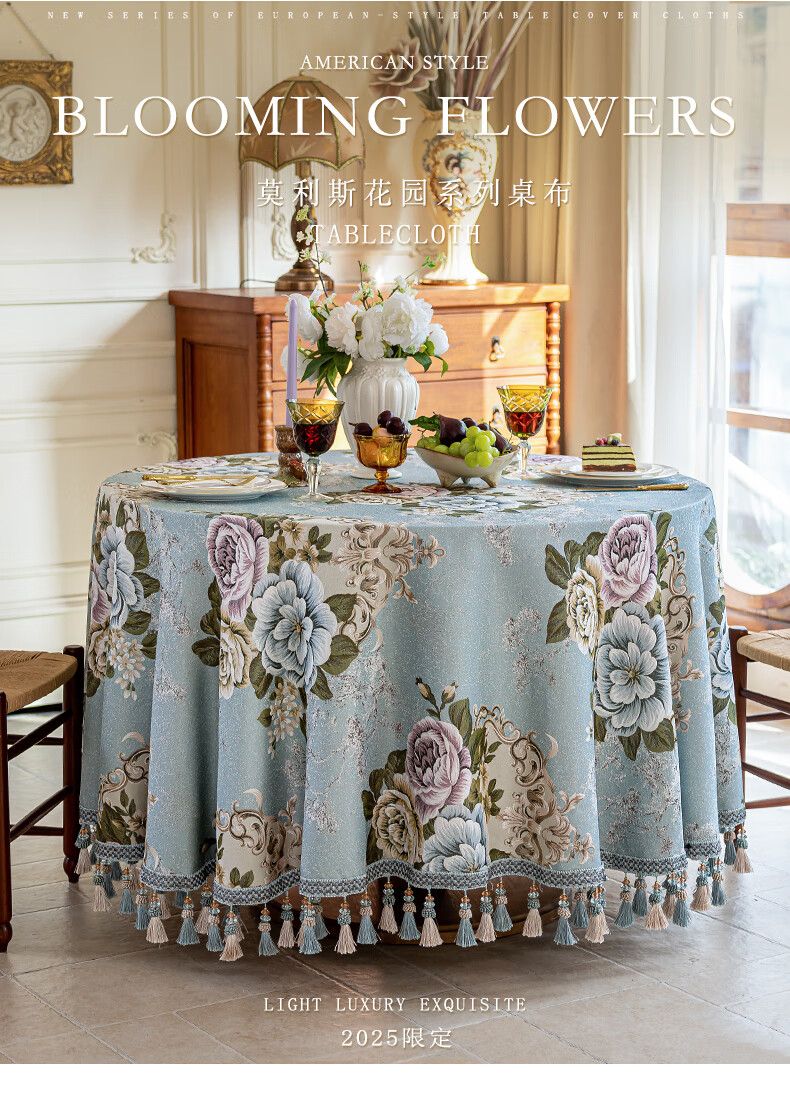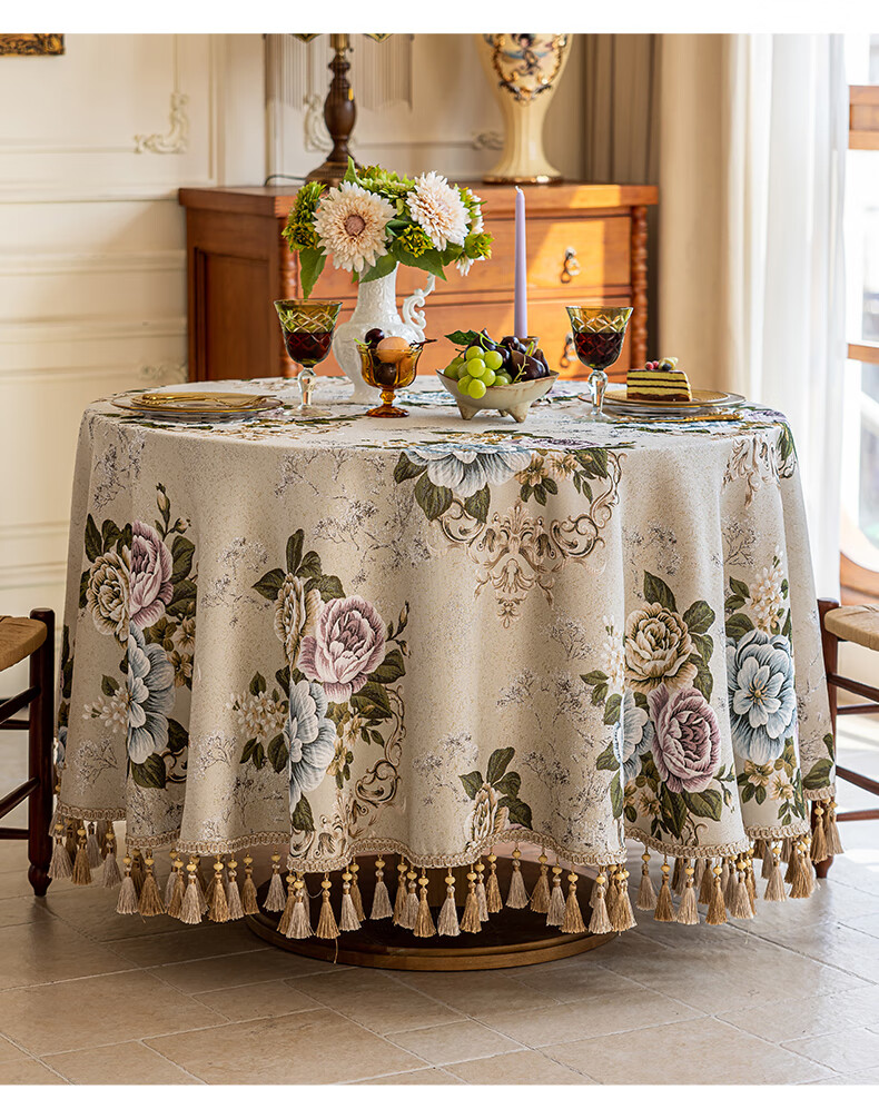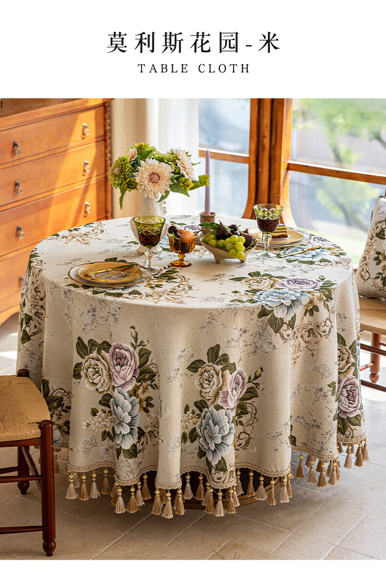 乐唯仕欧式大圆桌桌布2025新款轻奢高级感小圆形茶几台布客厅家用餐桌布 莫利斯花园-米(吊穗款) 220cm直径适合直径160-180cm圆桌