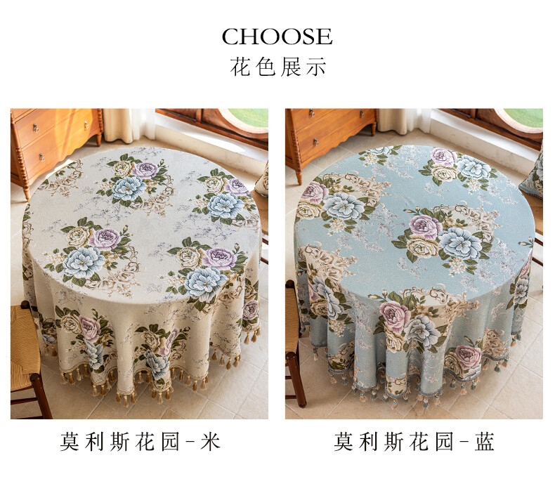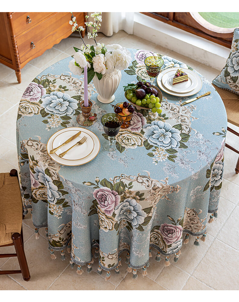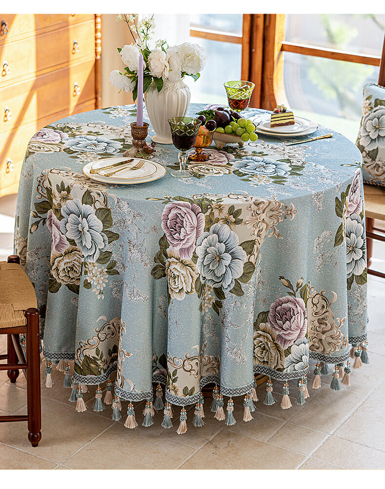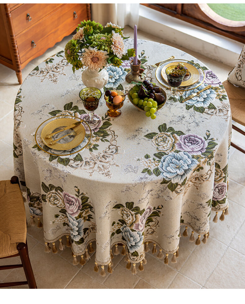乐唯仕欧式大圆桌桌布2025新款轻奢高级感小圆形茶几台布客厅家用餐桌布 莫利斯花园-米(吊穗款) 220cm直径适合直径160-180cm圆桌