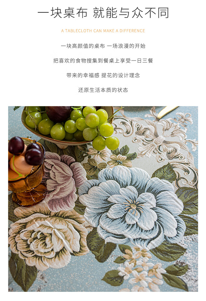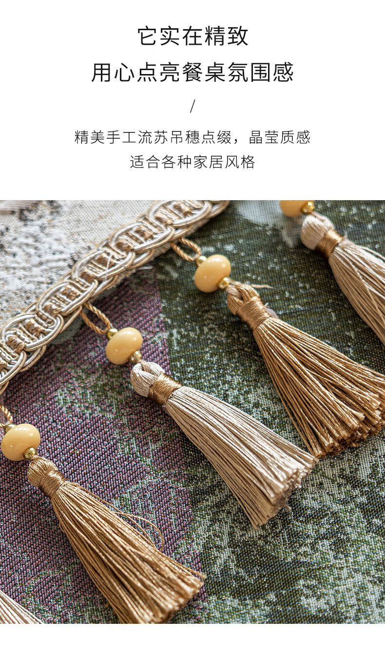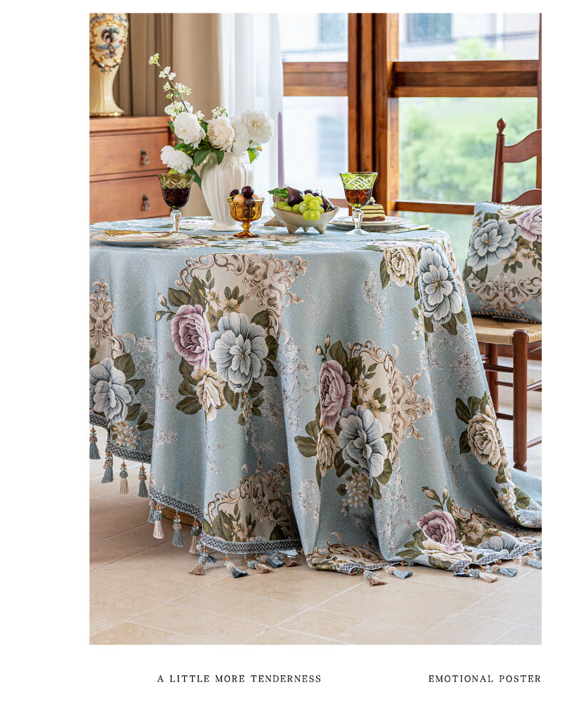 乐唯仕欧式长方形餐桌桌布轻奢高级感家用客厅茶几布布艺台布高档餐桌布 繁花似锦-米(吊穗款) 140*220cm(稍大餐桌)