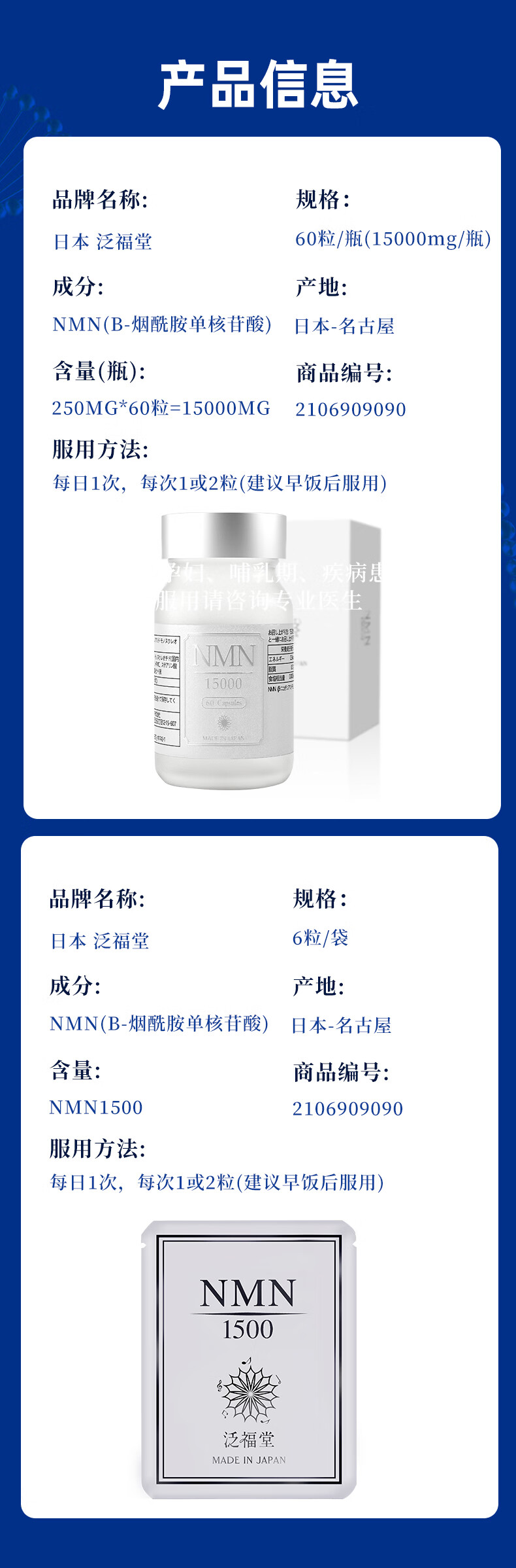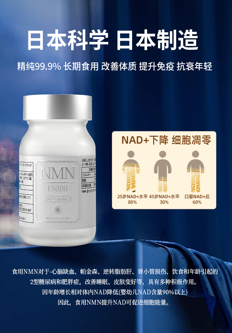 道時日本原装进口NMN15000β烟酰胺单核苷酸NAD+抗衰老营养保健品胶囊 NMN15000/ 60粒*1瓶 礼盒装