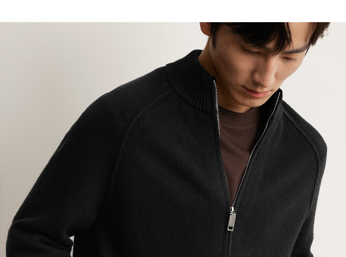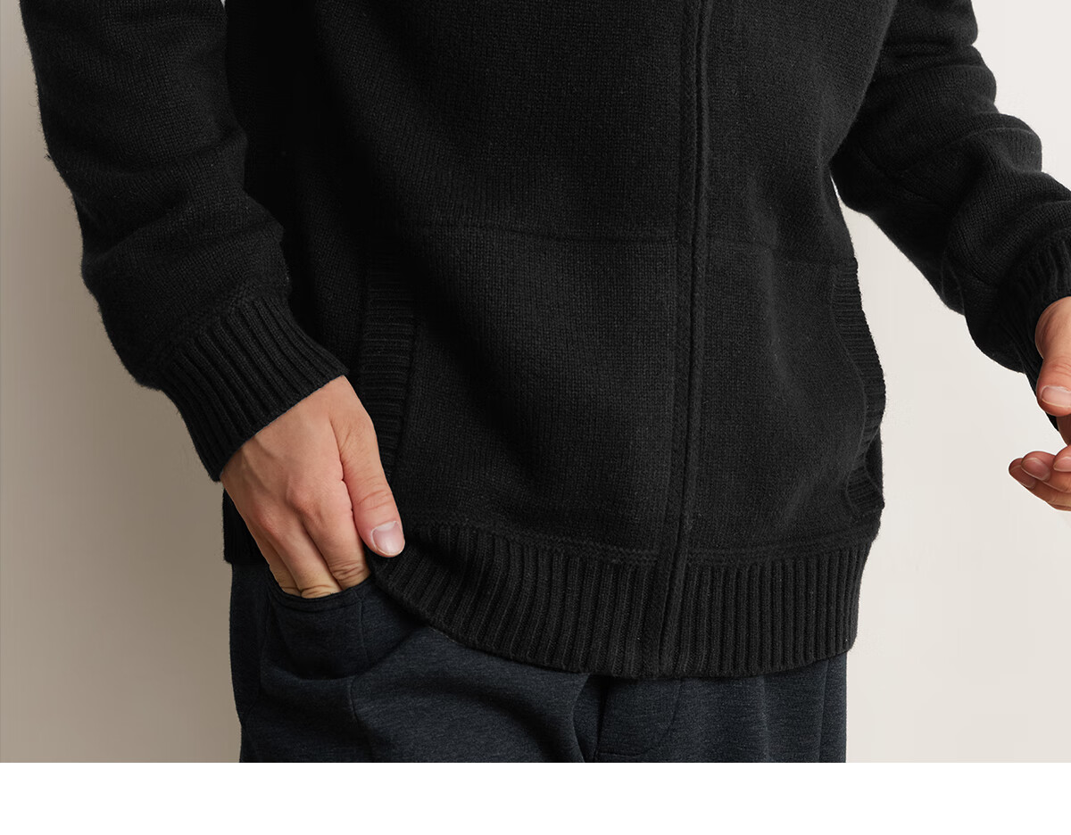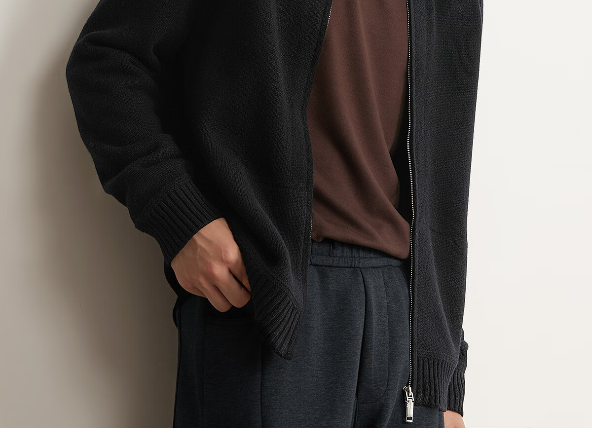 MARKLESS暖感男士羊毛衫外套 秋冬新款轻奢羊绒男混纺毛衣5706 黑色 2XL