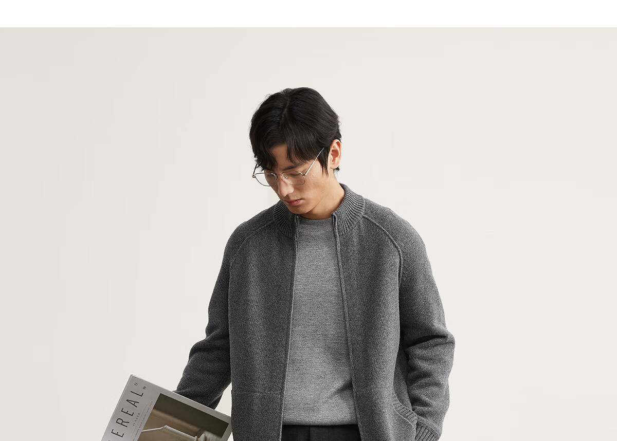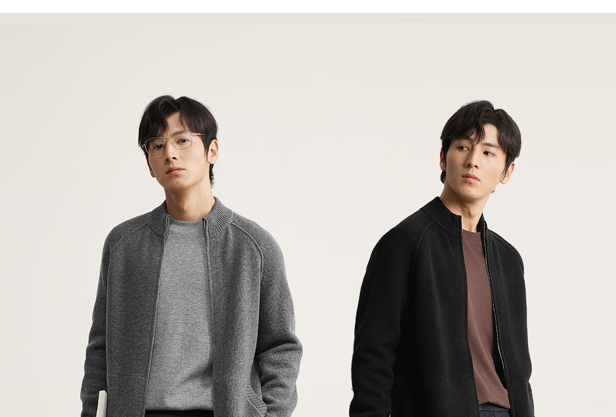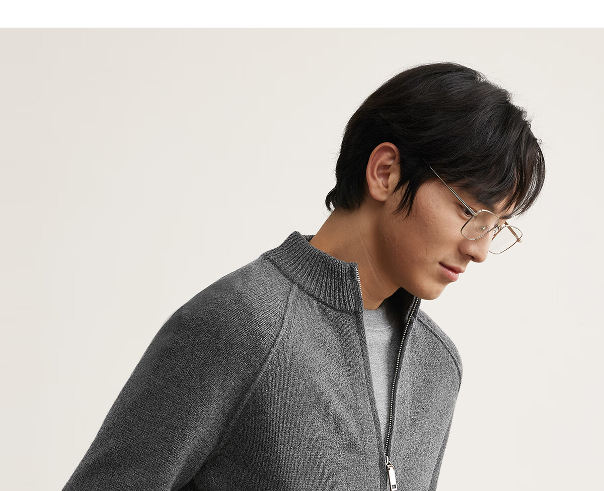 MARKLESS暖感男士羊毛衫外套 秋冬新款轻奢羊绒男混纺毛衣5706 黑色 2XL