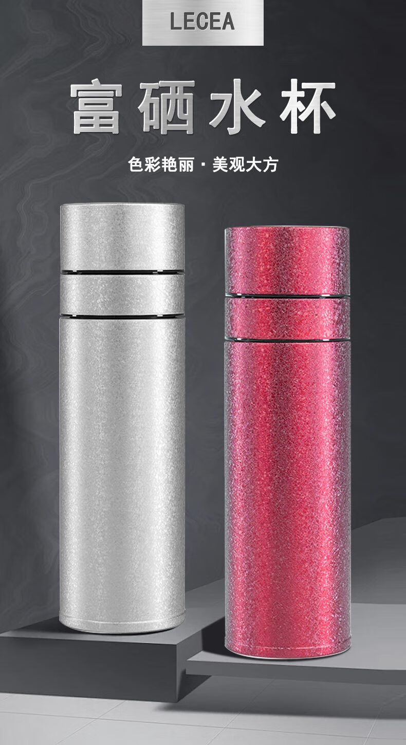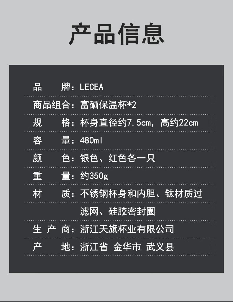 LECEA电视购物款-双专利富硒水杯健康补硒杯 红+灰480ml