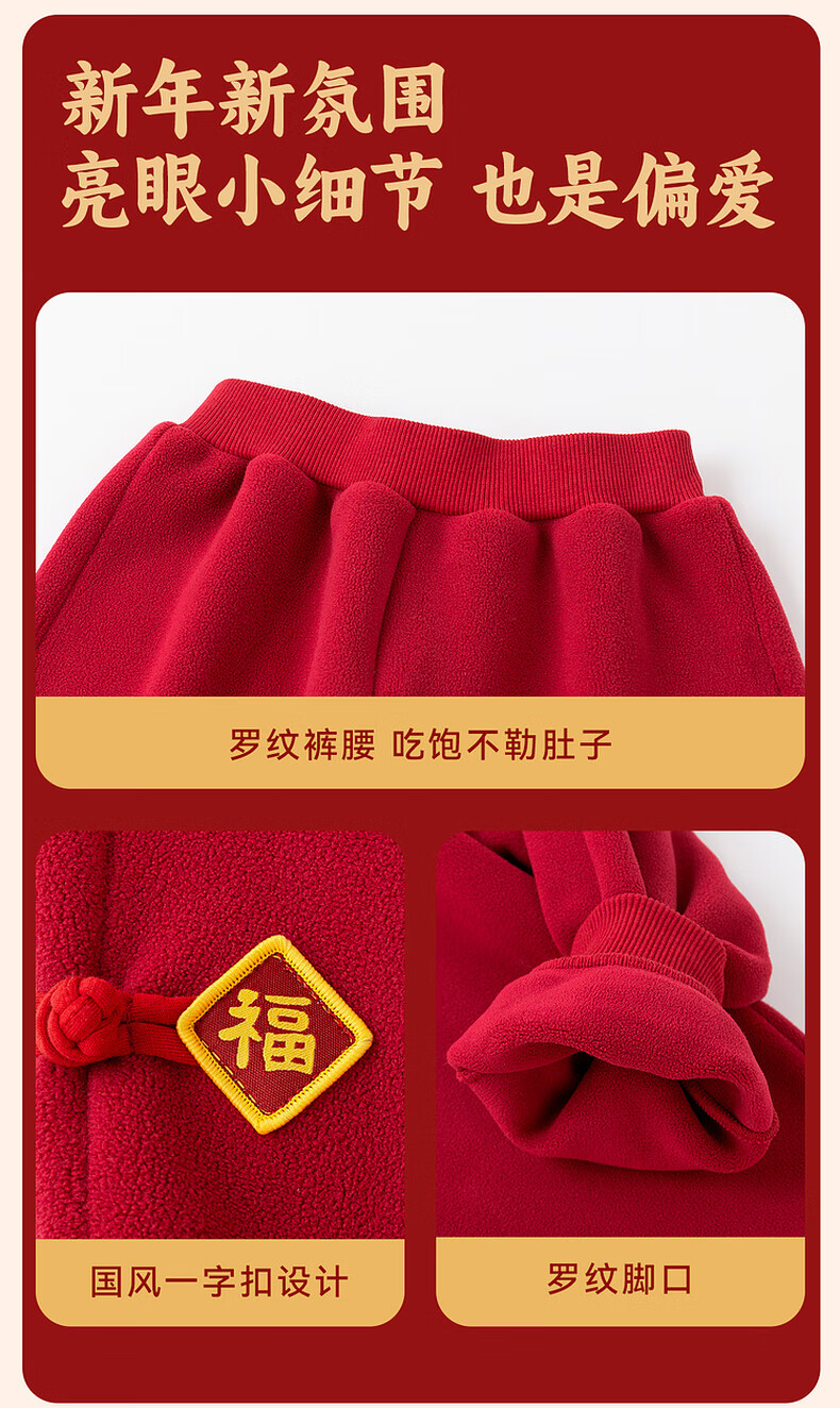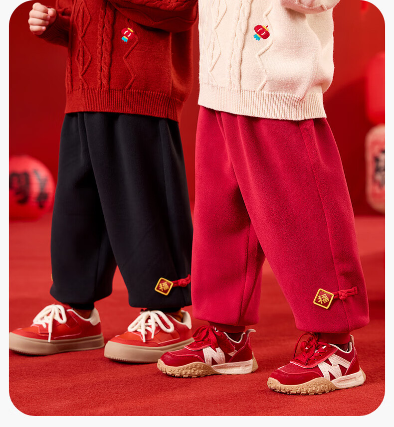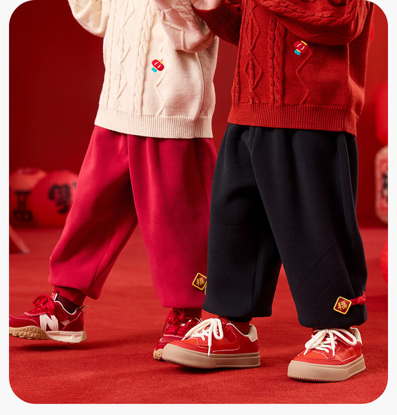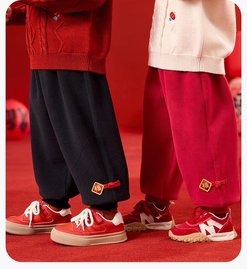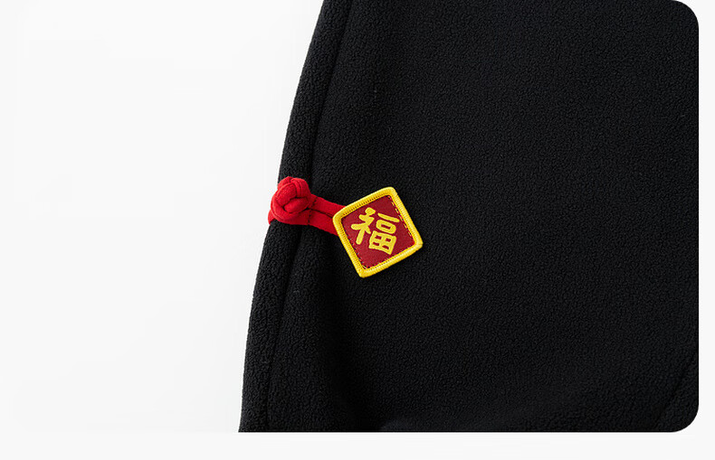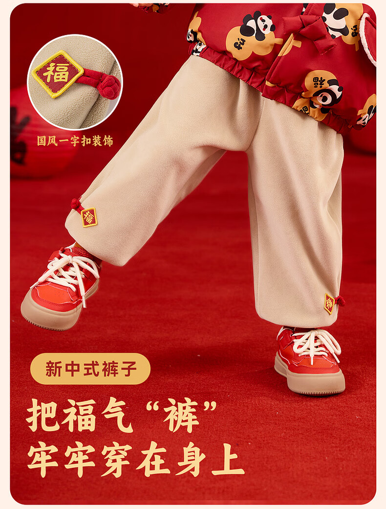 嘟嘟家儿童裤子新中式加绒冬款男童长裤拜年服保暖冬装女童休闲裤宝宝潮 黑色 100