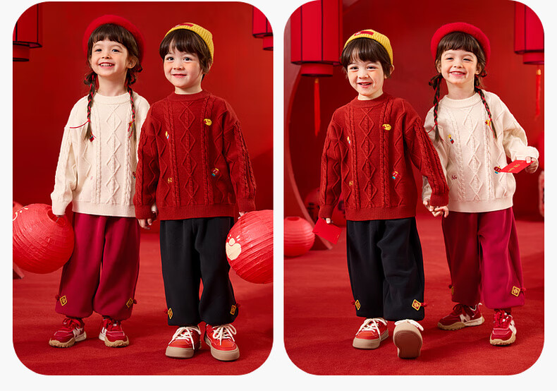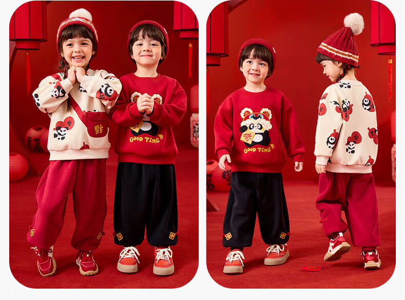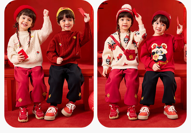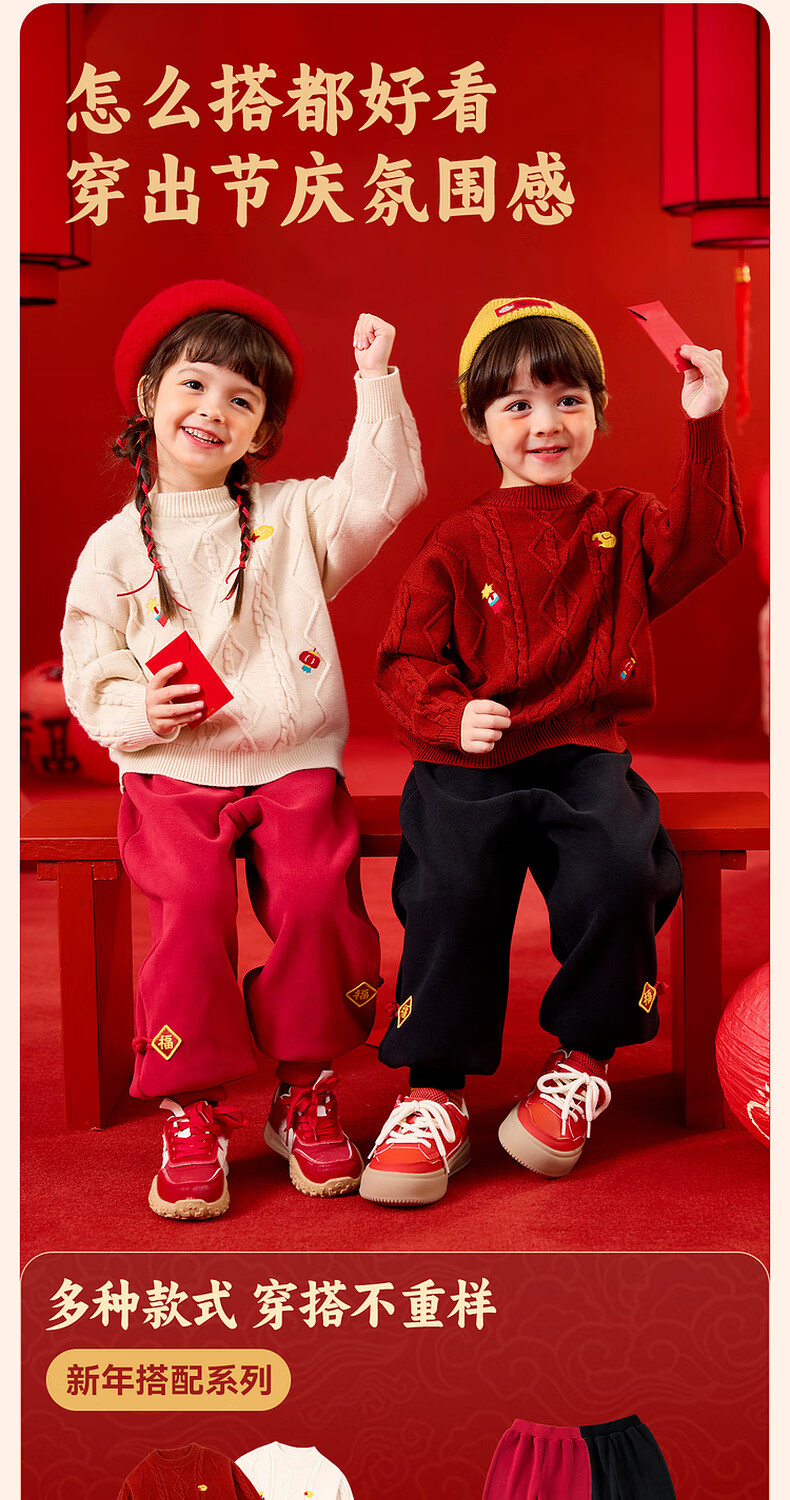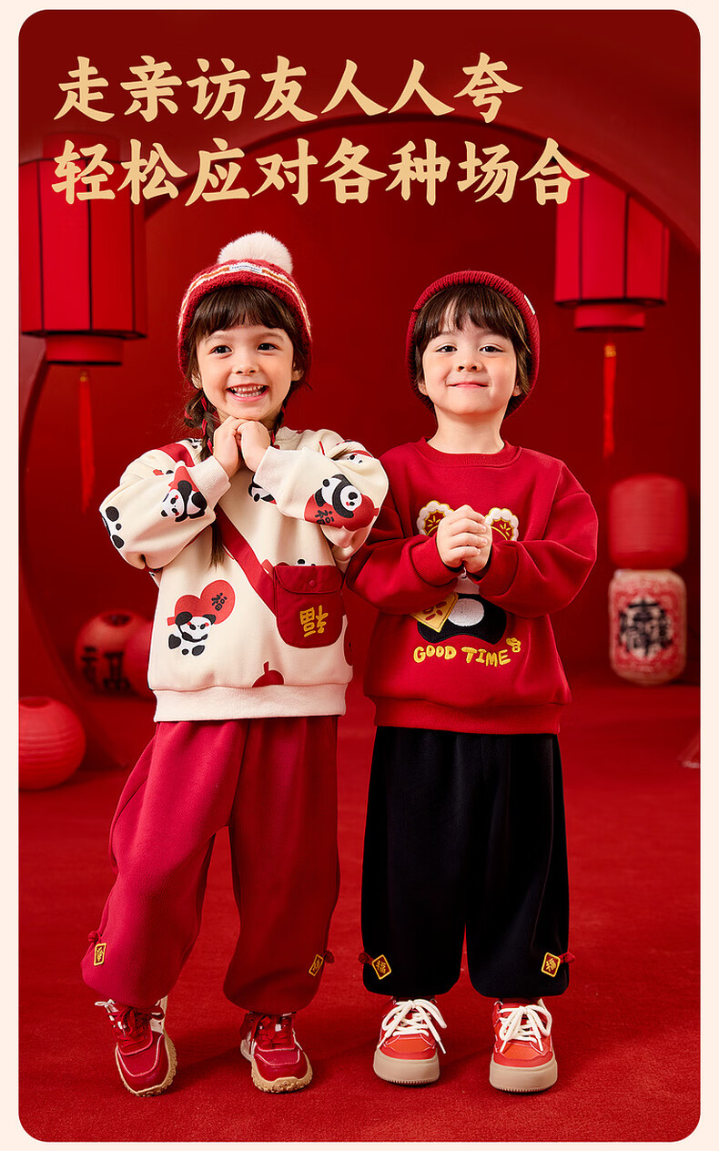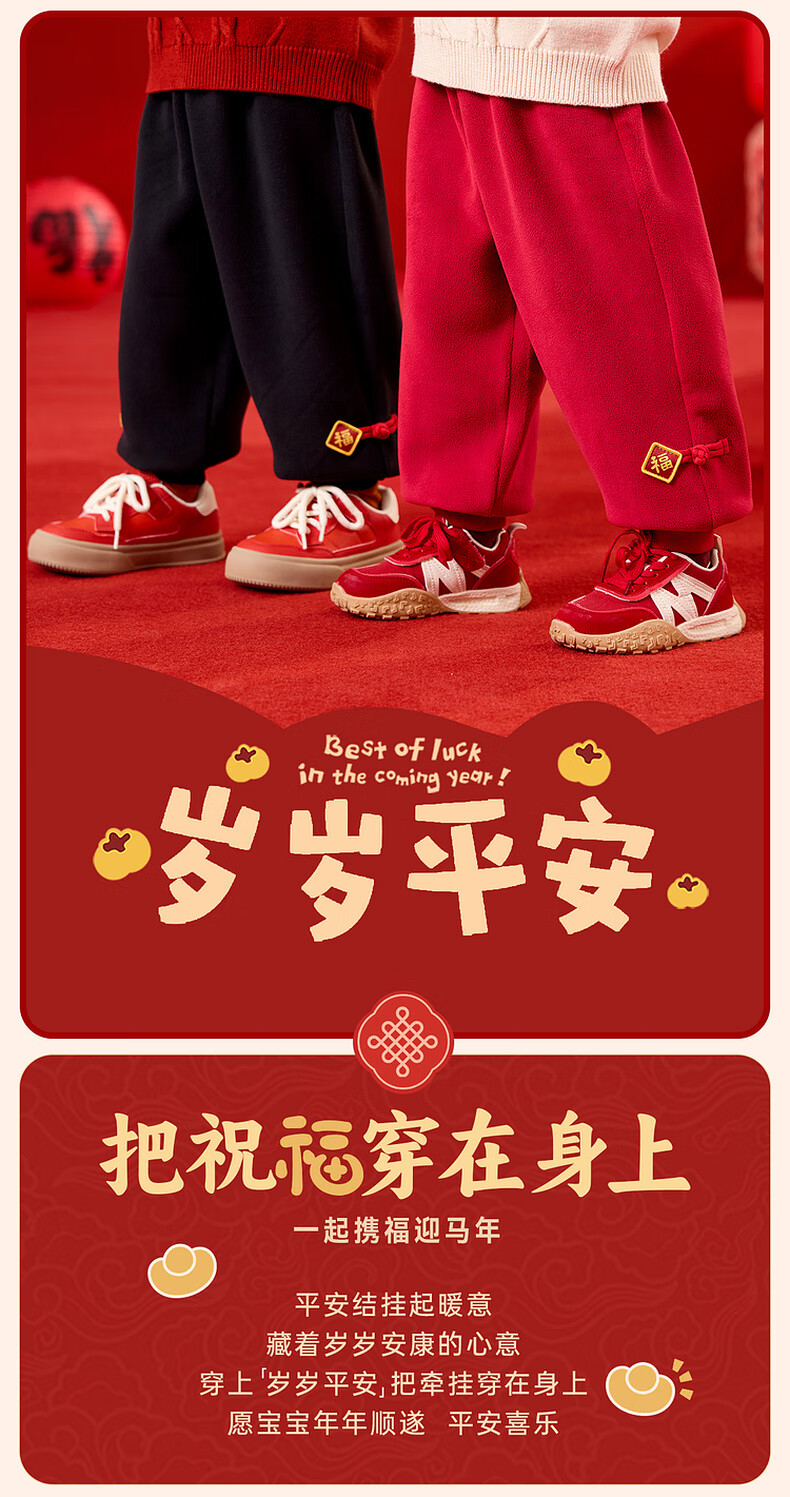 嘟嘟家儿童裤子新中式加绒冬款男童长裤拜年服保暖冬装女童休闲裤宝宝潮 黑色 100