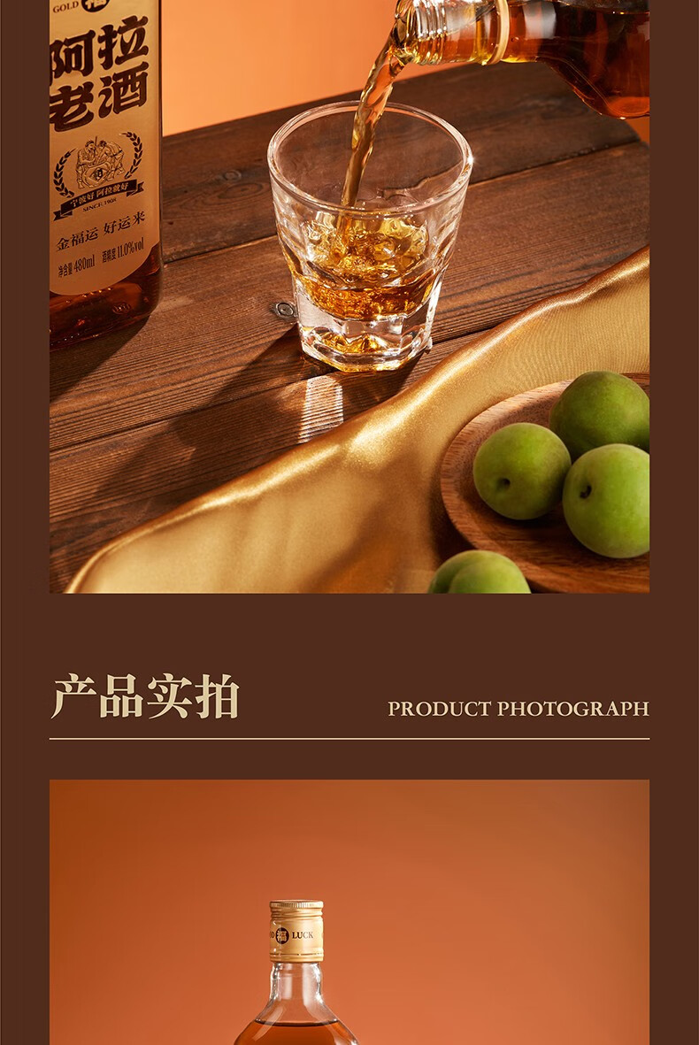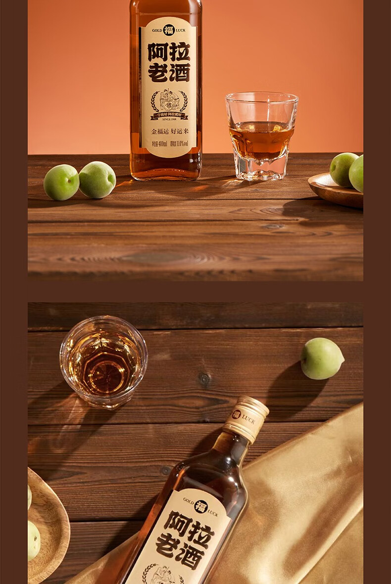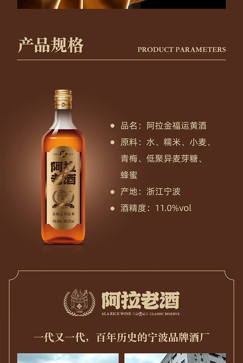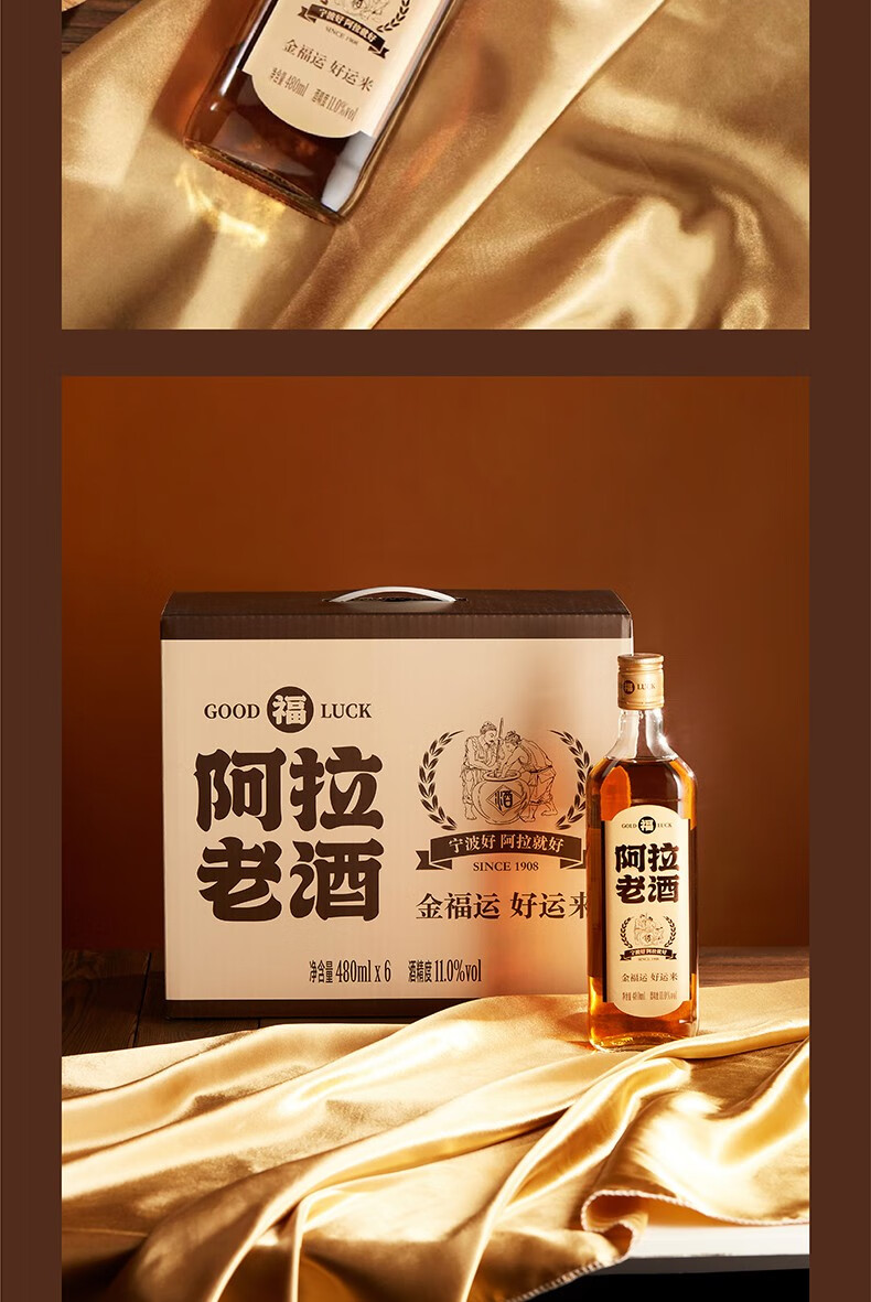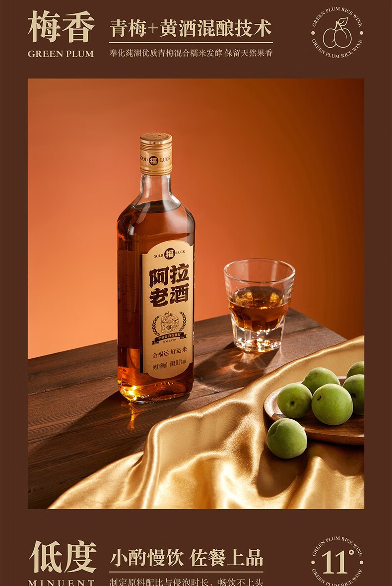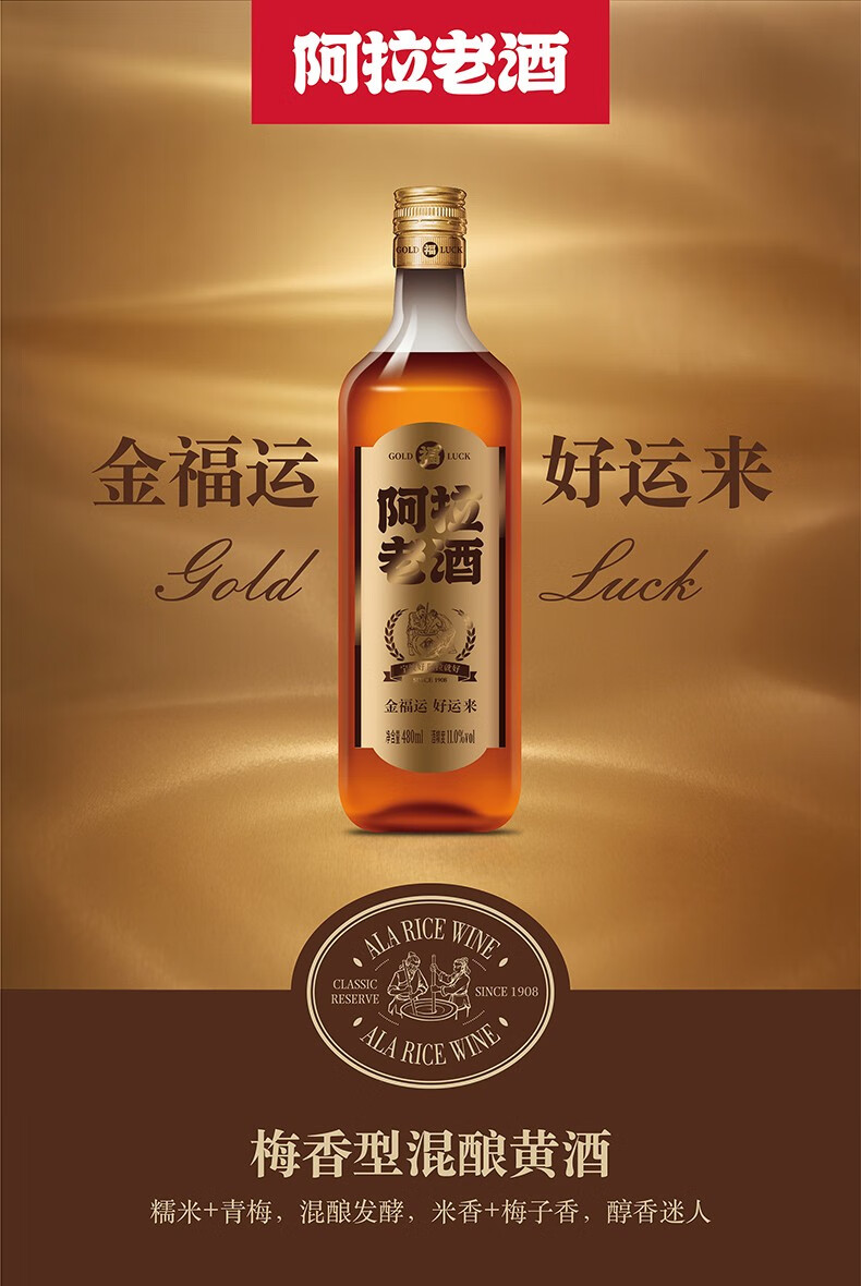 阿拉老酒金福运黄酒 青梅混酿型黄酒 清爽回甘 独酌宴请11% Vol 480mL 6瓶 整箱装