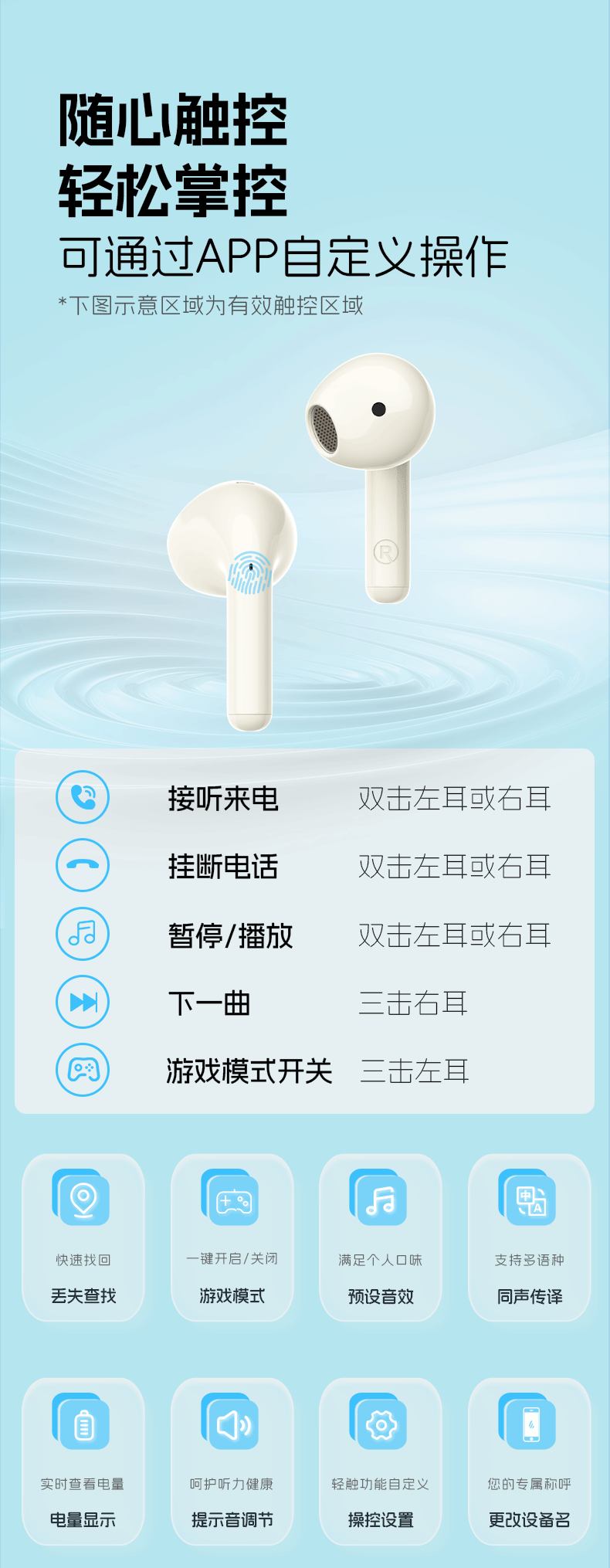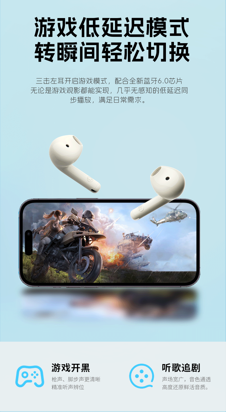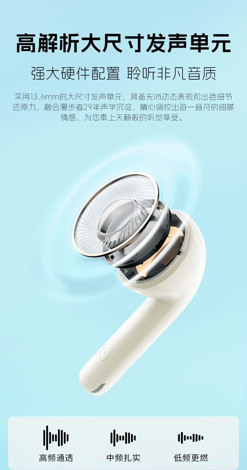 漫步者Echo Air真无线蓝牙6.0耳机半入耳式降噪长久续航久戴不痛同声传译适用华为小米OPPO苹果手机耳机 Echo Air青雾砂【升级蓝牙6.0+晒图有礼】