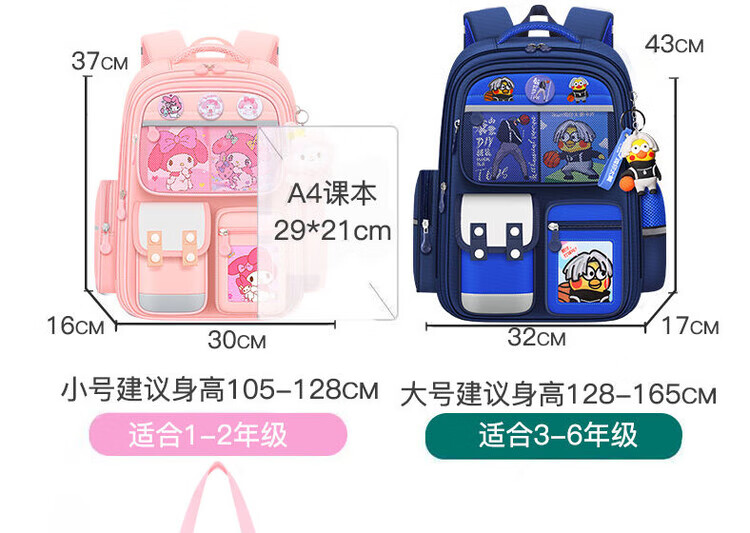 芝麻宝贝美乐蒂书包小学生女一二三到六年级卡通减负护脊超轻大容量双肩包 樱花粉小号【美乐蒂卡片】