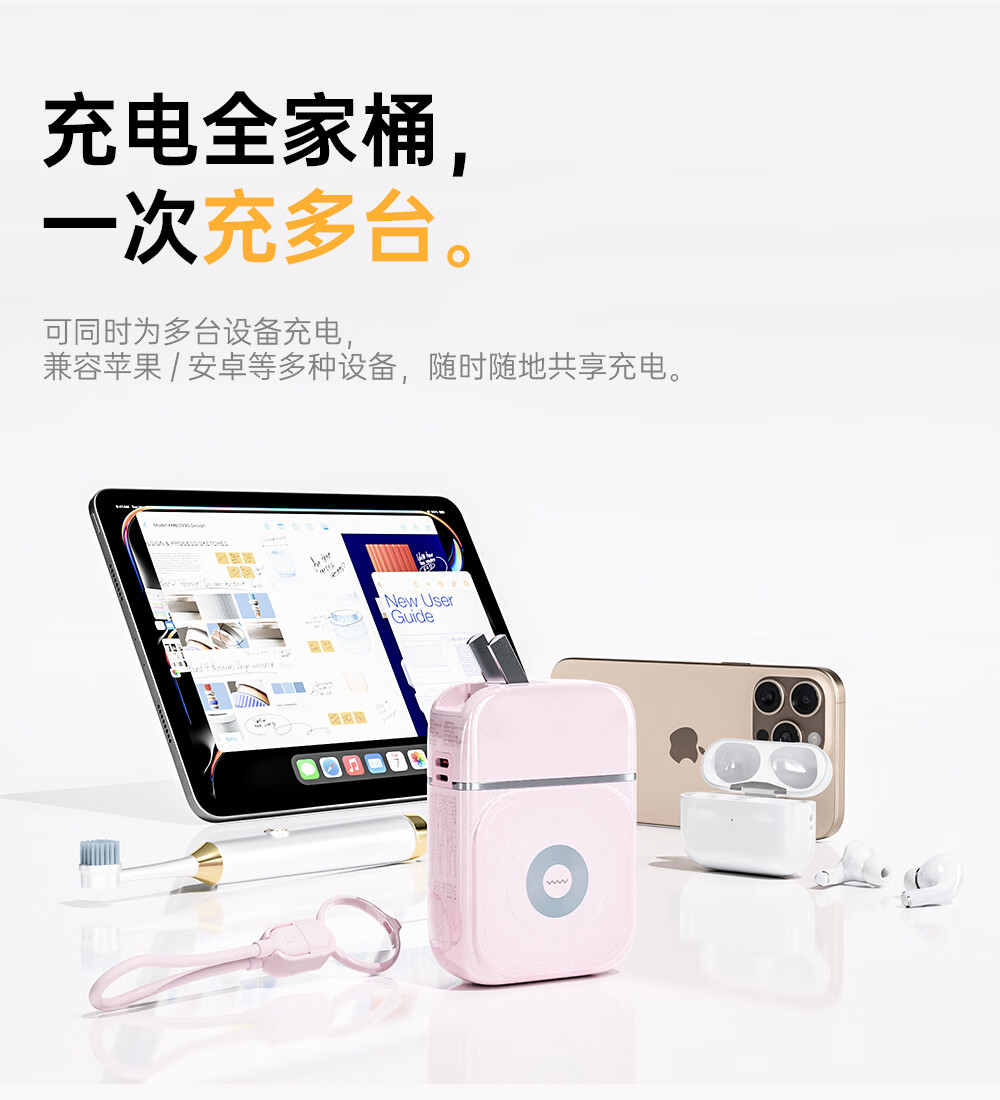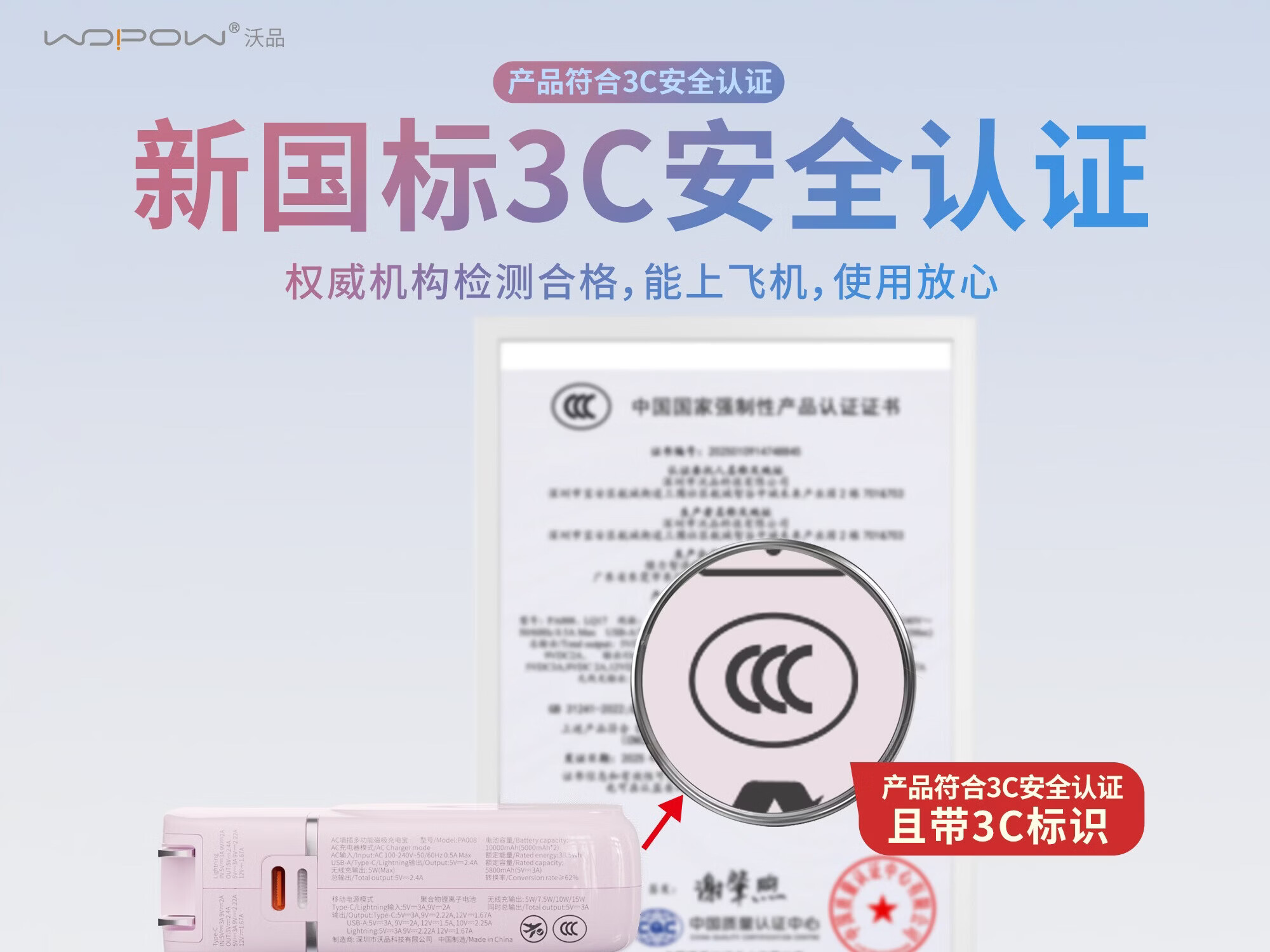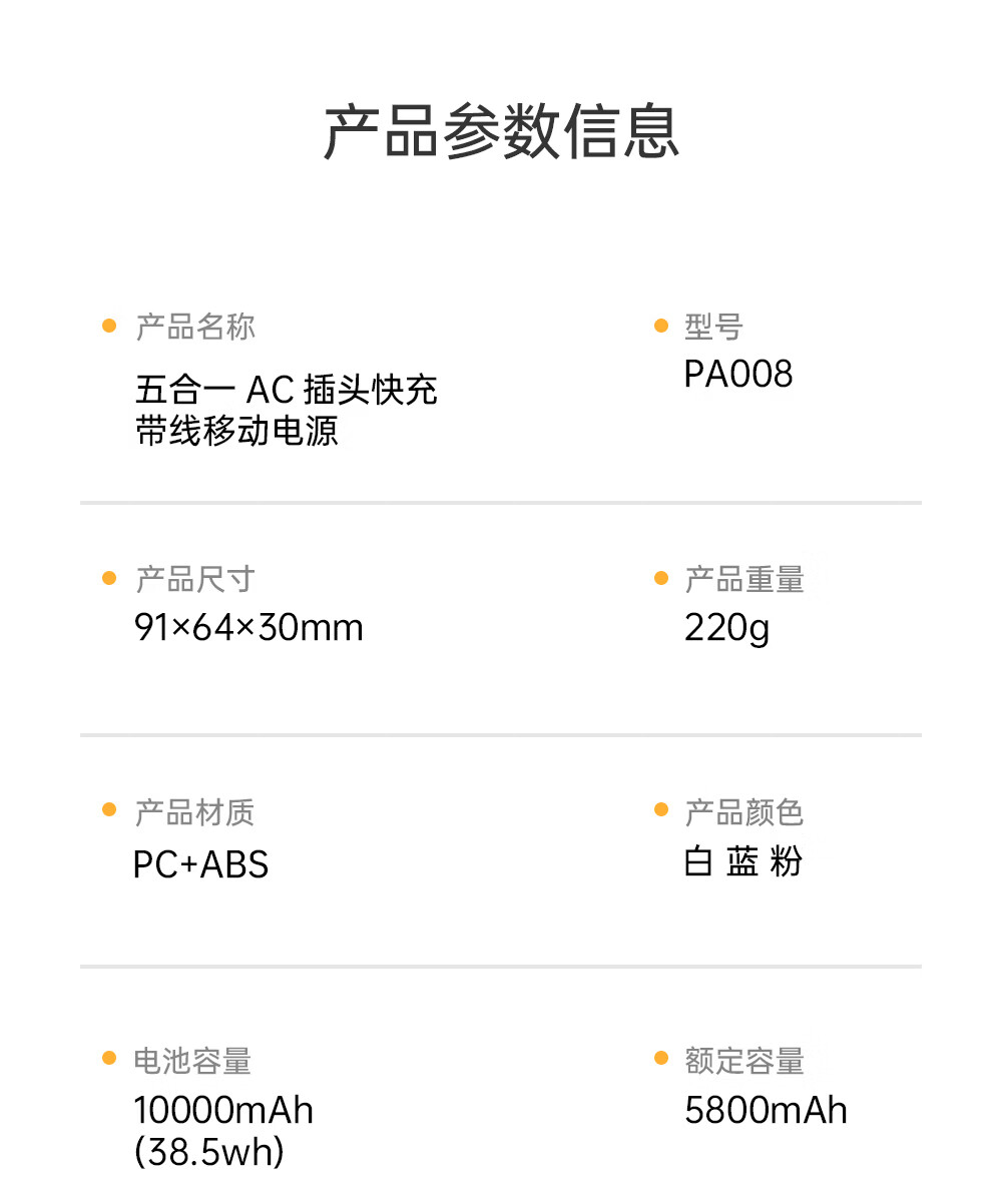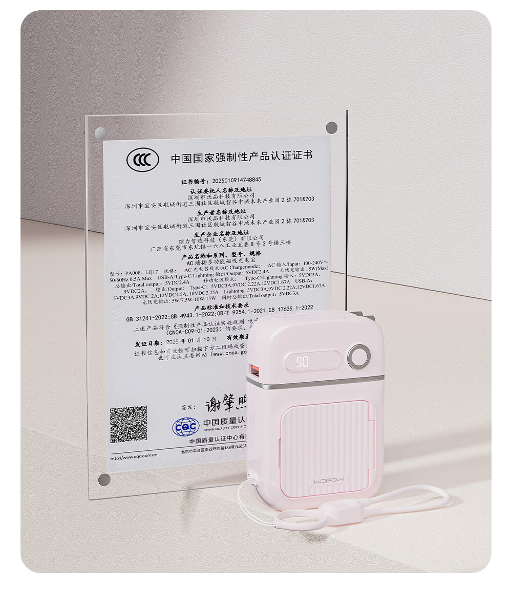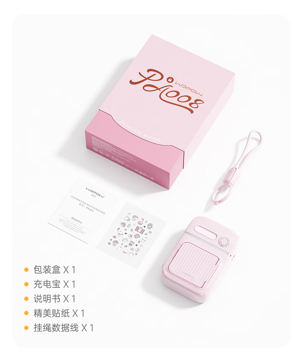 沃品(WOPOW)【明星推荐 3C认证】沃品五合一全能充电宝1万毫安自带线带插头磁吸 蓝色 10000mAh