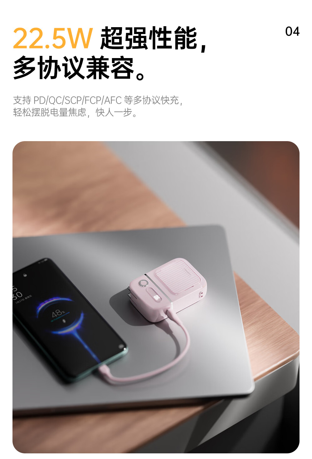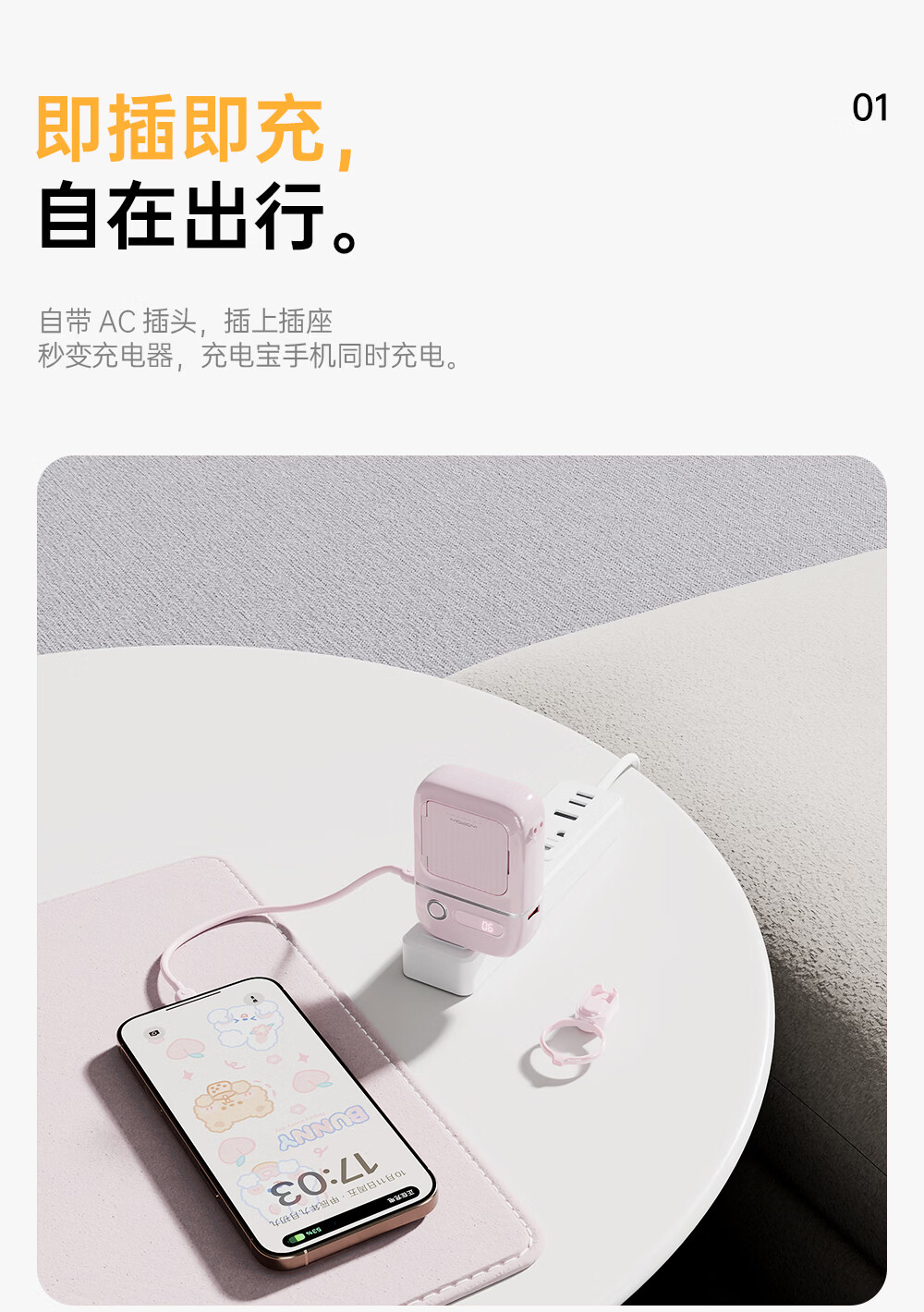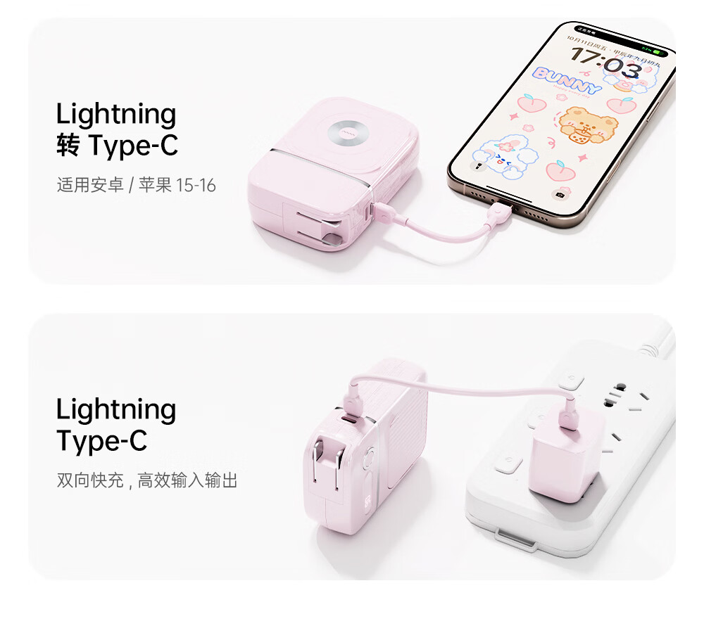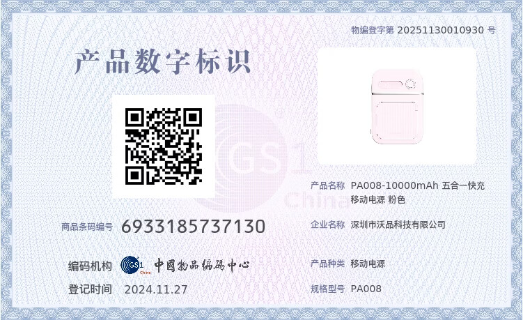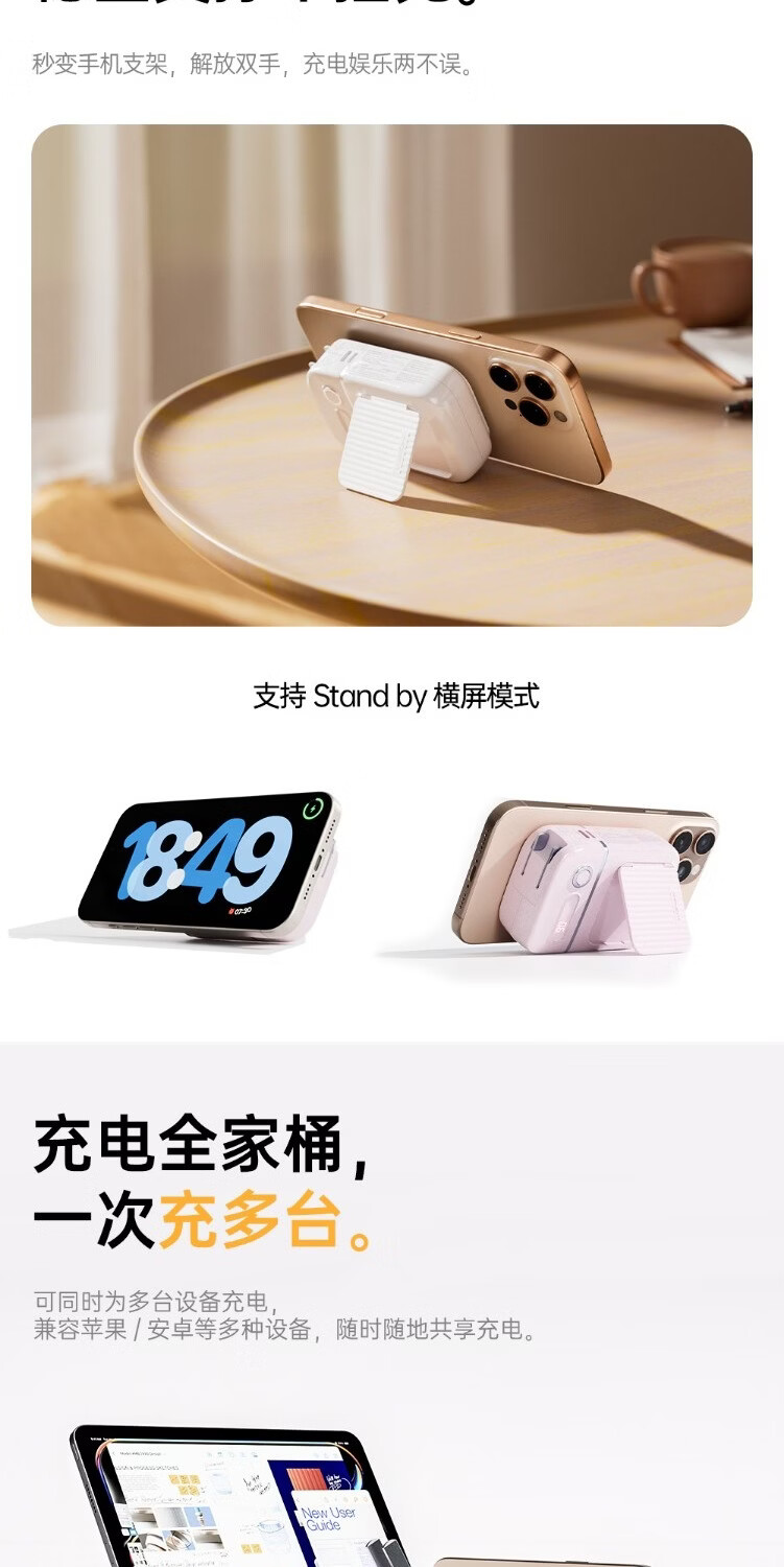 沃品(WOPOW)【明星推荐 3C认证】沃品五合一全能充电宝1万毫安自带线带插头磁吸 蓝色 10000mAh
