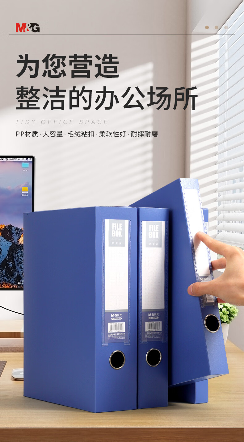 晨光(M&G)档案盒A4文件盒加厚资料盒大容量文件收纳盒文件夹立式55mm资料册塑料文件盒财务凭证文档整理盒 【5个】蓝色-背宽55mm