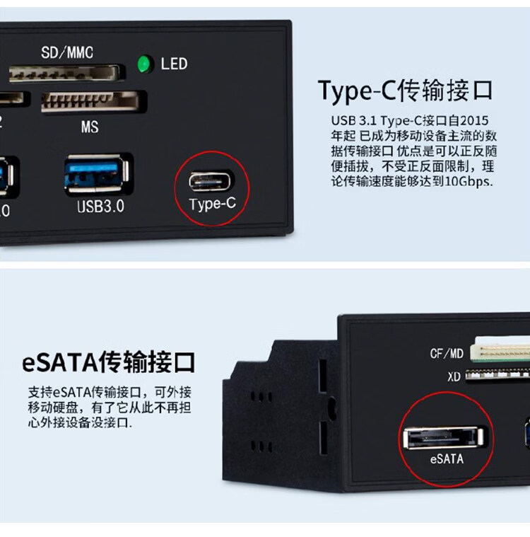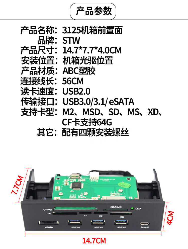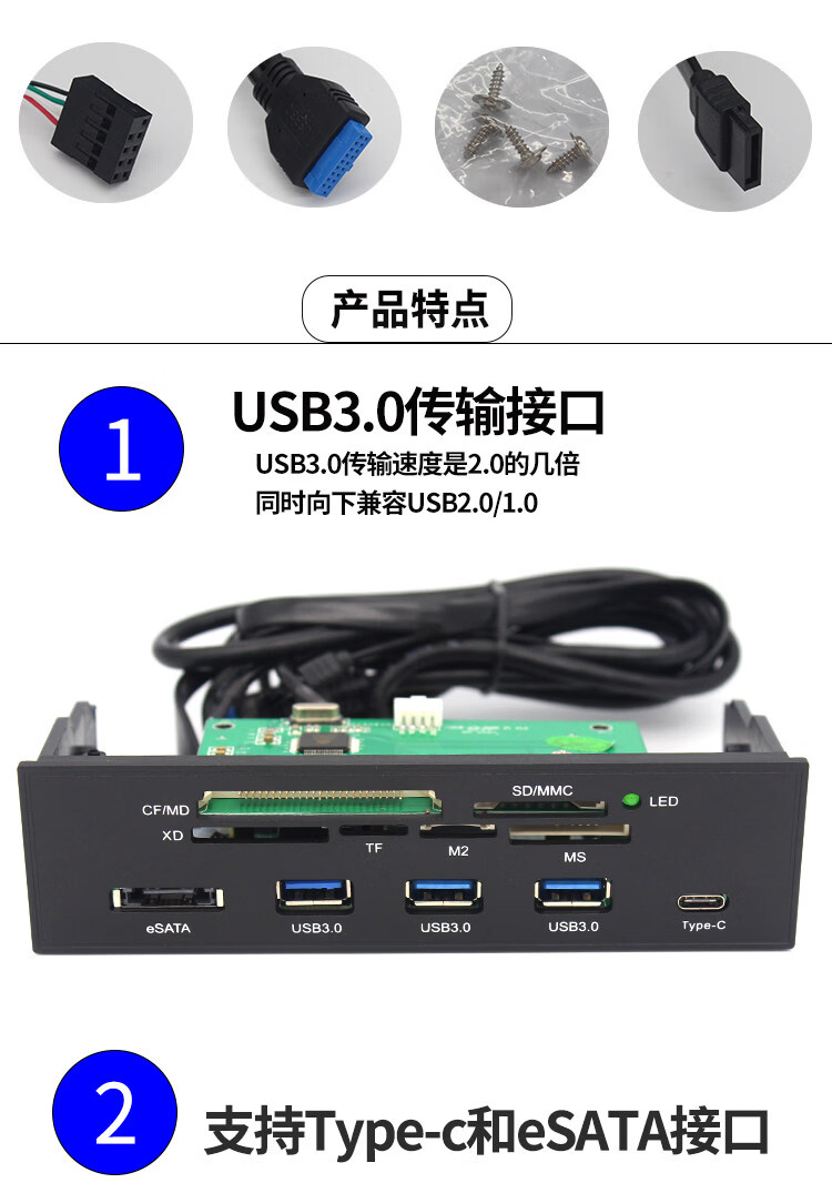 OKOU六合一USB3.0STW-3125多功能光驱位读卡器台式机USB3.0多合一tybe-c口