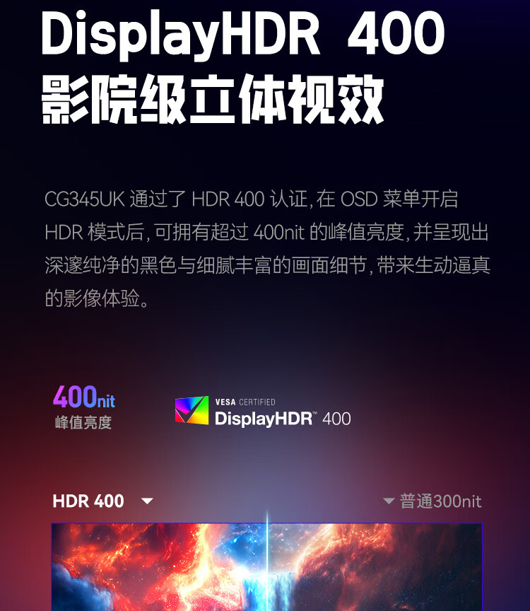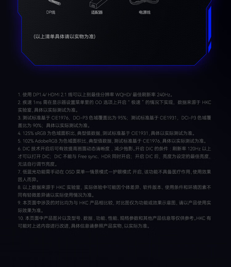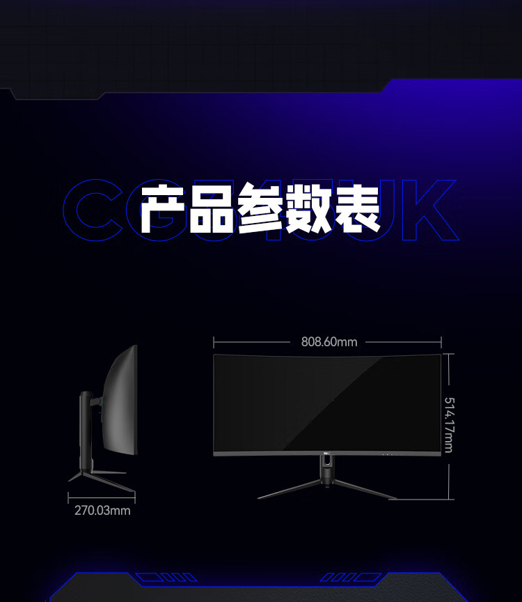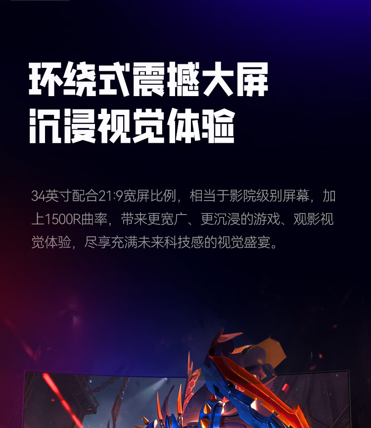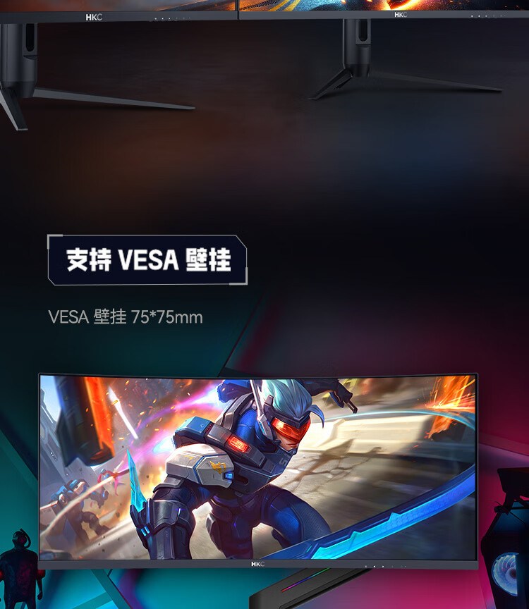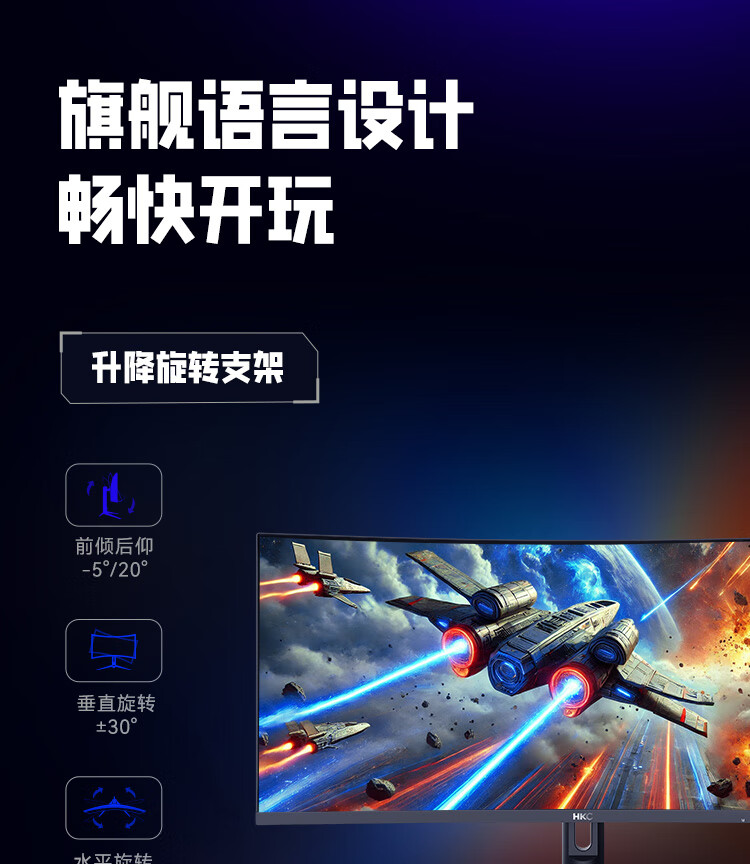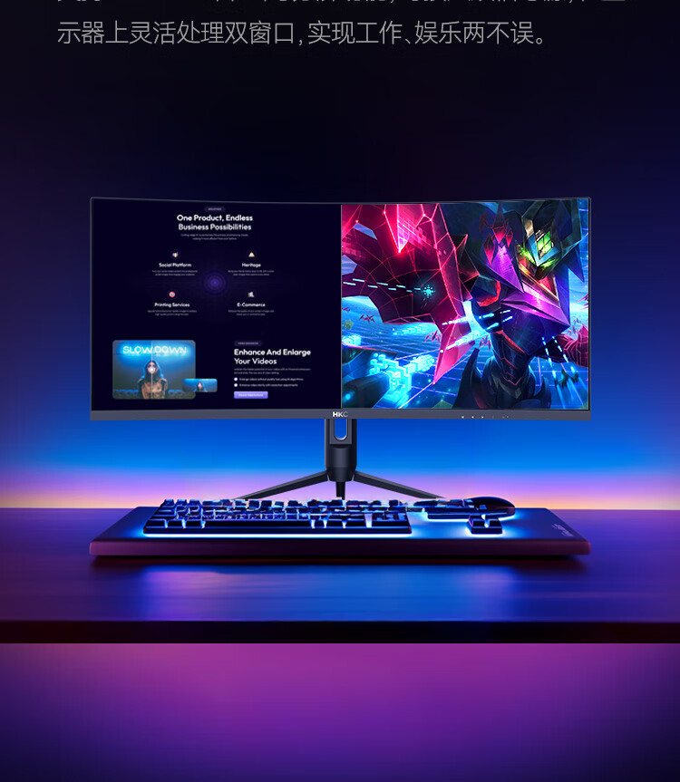 HKC 34英寸21:9带鱼屏WQHD准4K超清240Hz HDR400认证1500R曲面1ms游戏电竞HDMI2.1升降显示器CG345UK