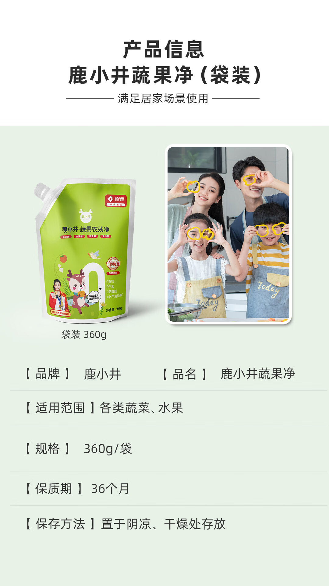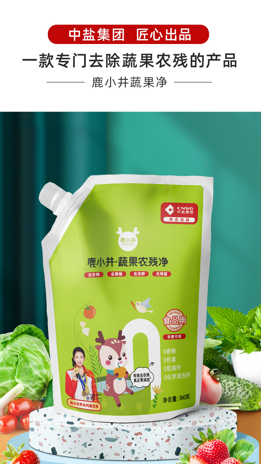 鹿小井蔬果农残净360*4袋 果蔬清洗剂清洗盐洗涤盐去农残率99%