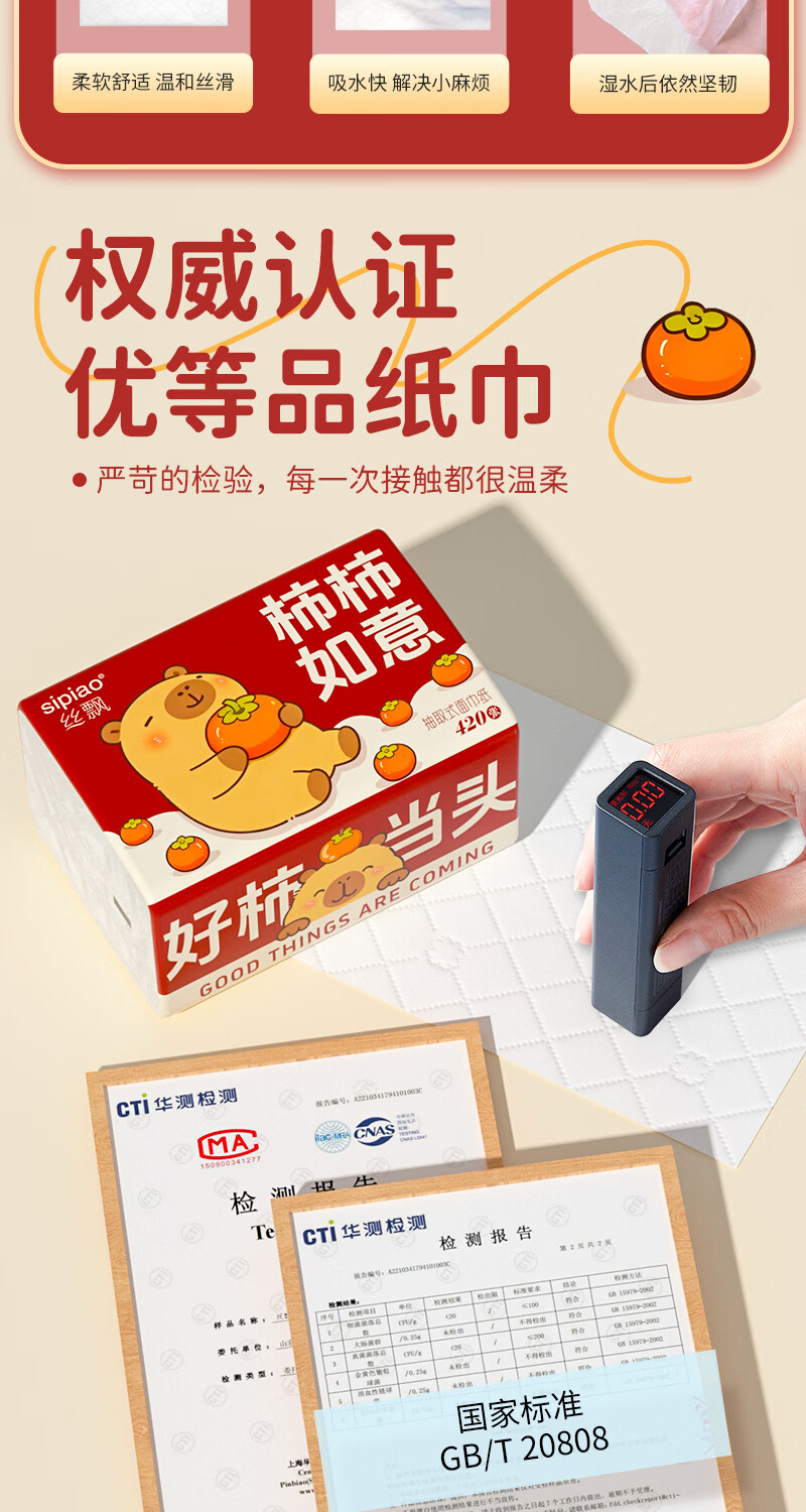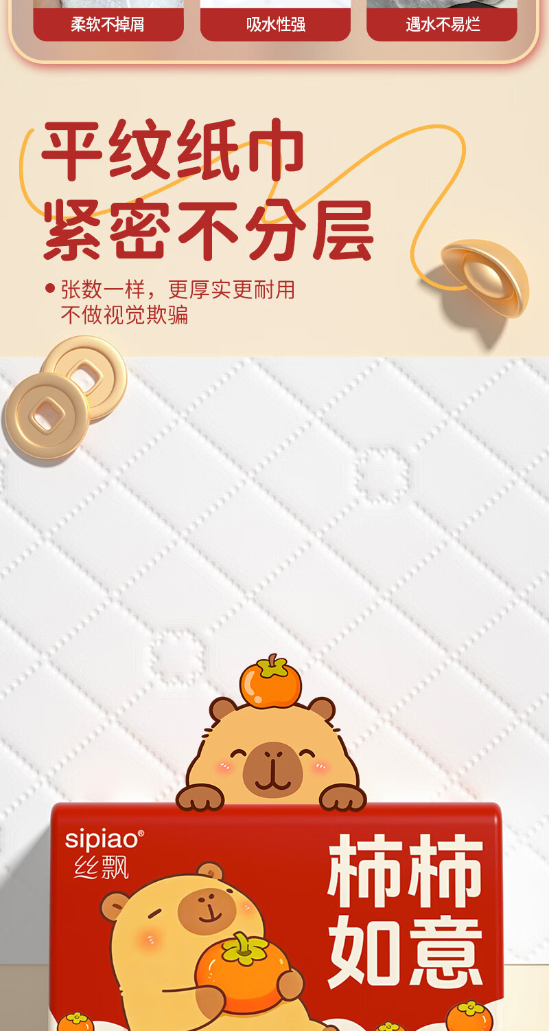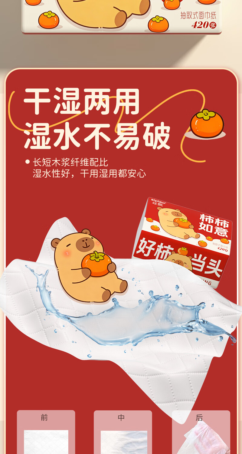 丝飘抽纸餐巾纸家用大包面巾纸卫生纸优等品纸巾家庭用纸整箱批发装 5层 420张*20包【囤货装】