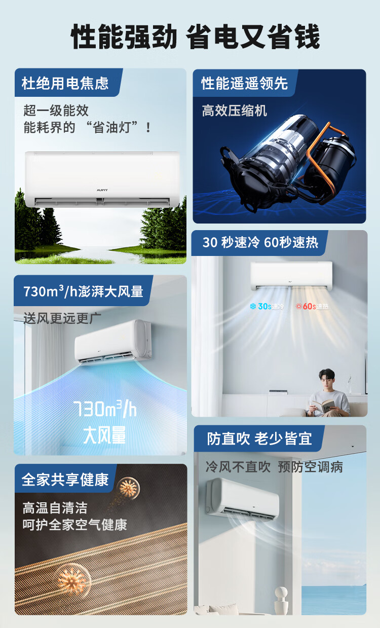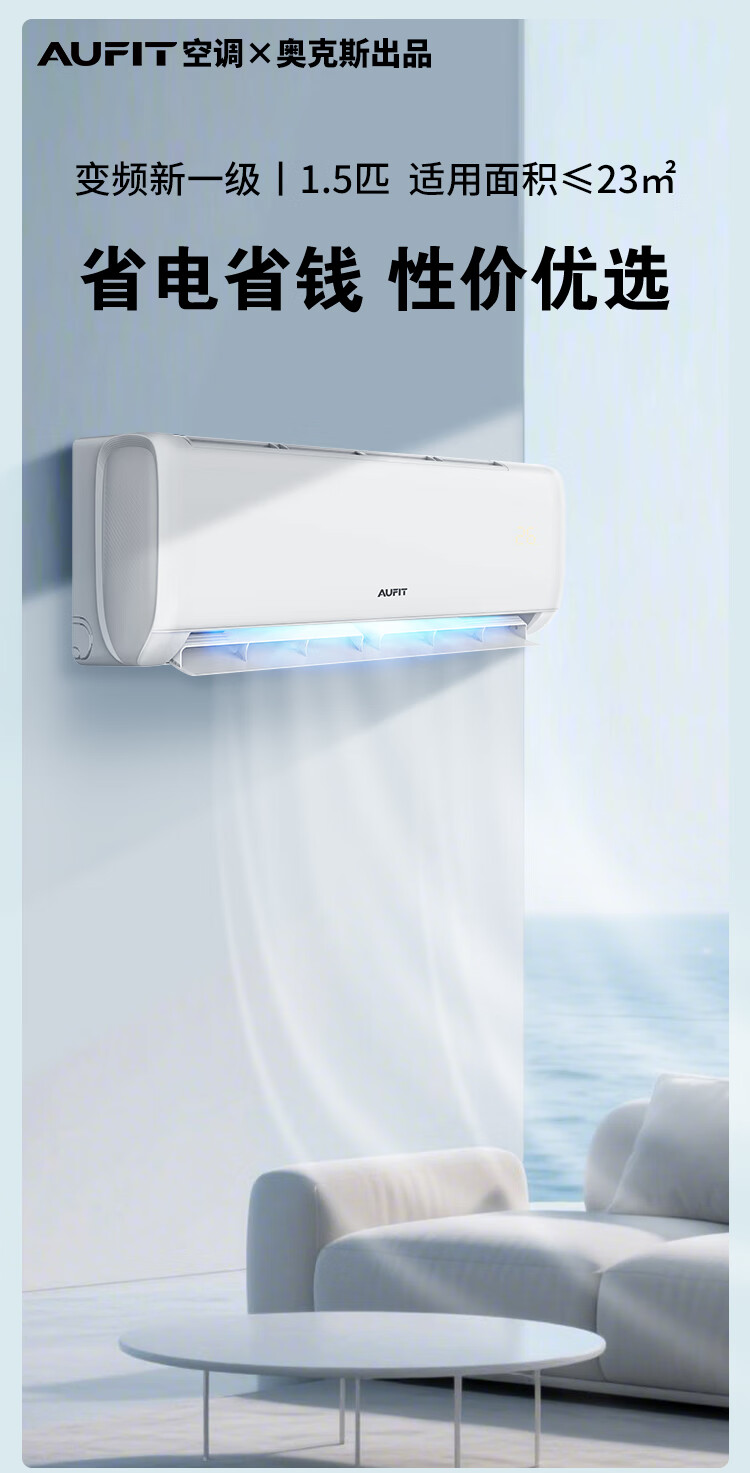 AUFIT空调奥克斯出品大1匹1.5匹新一级变频冷暖家用挂机客厅2P3匹省电立式柜机官方正品以旧换新补贴15% 大3匹 一级能效WiFi智控/大风量立式柜机【新品】
