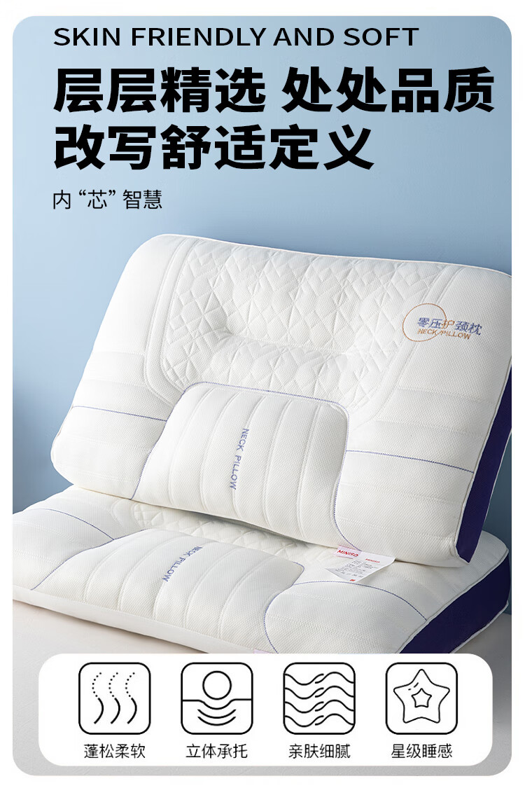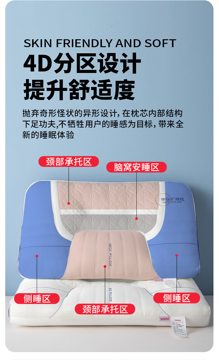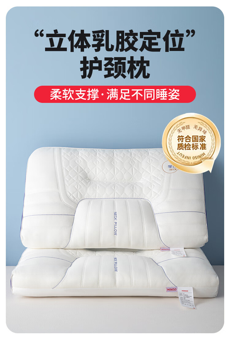 名创优品(MINISO)天然抗菌枕头护颈枕深度睡眠专用 人体工学释压颈椎枕头芯单只