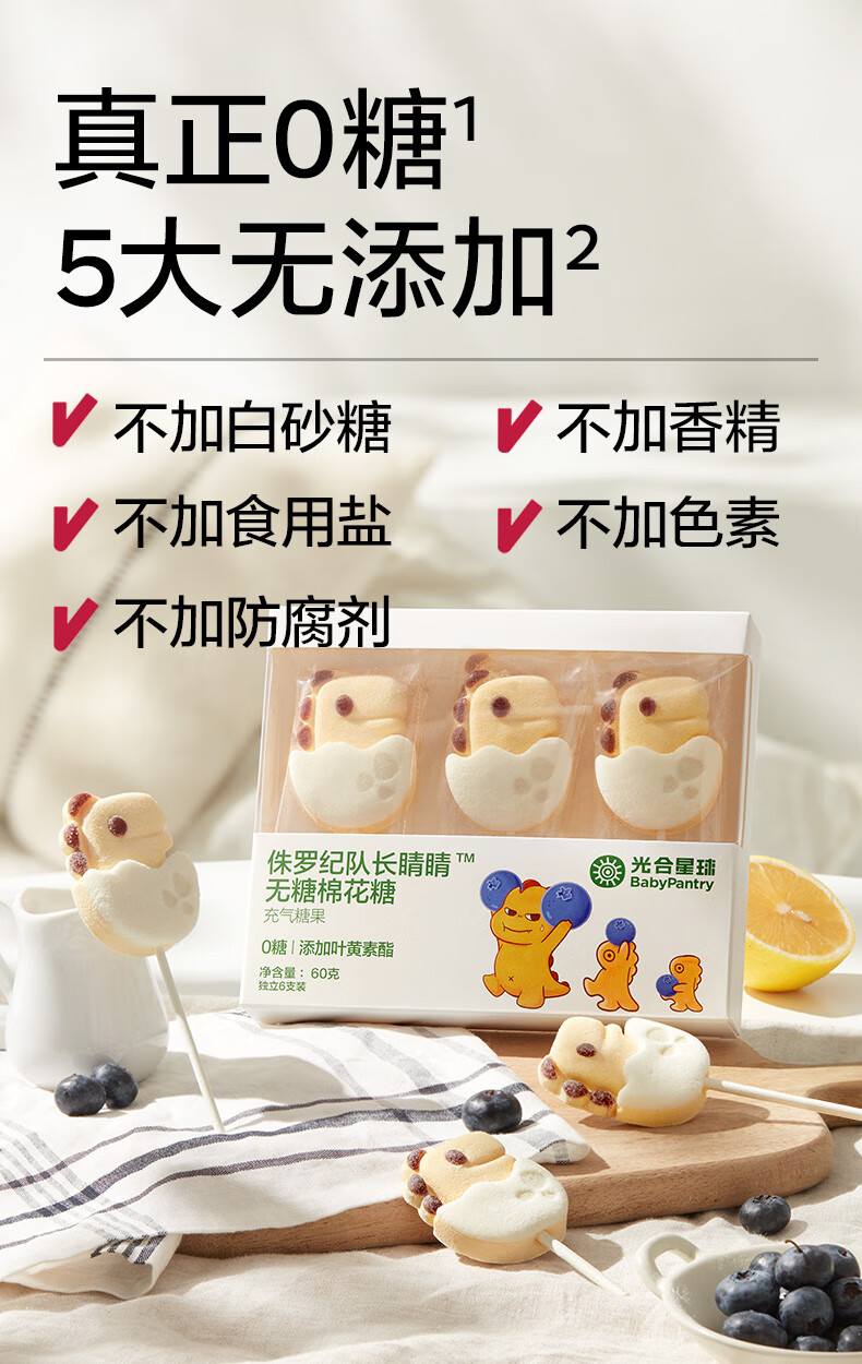 光合星球babycare无糖棉花糖棒棒糖无添加 儿童宝宝零食叶黄素酯糖果60g