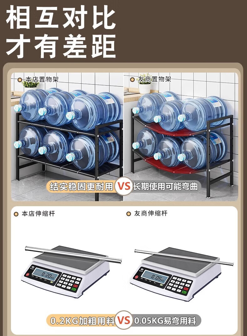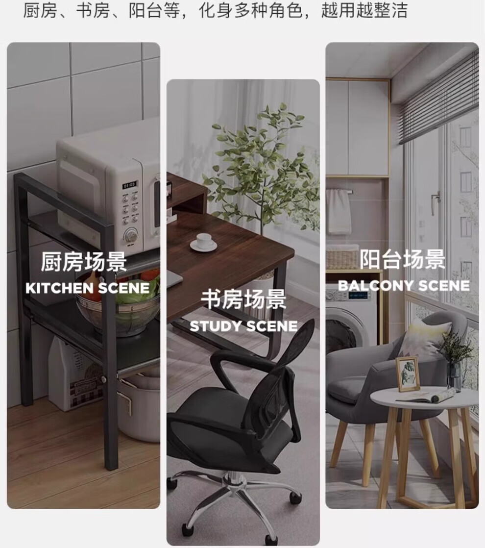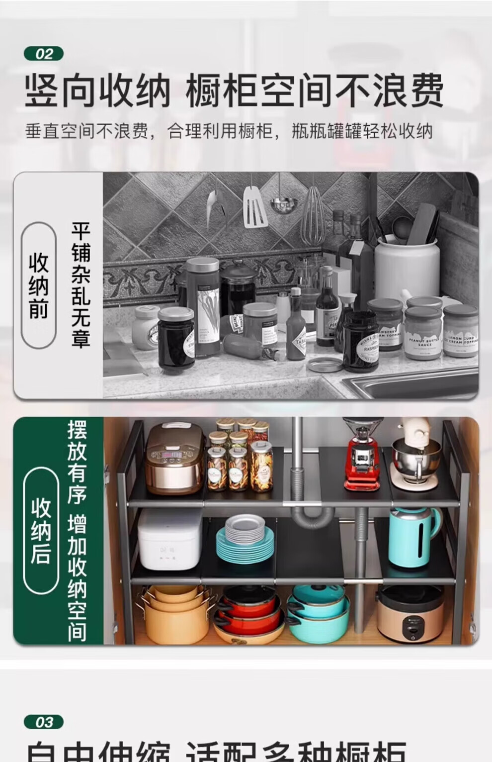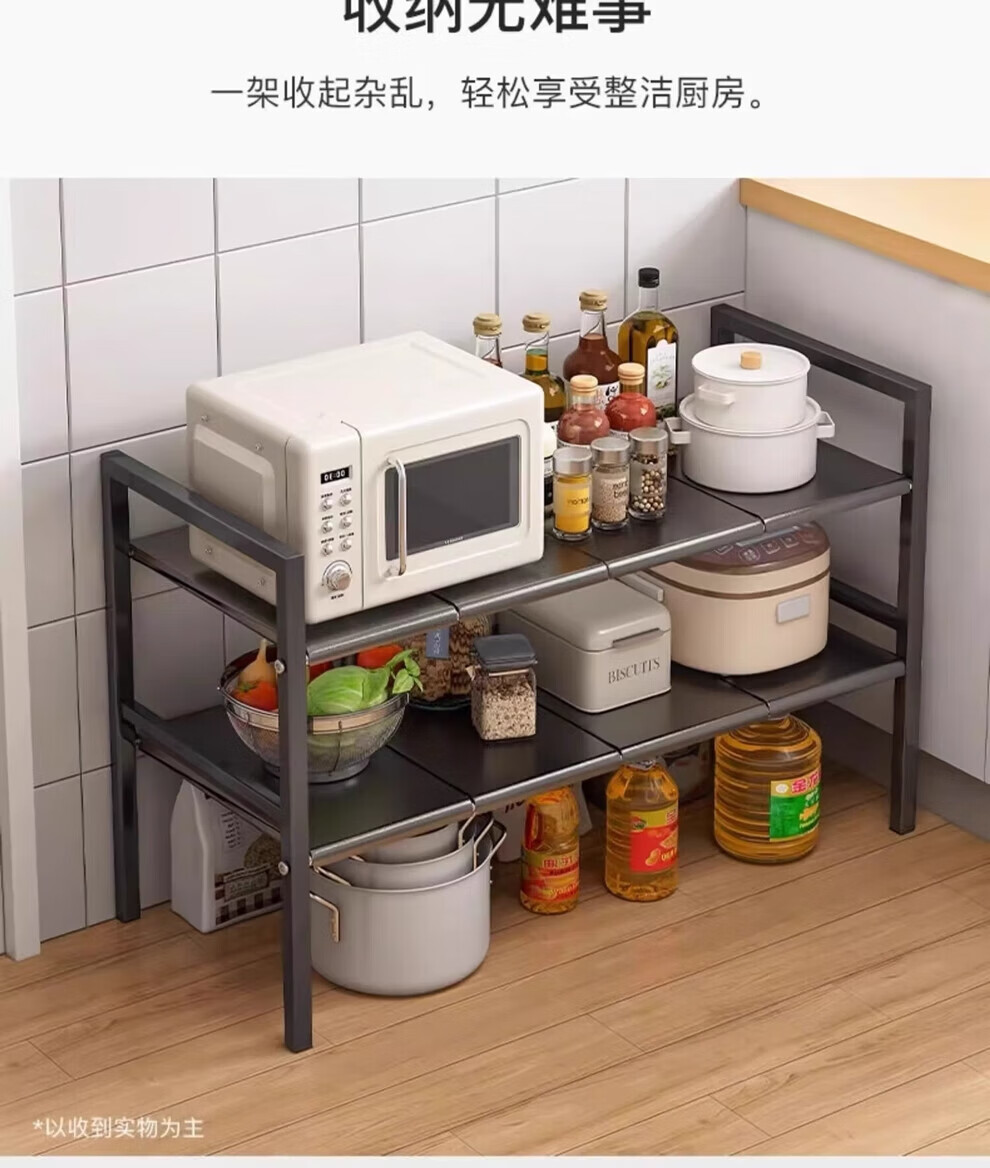 馨婺家厨房可伸缩下水槽置物架整理水池下收纳架子橱柜多功能锅架储物架 黑色-单层可伸缩【3板无网】加粗加厚