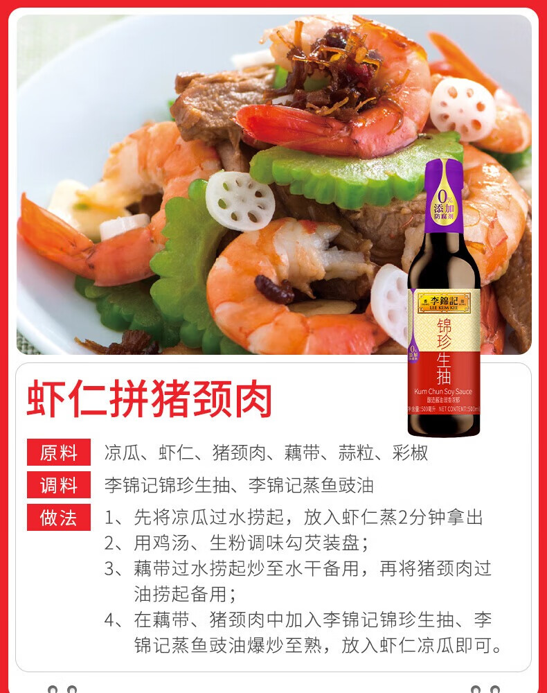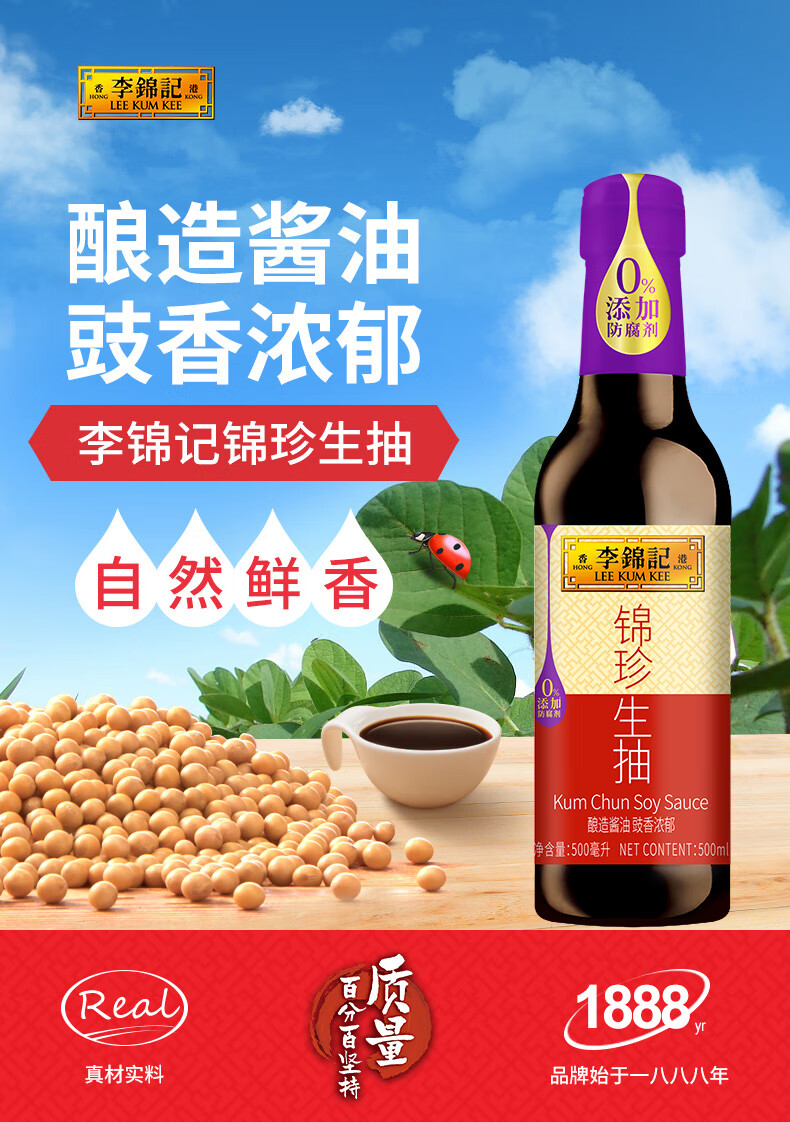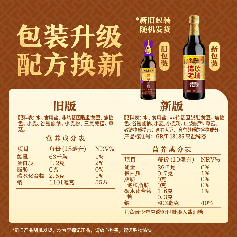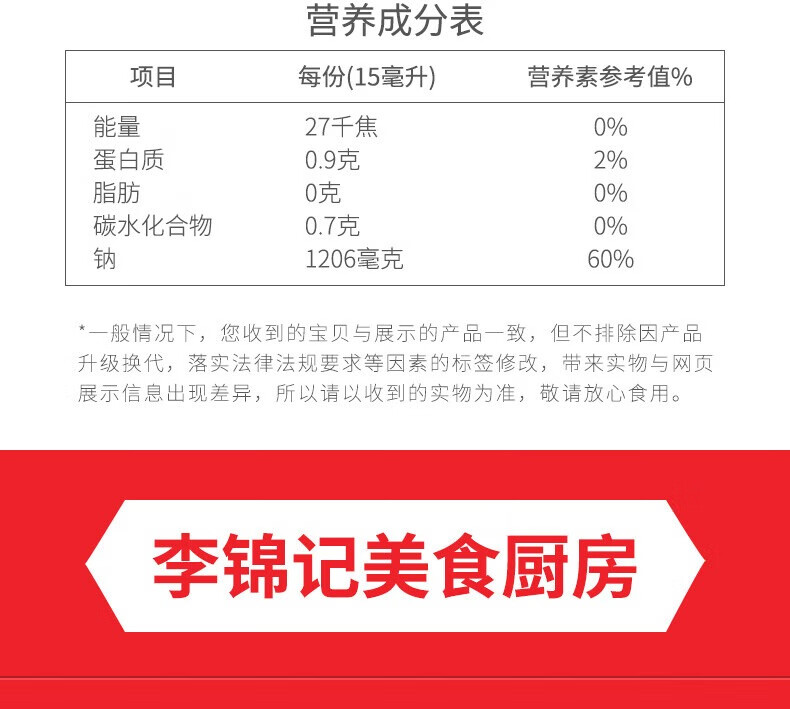 李锦记精选生老抽 锦珍生老抽 家用瓶装提味增鲜红烧上色酿造酱油调味料 李锦记鲜味生抽585克*1瓶