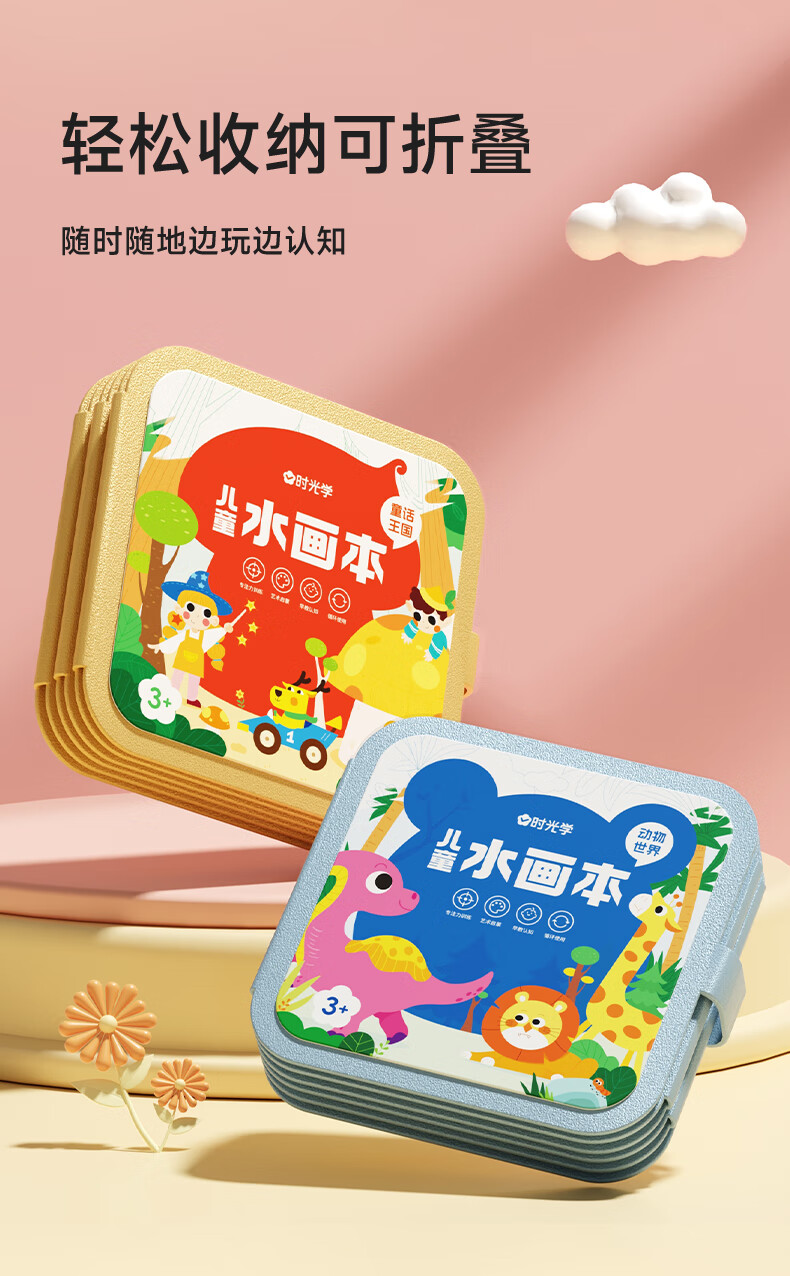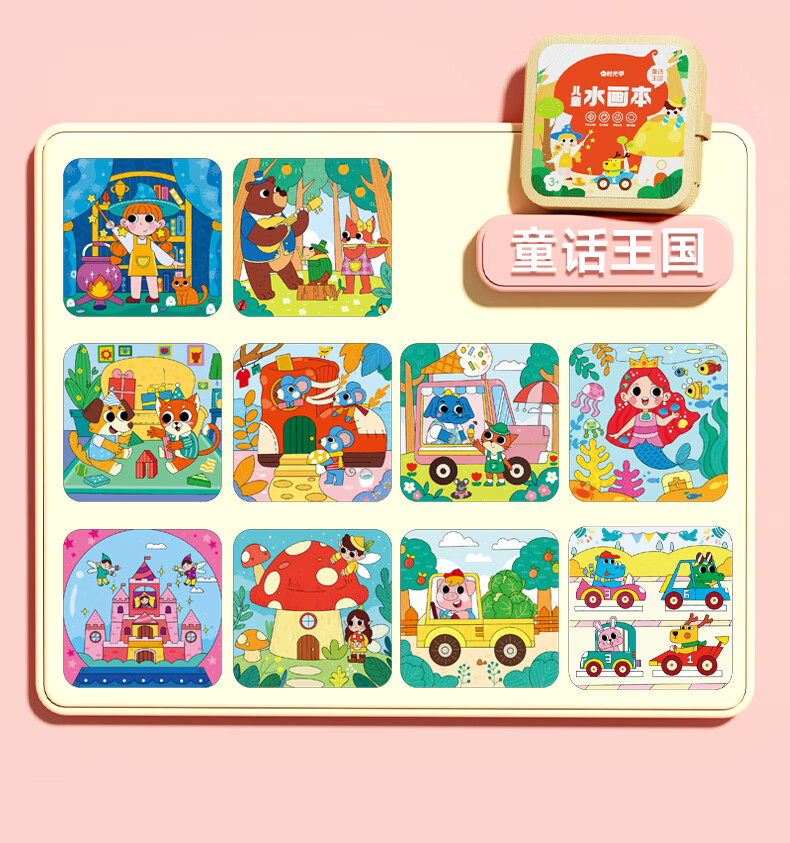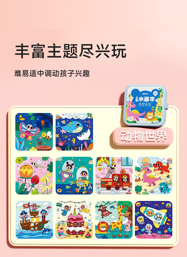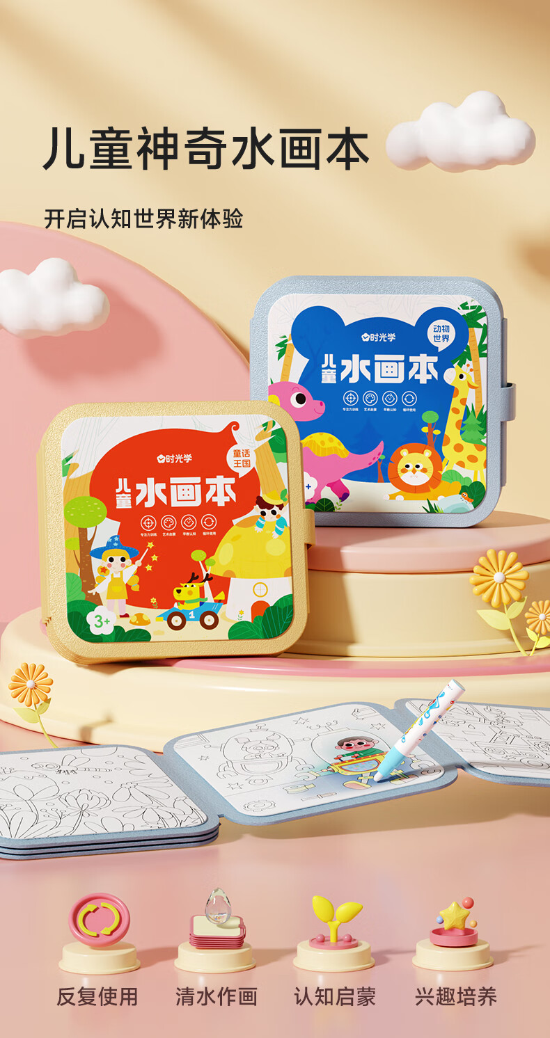 时光学儿童水画本全套2本动物世界+童话王国清水涂色绘画本反复涂鸦幼儿园宝宝男孩女孩生日礼物新年礼物