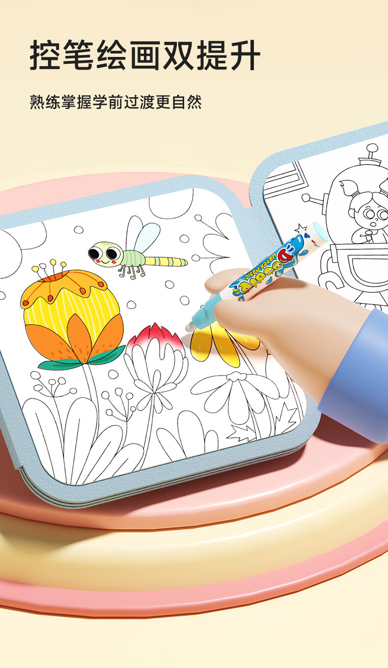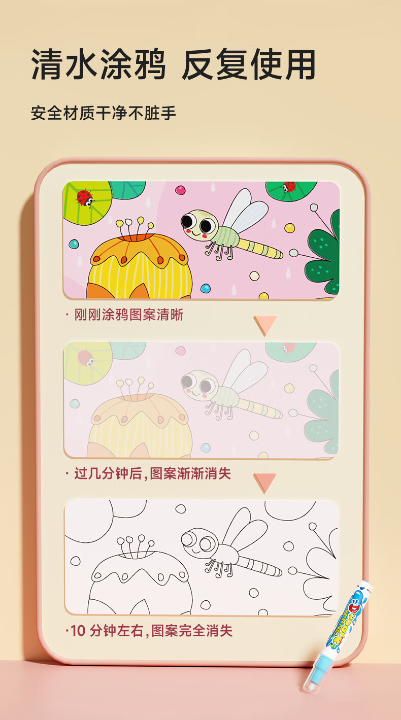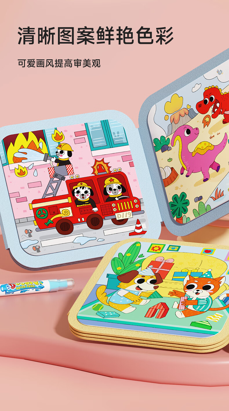 时光学儿童水画本全套2本动物世界+童话王国清水涂色绘画本反复涂鸦幼儿园宝宝男孩女孩生日礼物新年礼物