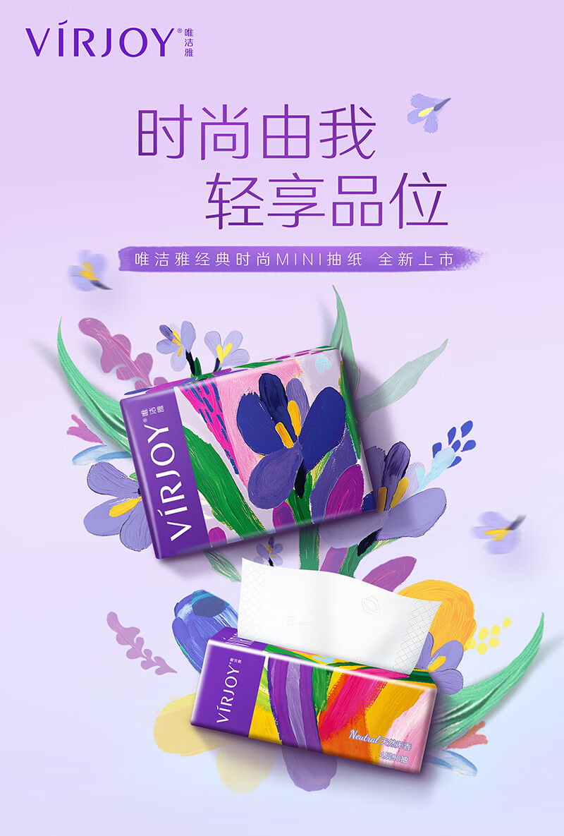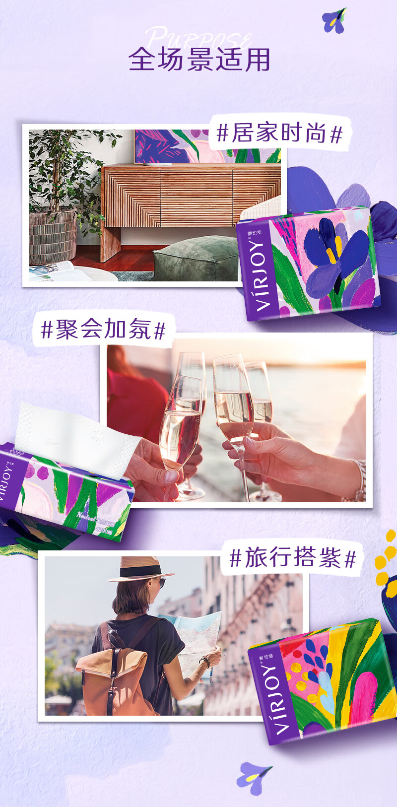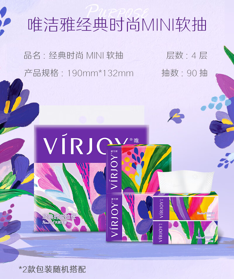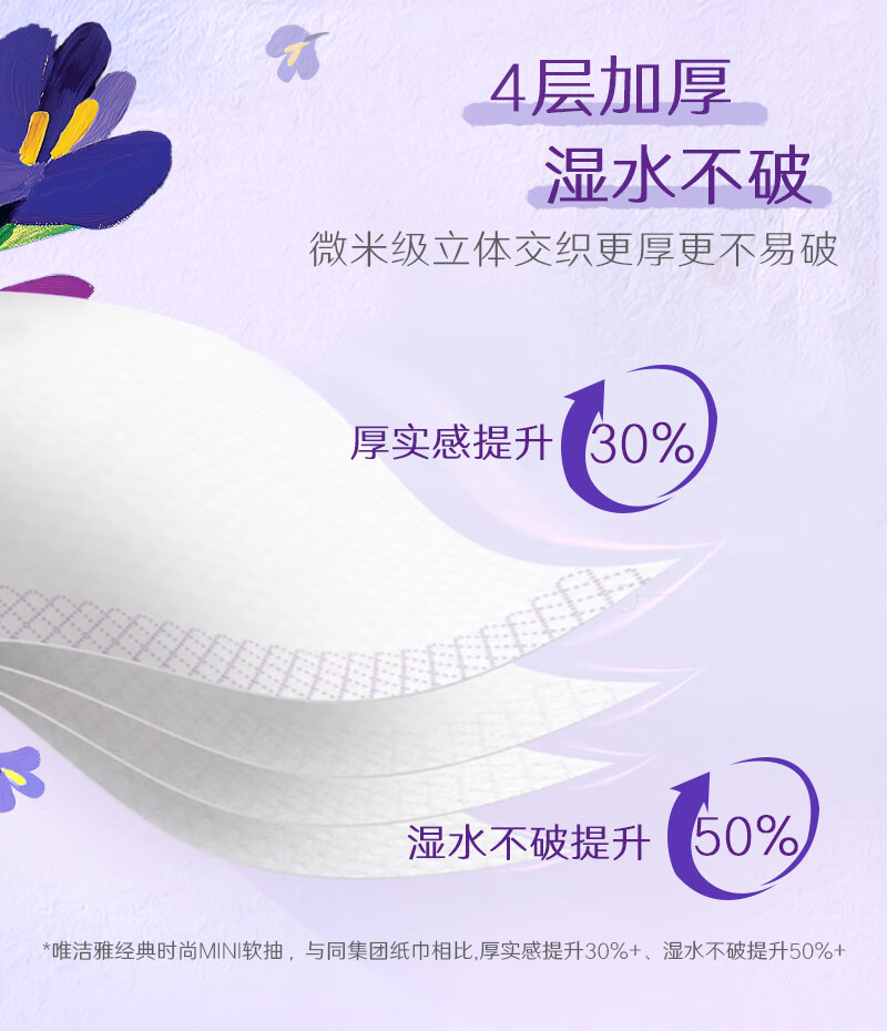 唯洁雅抽纸 无香4层90抽4包 鸢尾花整箱纸 亲肤可湿水纸巾卫生纸抽