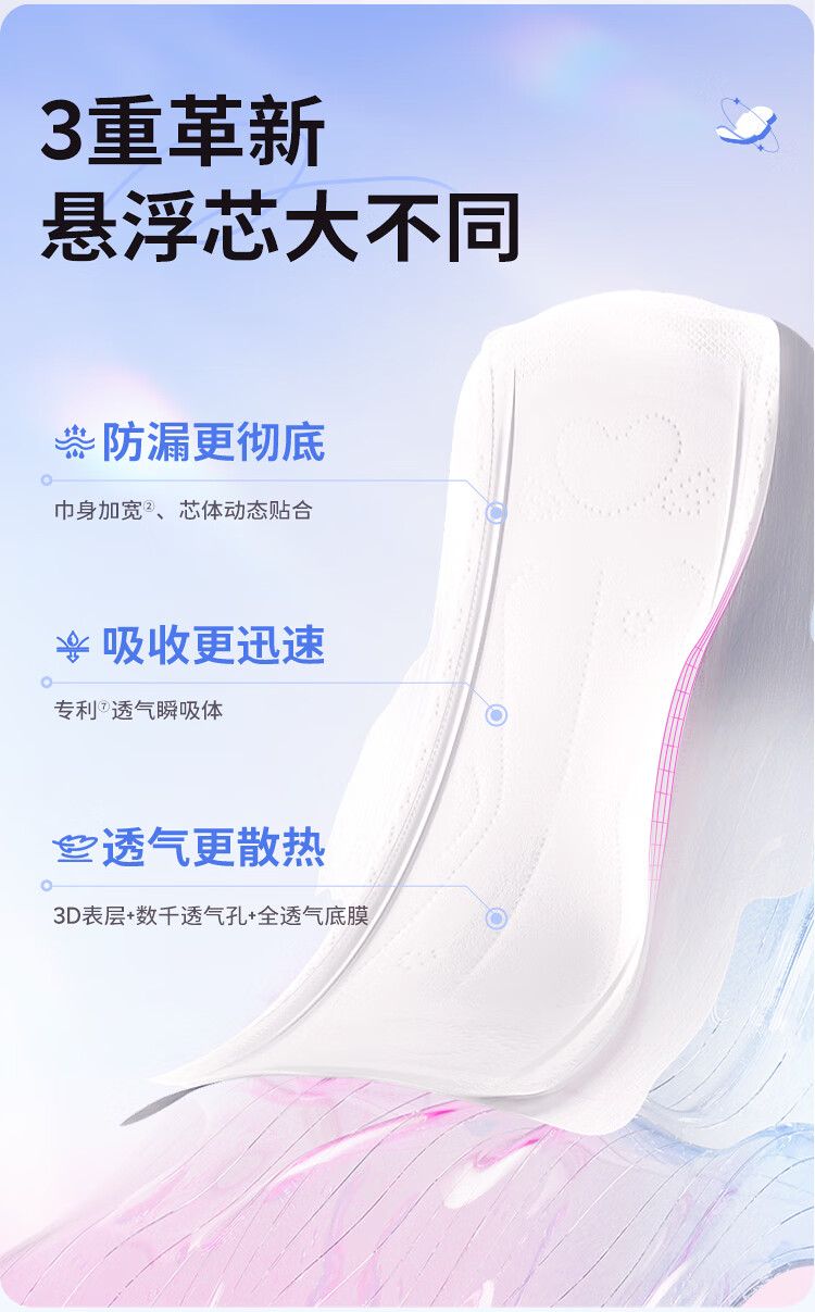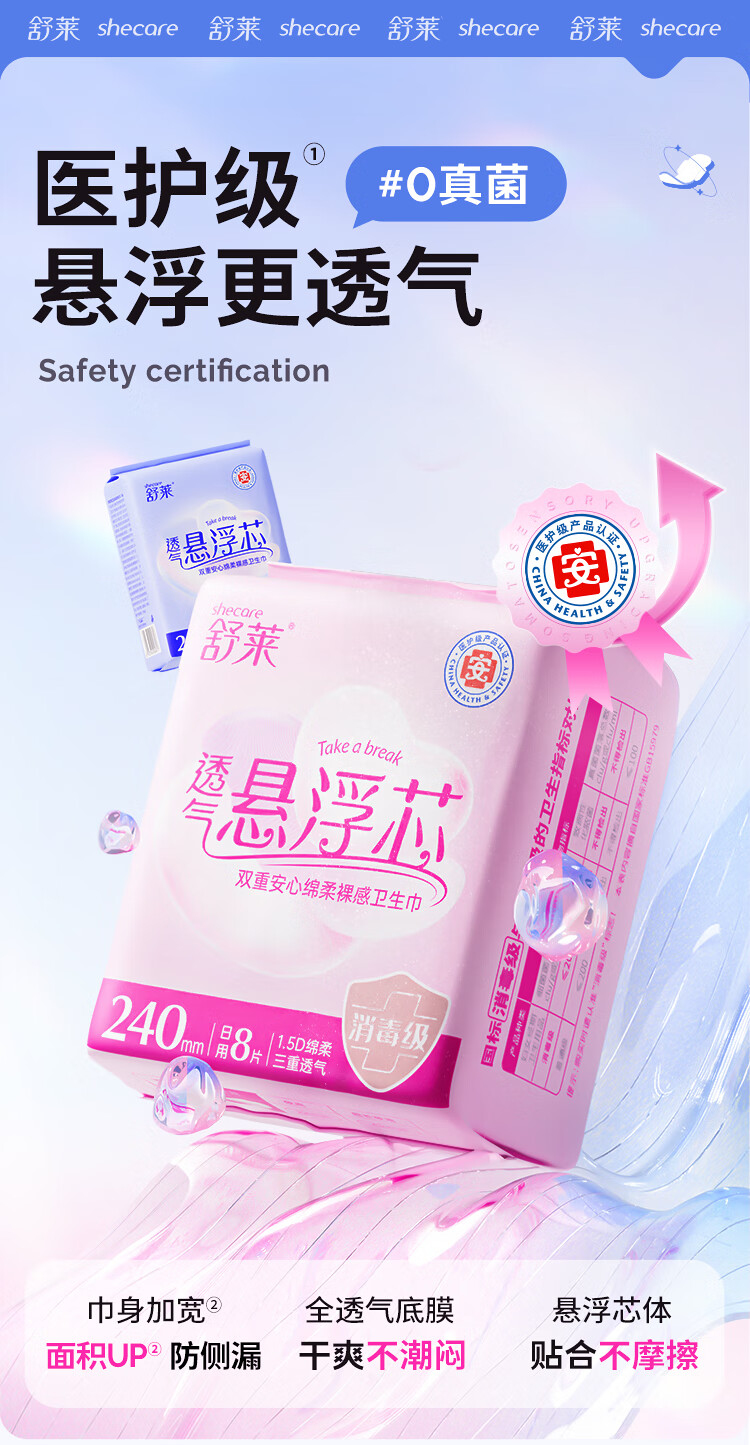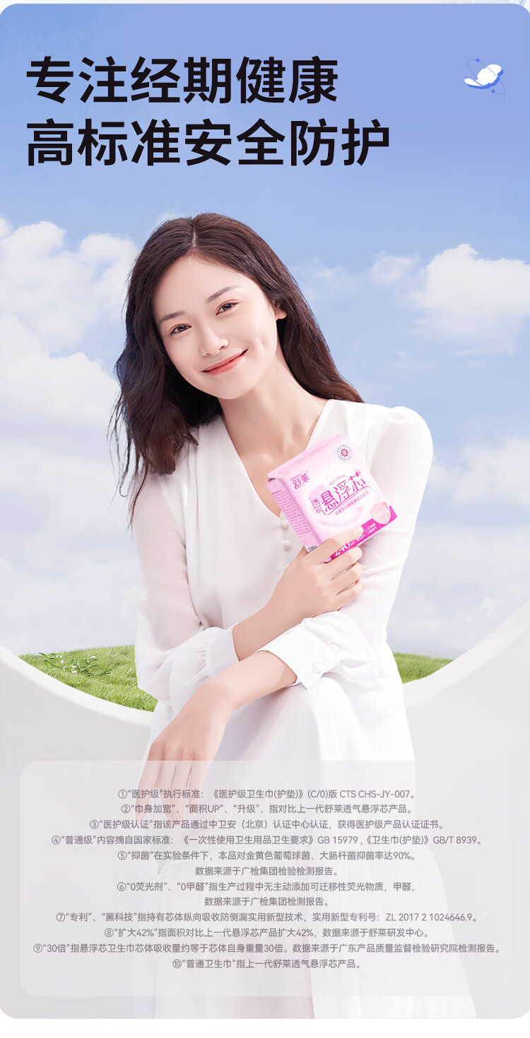 舒莱医护级透气悬浮芯卫生巾消毒级日用夜用套装【品牌直供安心品质】 日夜7包48片