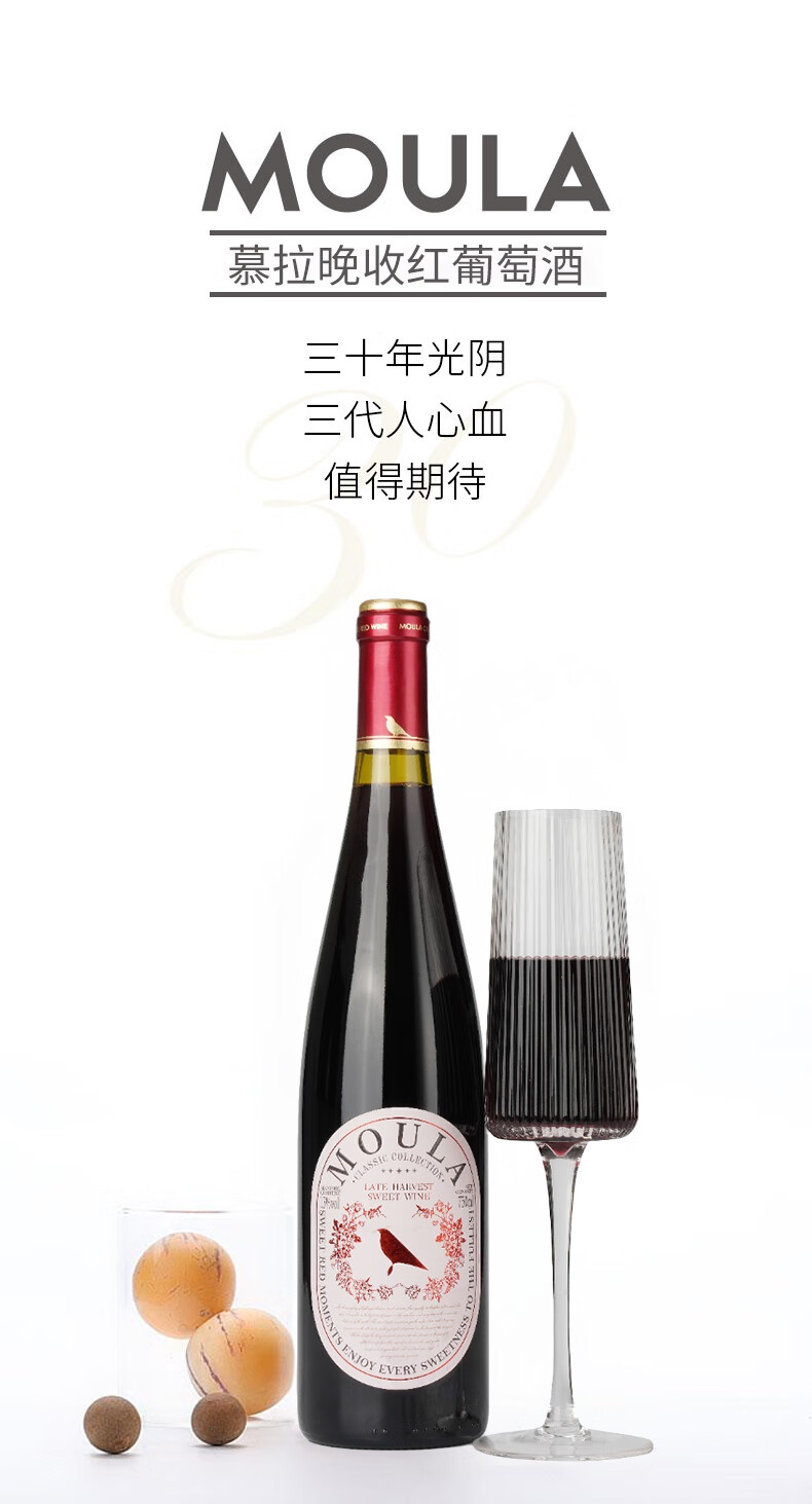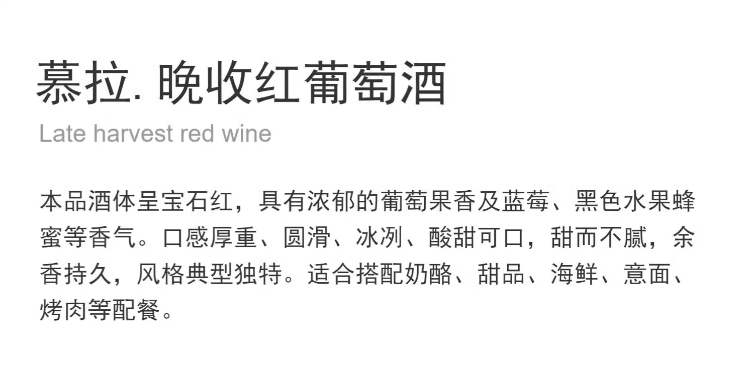 慕拉晚收甜红葡萄酒低度甜型红酒微醺女生尝鲜装国产甜型葡萄酒 750ml晚收甜红葡萄酒单支