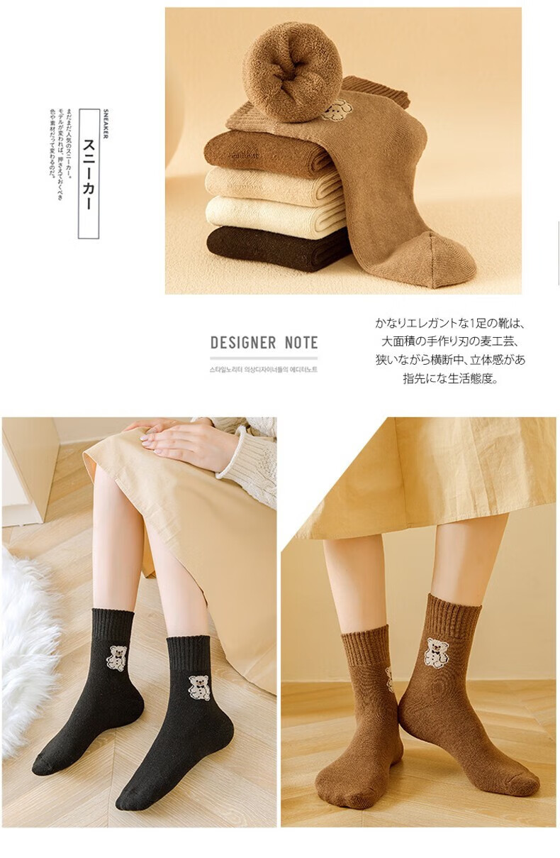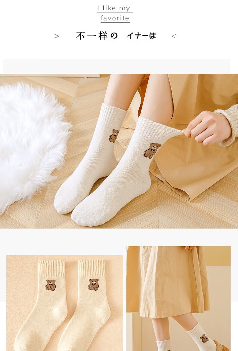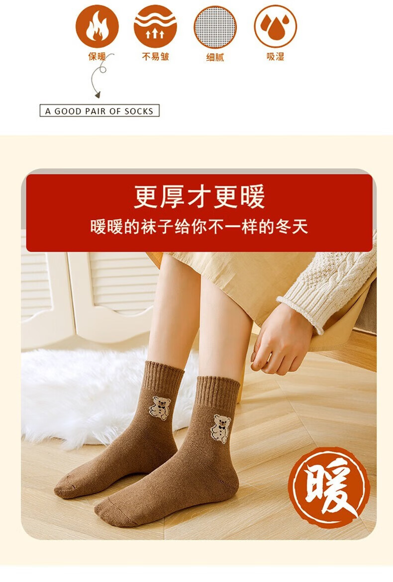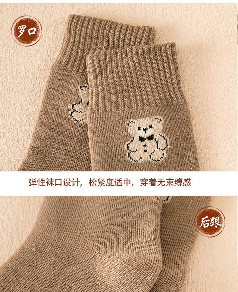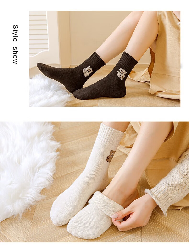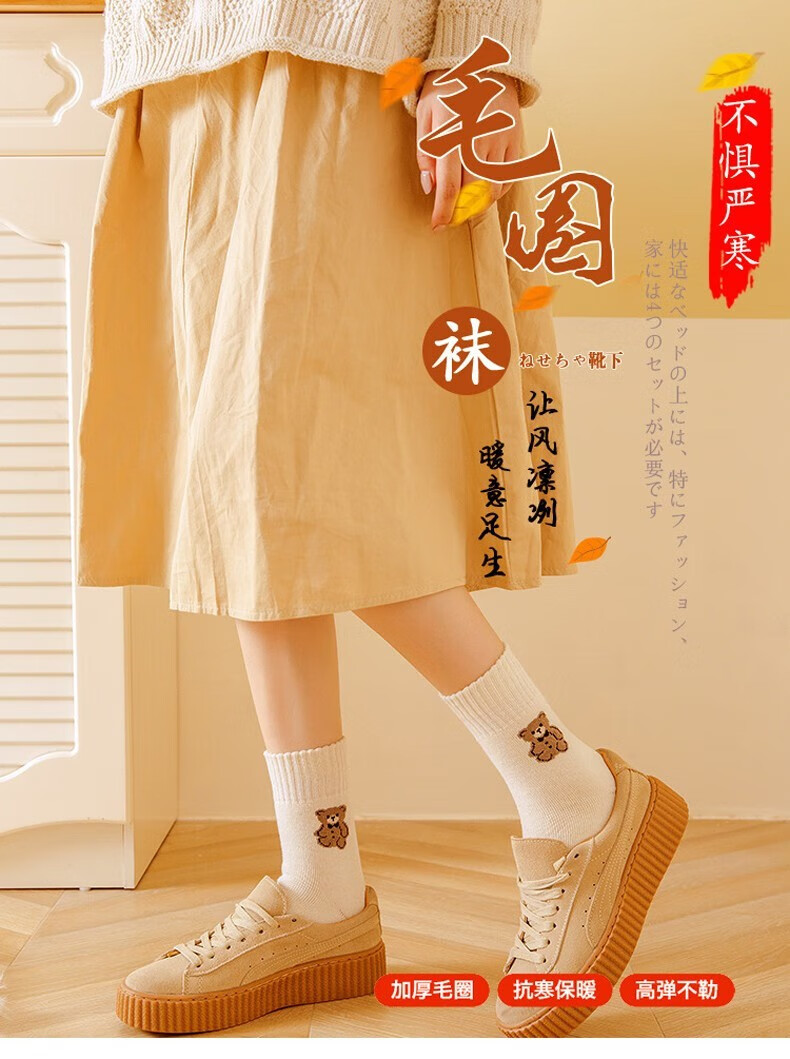 米大爷毛圈袜子女秋冬季加厚保暖中筒袜女士休闲百搭小熊款毛巾袜 小熊款毛圈袜(颜色混搭) 2双 均码