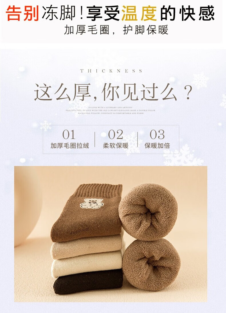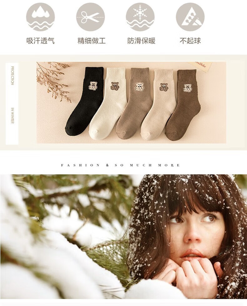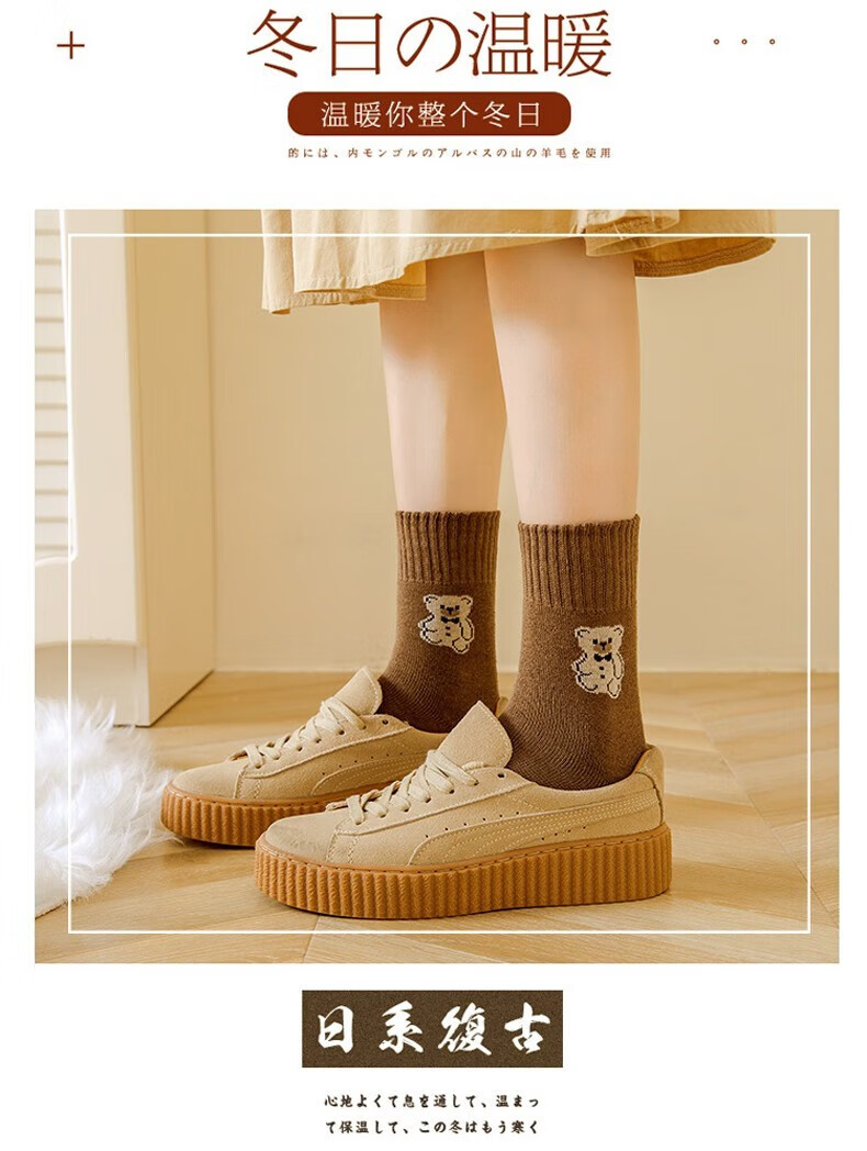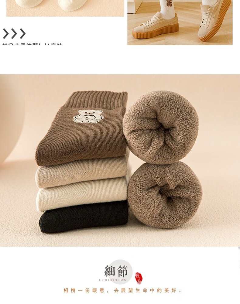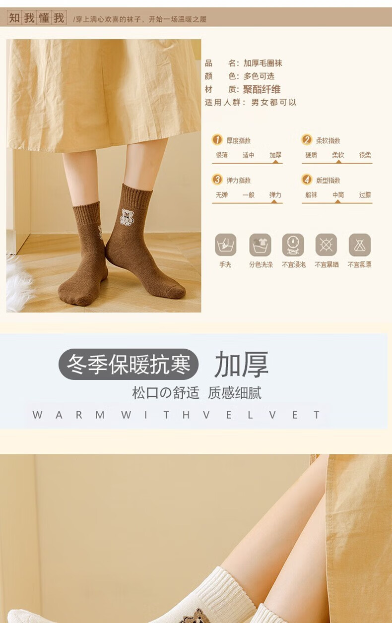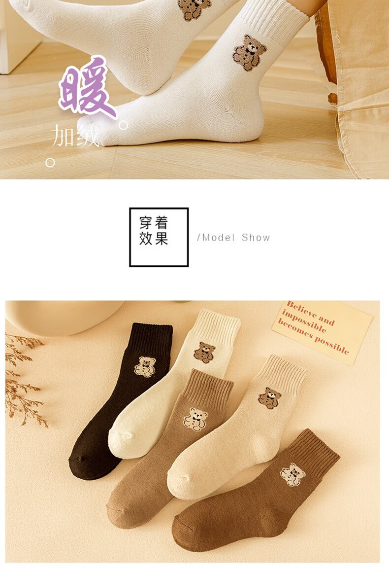 米大爷毛圈袜子女秋冬季加厚保暖中筒袜女士休闲百搭小熊款毛巾袜 小熊款毛圈袜(颜色混搭) 2双 均码