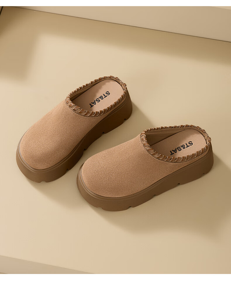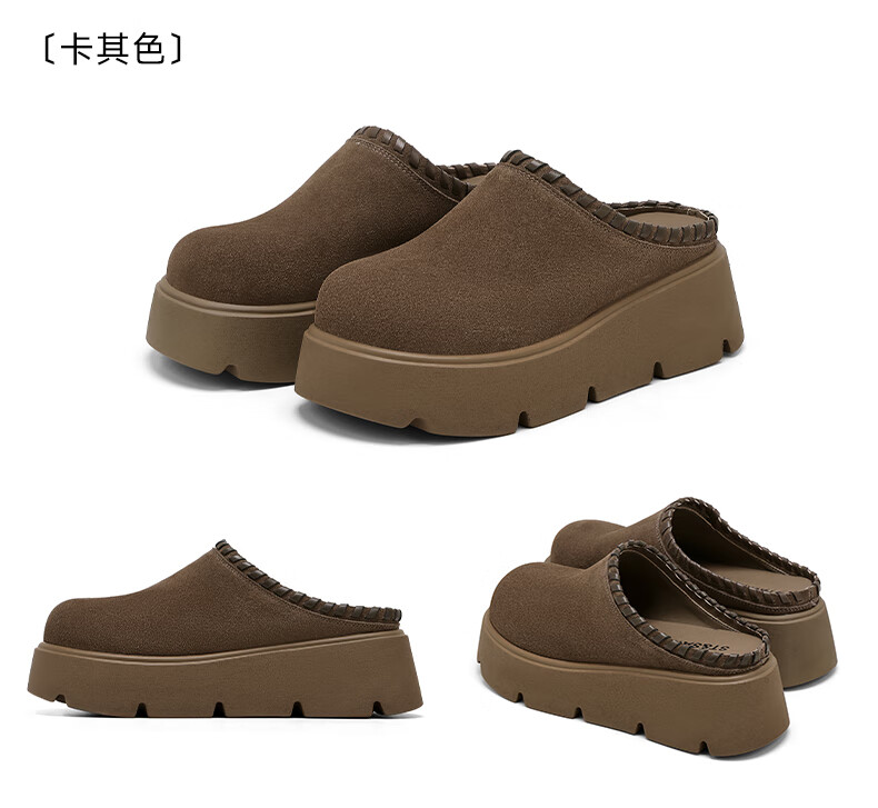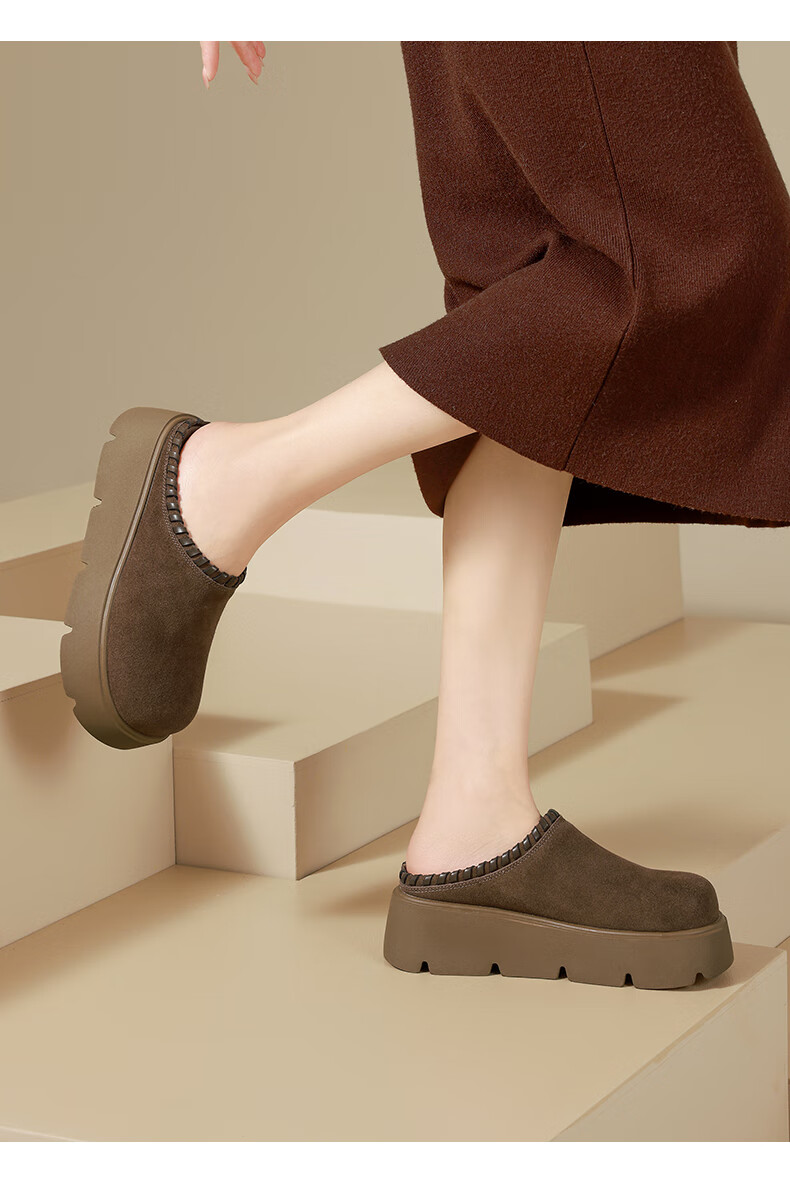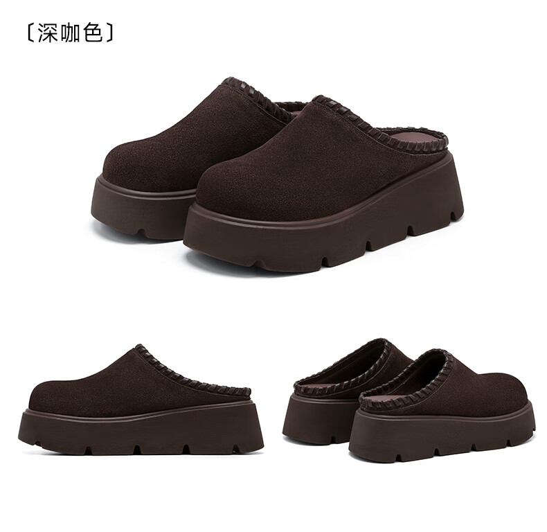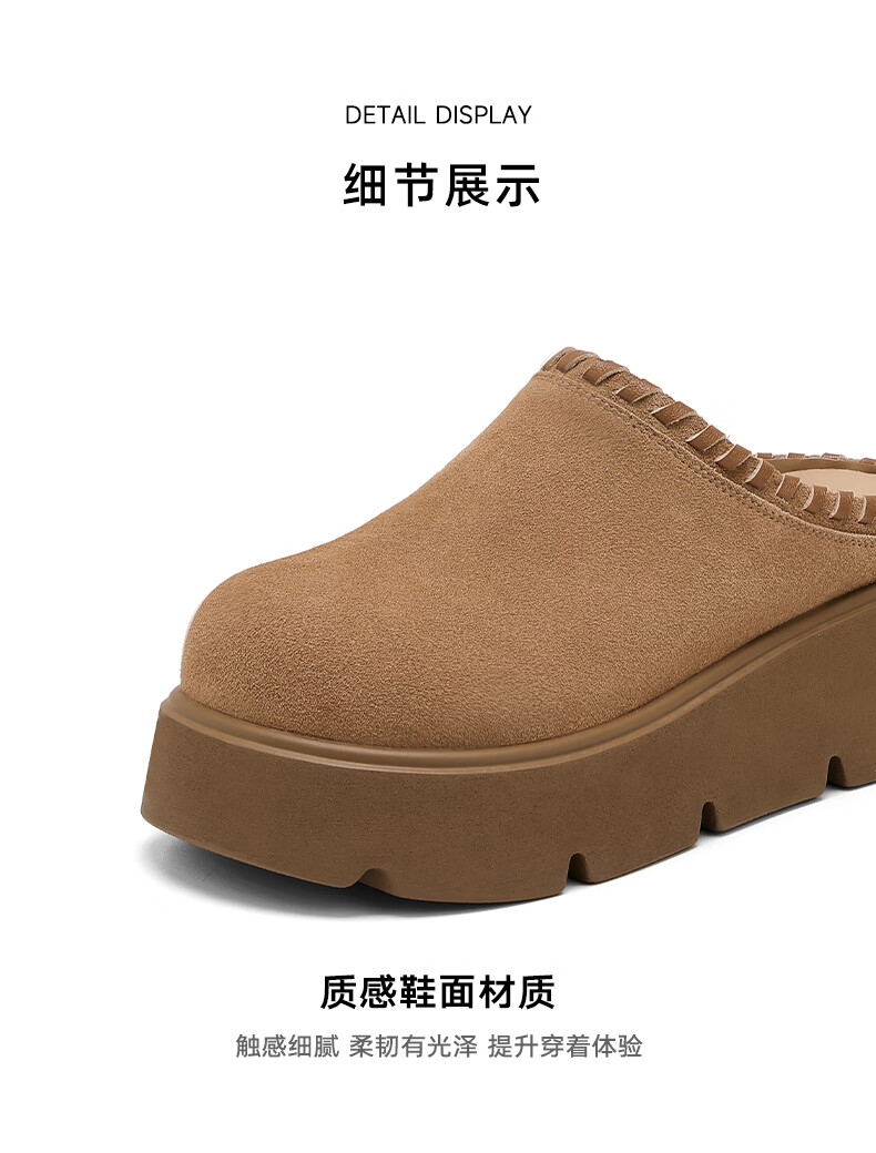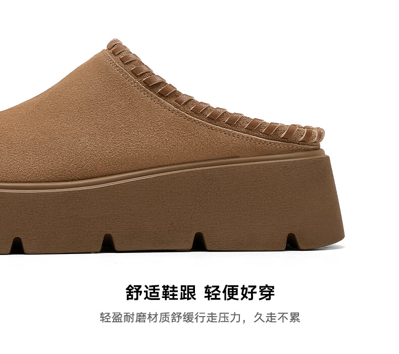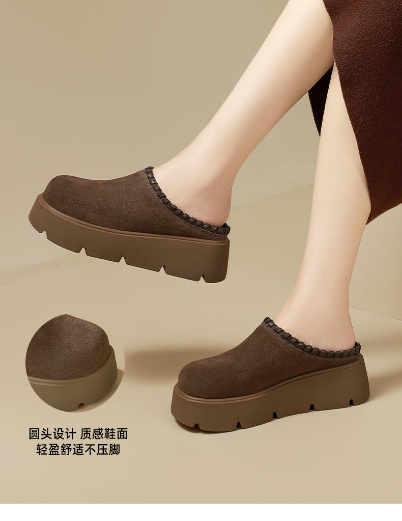 星期六真皮包头勃肯半拖鞋女2025新款冬季外穿懒人一脚蹬厚底增高穆勒鞋 驼色 【厚底增高】跟高6cm 35