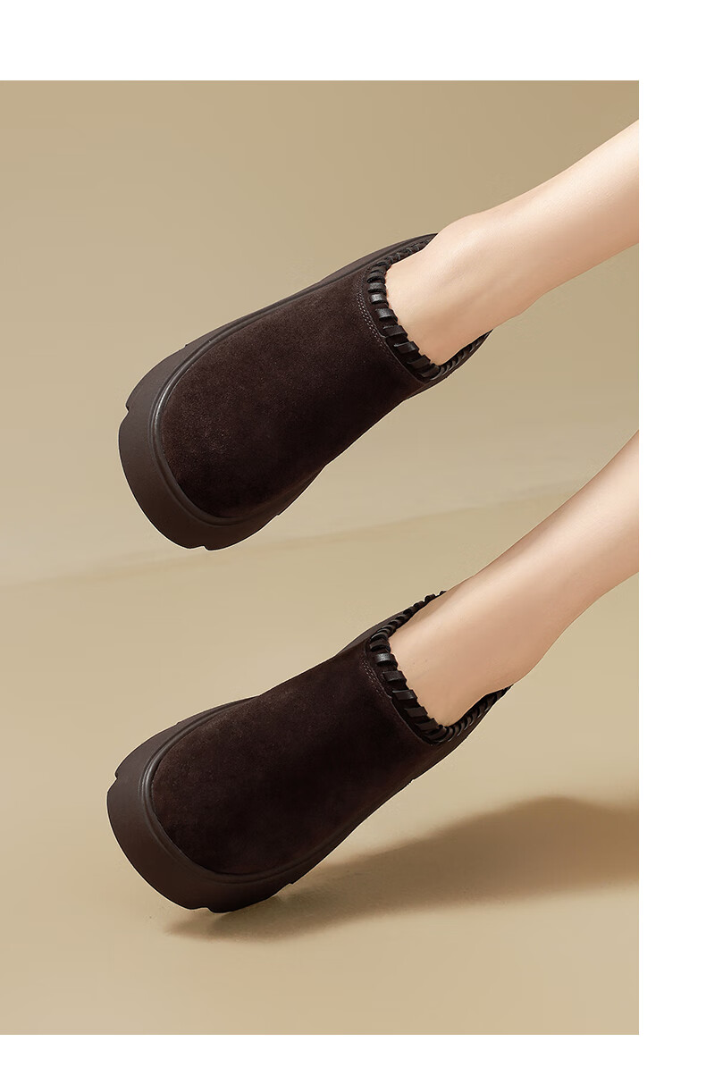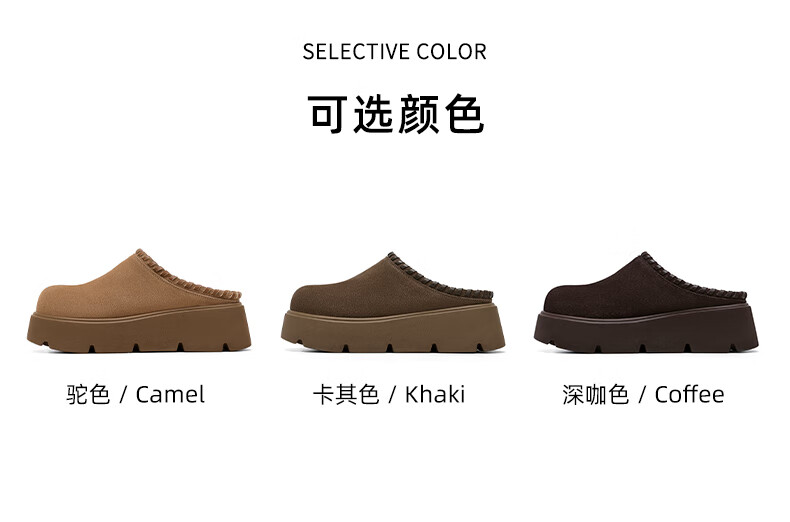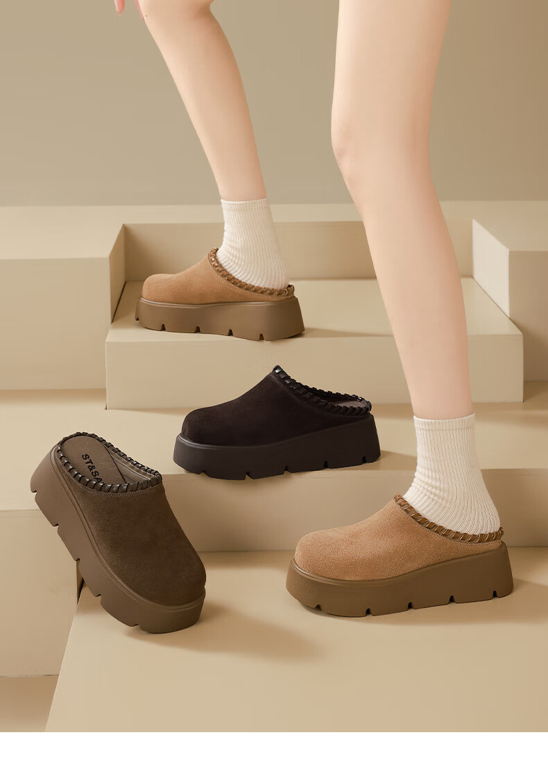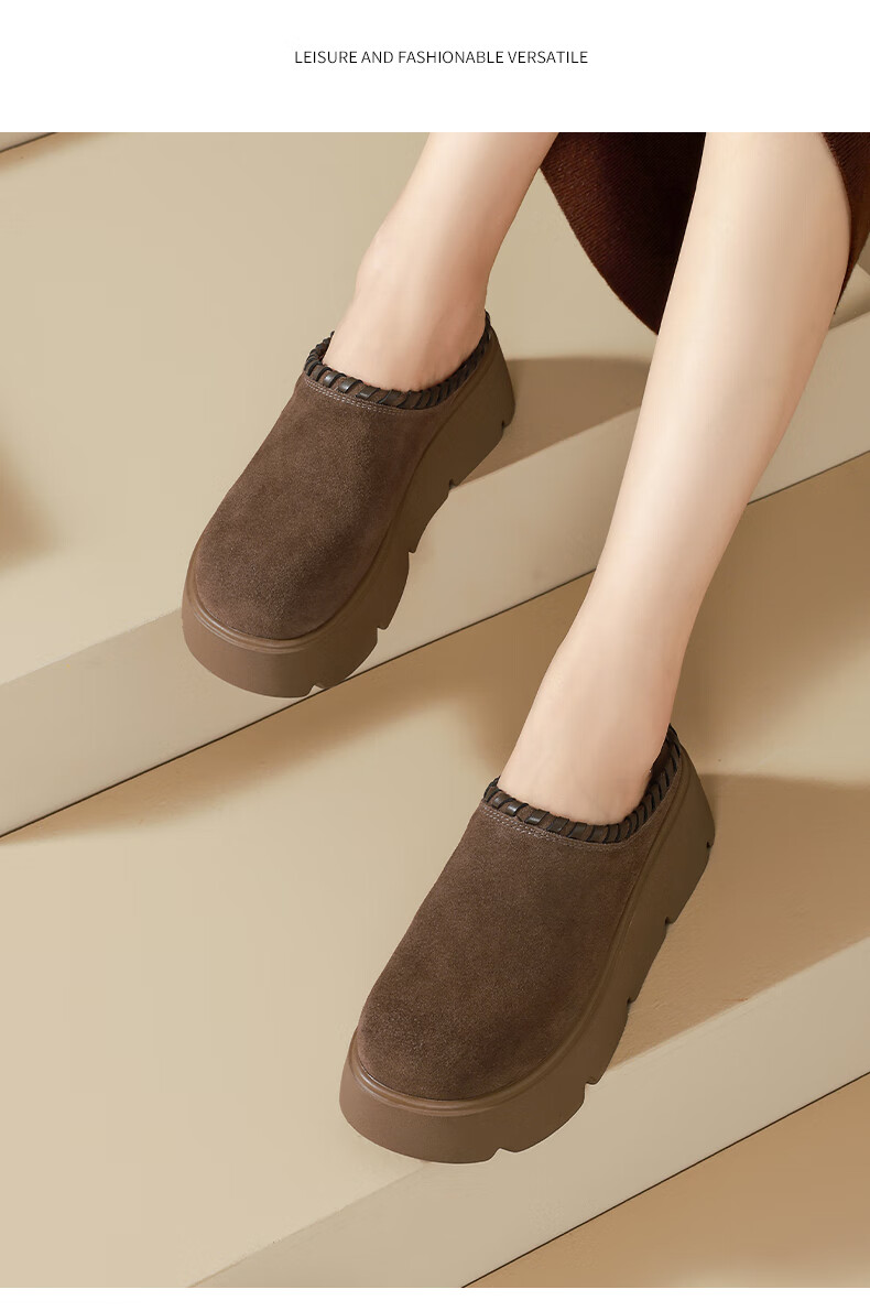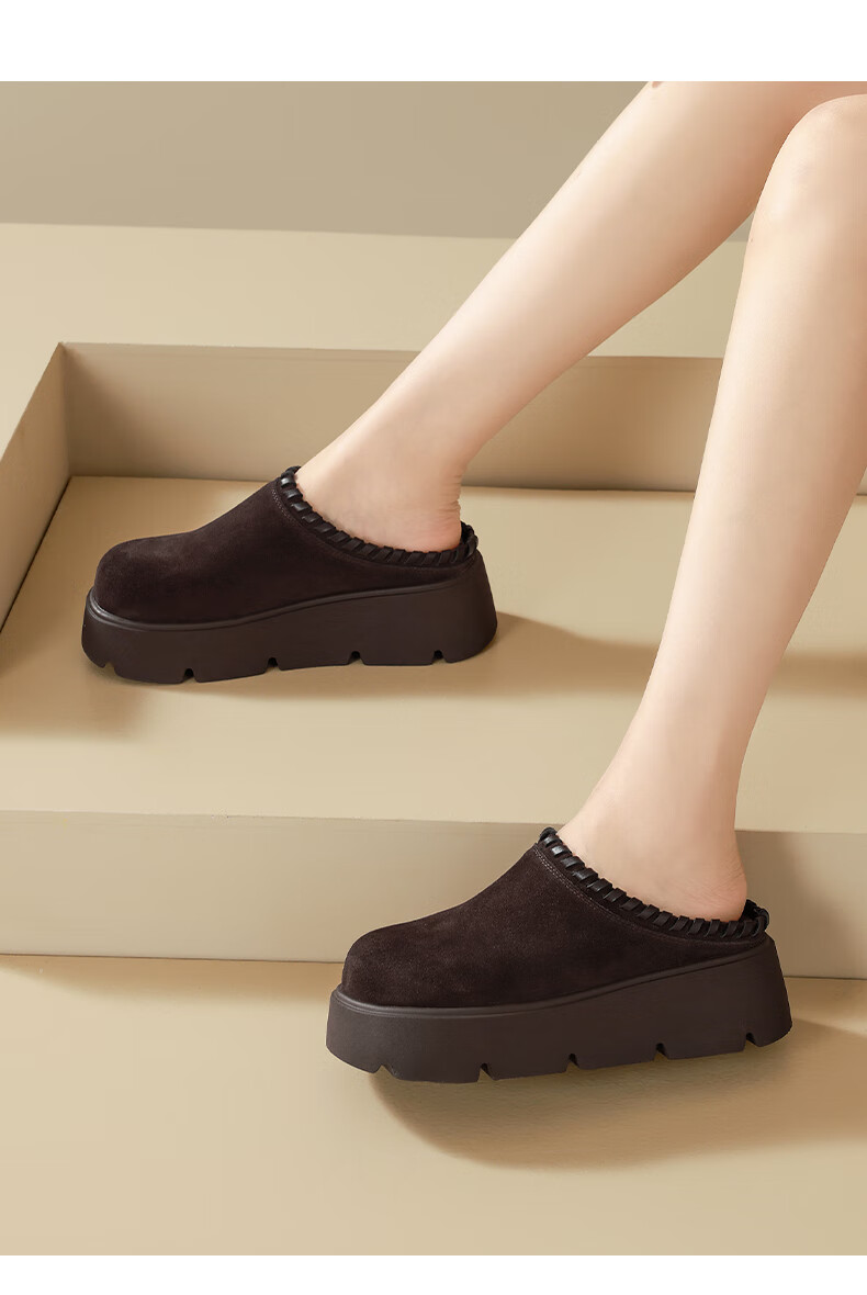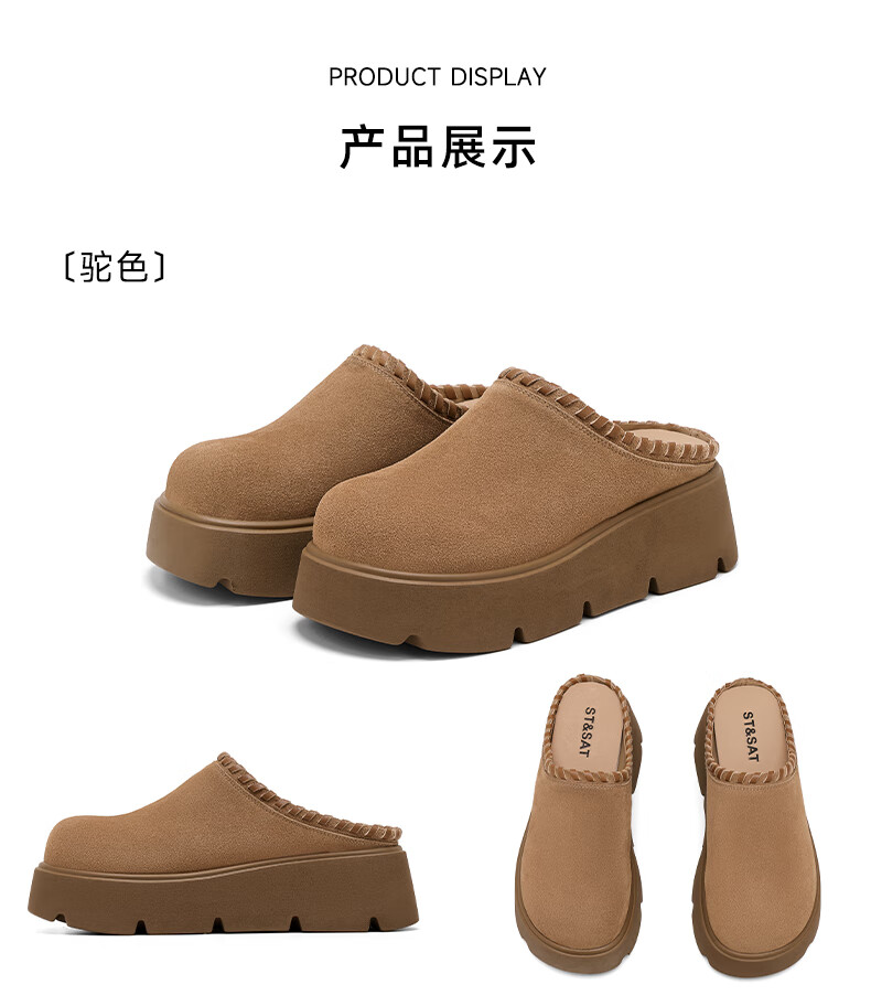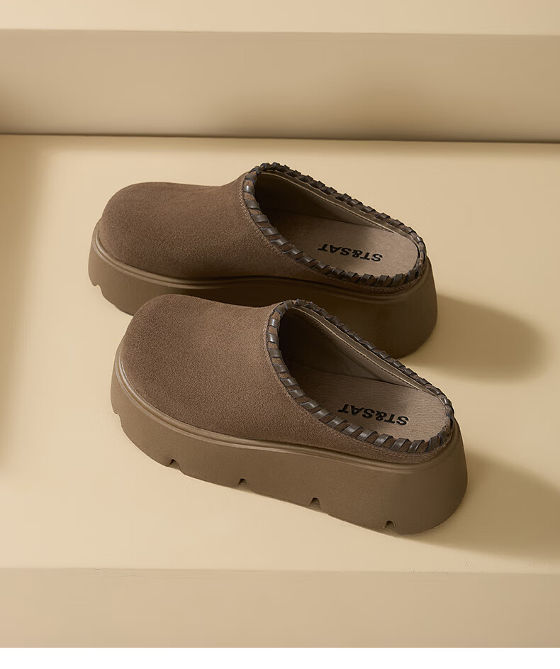 星期六真皮包头勃肯半拖鞋女2025新款冬季外穿懒人一脚蹬厚底增高穆勒鞋 驼色 【厚底增高】跟高6cm 35