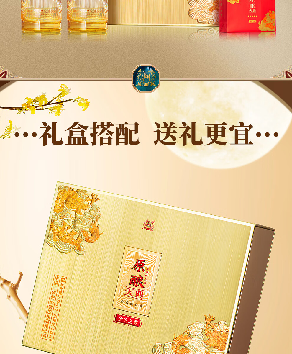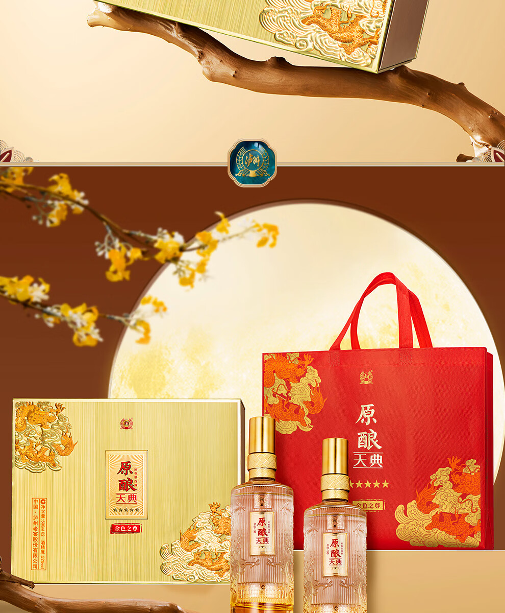 泸州老窖老窖股份出品 金色之尊 五星级品质 收藏礼盒 浓香型纯粮食酿造 52%vol 500mL 2瓶 礼盒装