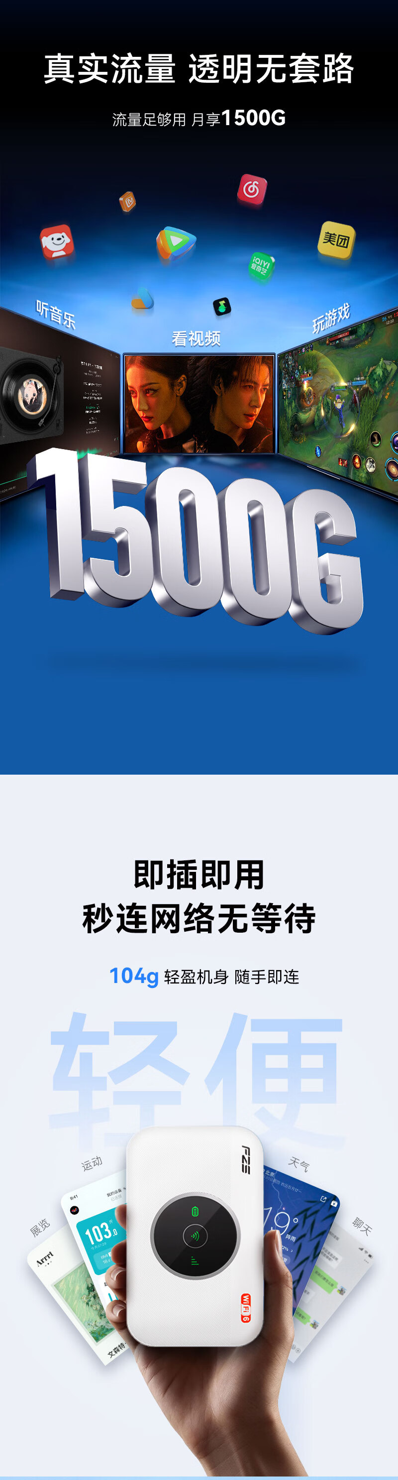蜂助手新款随身WiFi U2(4G版) 无线上网 WiFi6三网通免插卡4G路由器随身便携3000毫安大电池超长续航 【送1500G*7天流量】