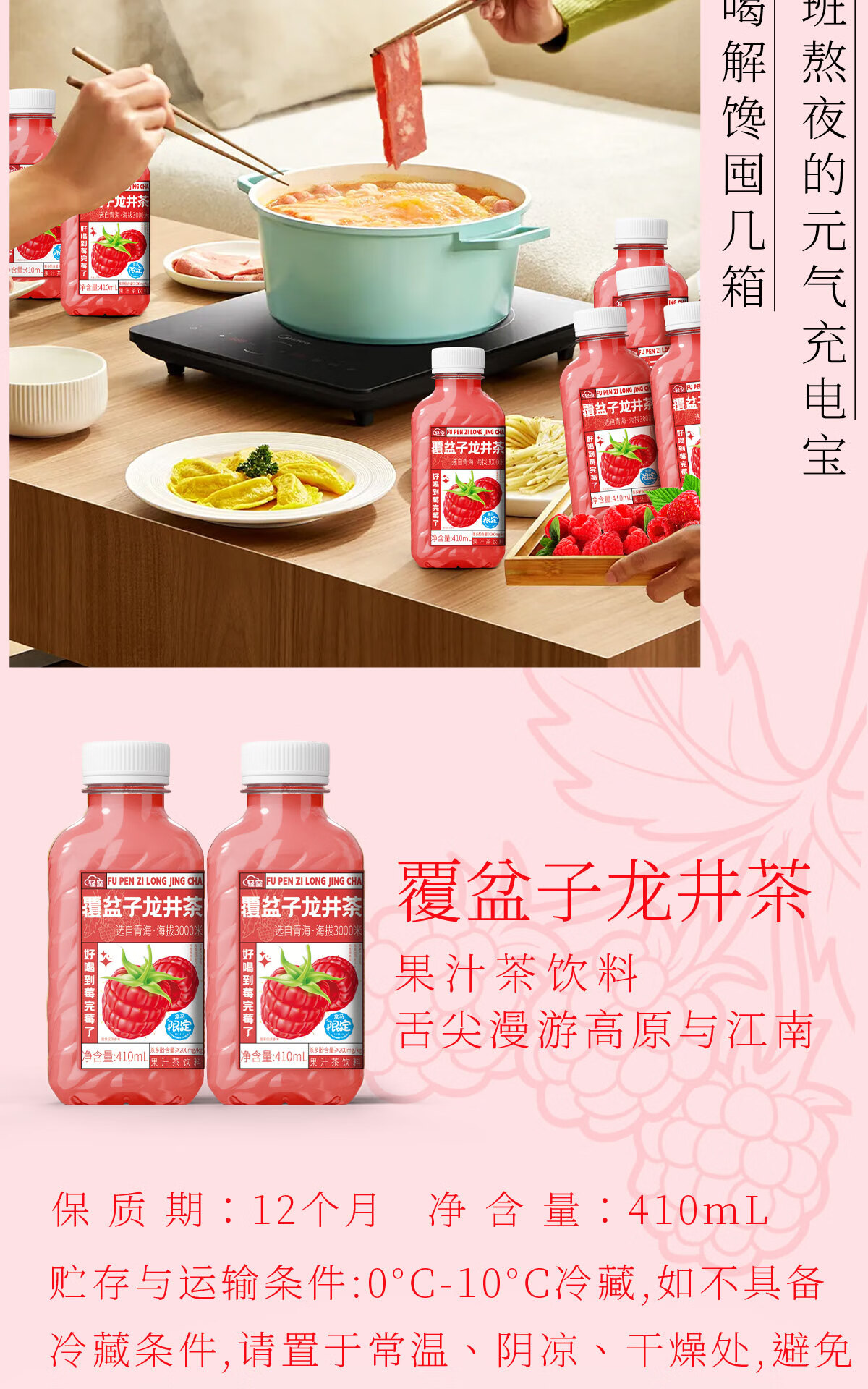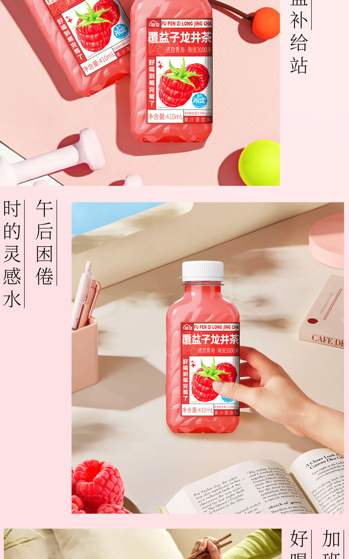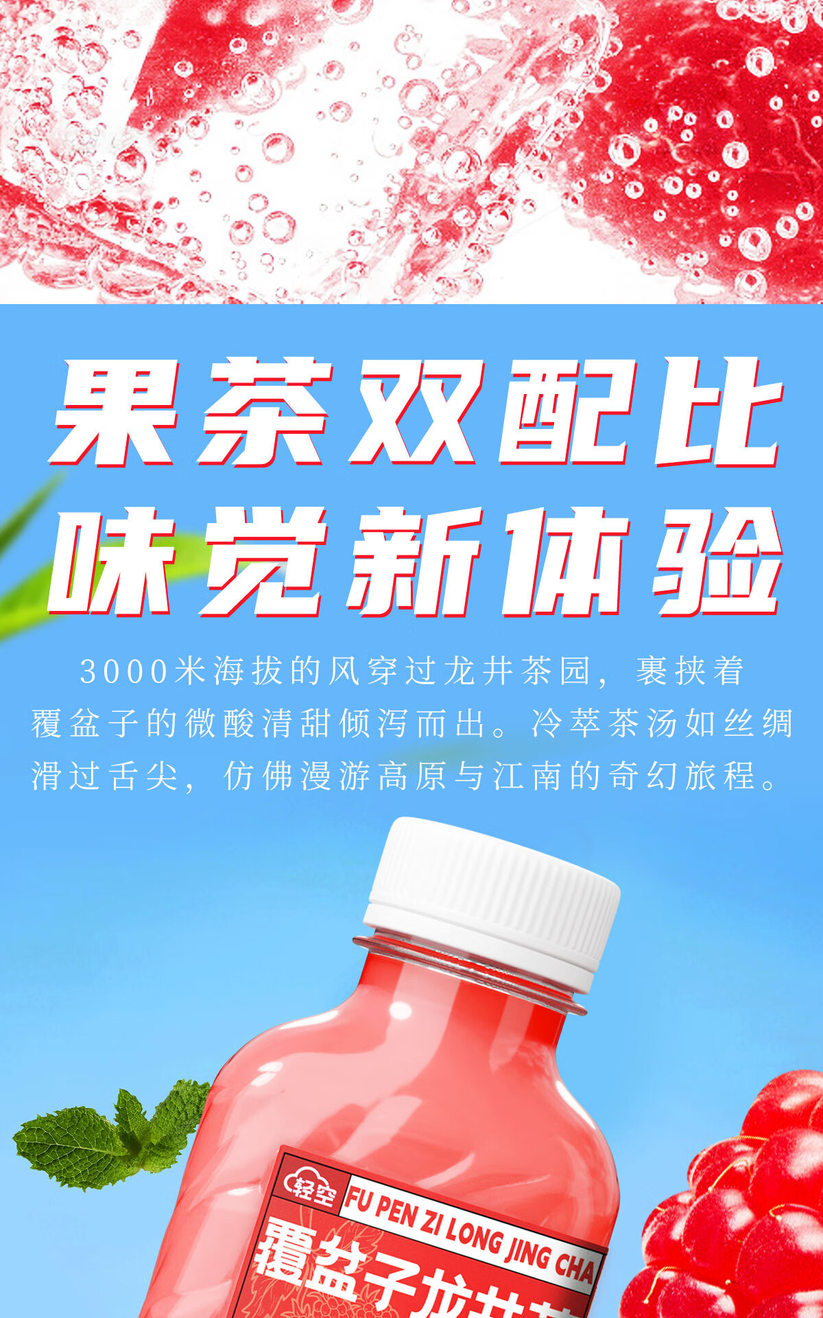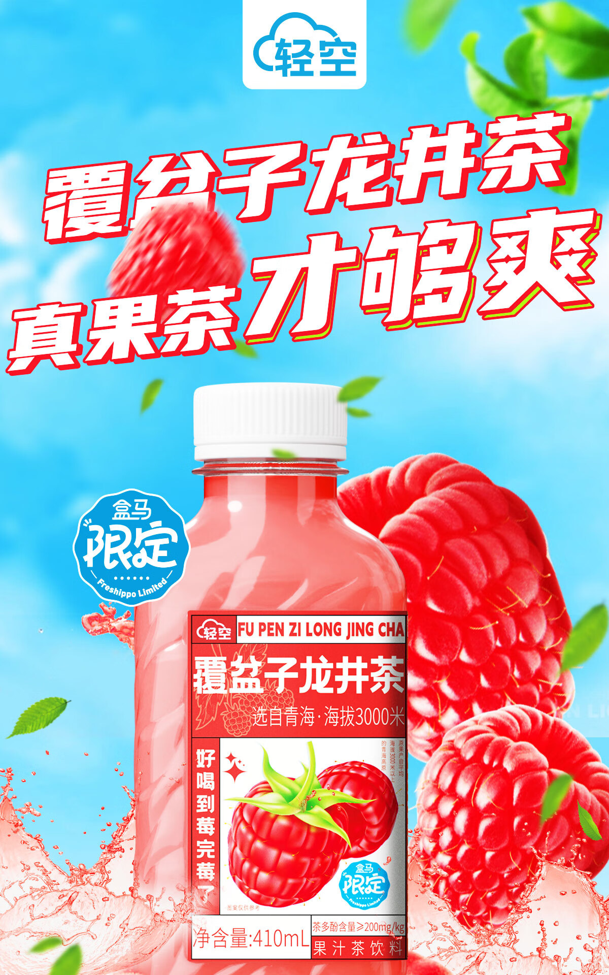 轻空麒麟西瓜 杨梅茉莉 猕猴梨毛尖覆盆子树莓龙井果汁茶饮料 盒马同款覆盆子龙井4瓶